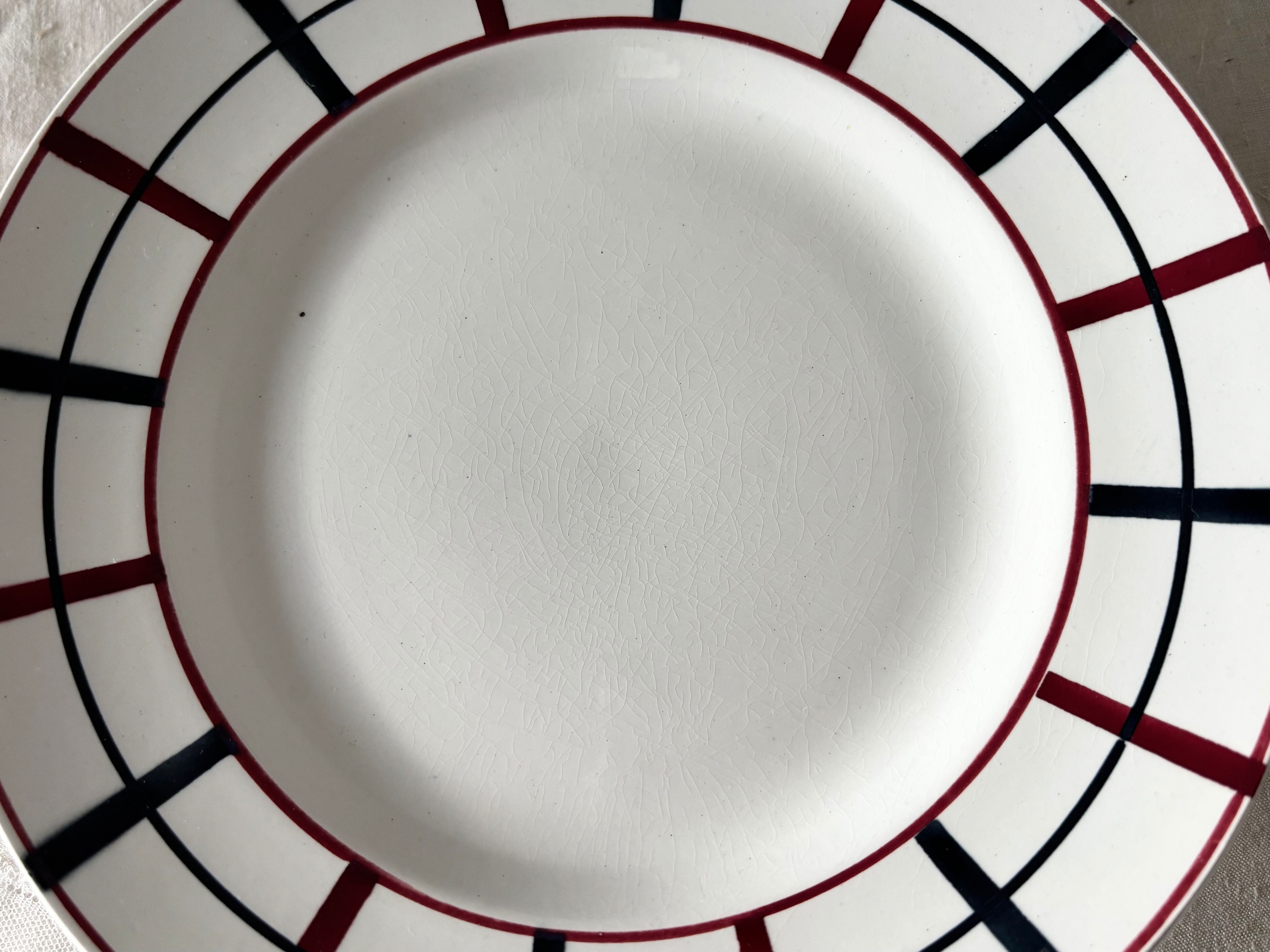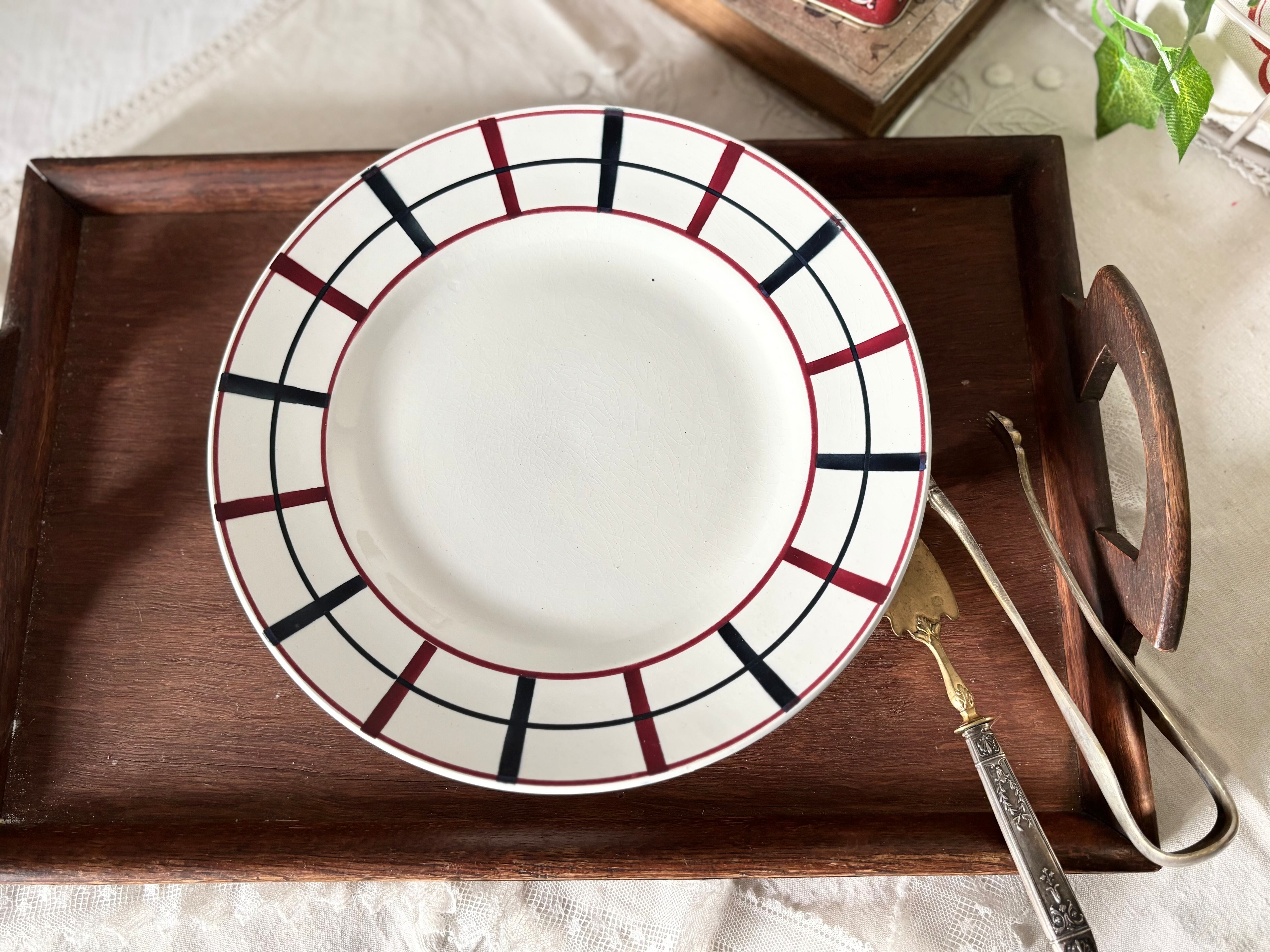 この「Lou Basquez」は、他メーカーのバスク柄と比べても、よりシンプルかつシャープな構成が特徴です。1930年代のアール・デコ期のエッセンスも感じられ、当時の手仕事の温もりと味わいを存分に感じていただけます。