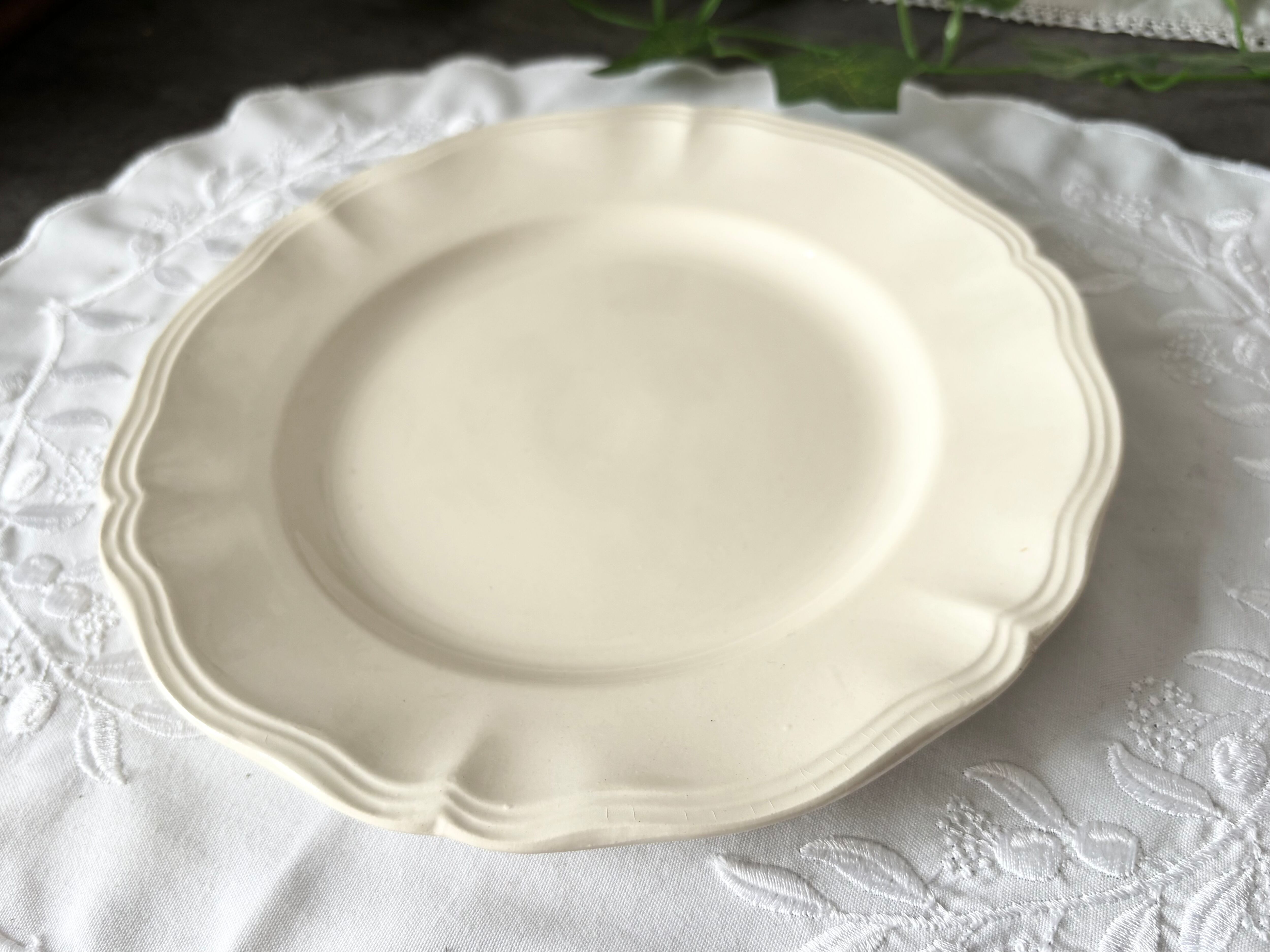 Sarreguemines (サルグミンヌ)より、22.5cmのアイボリーの花リムプレートをご紹介いたします。