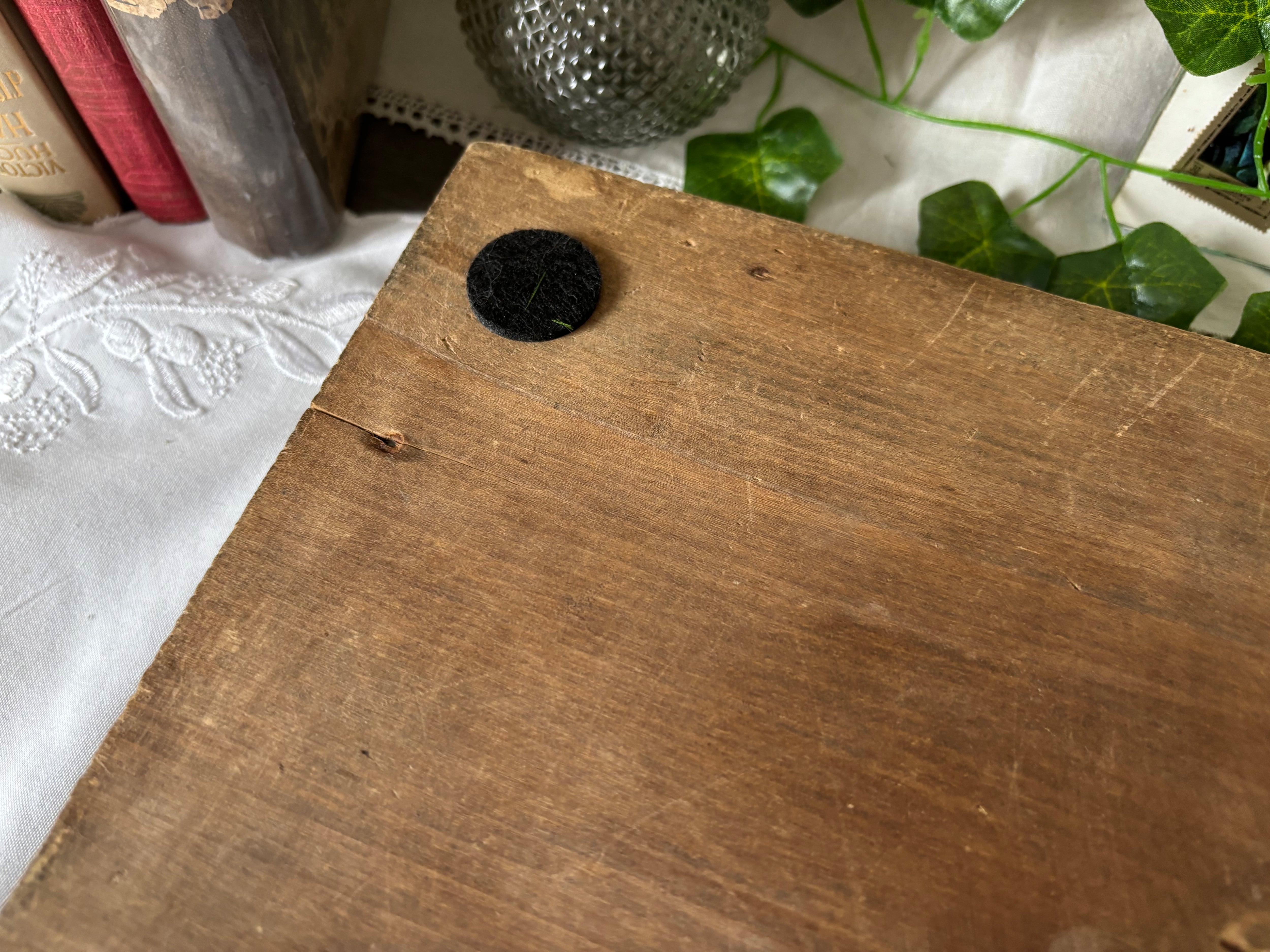木製のフレームには手彫りで細かく、美しい薔薇の彫刻が施されていて、裏は丸い滑り止めが4つついています。