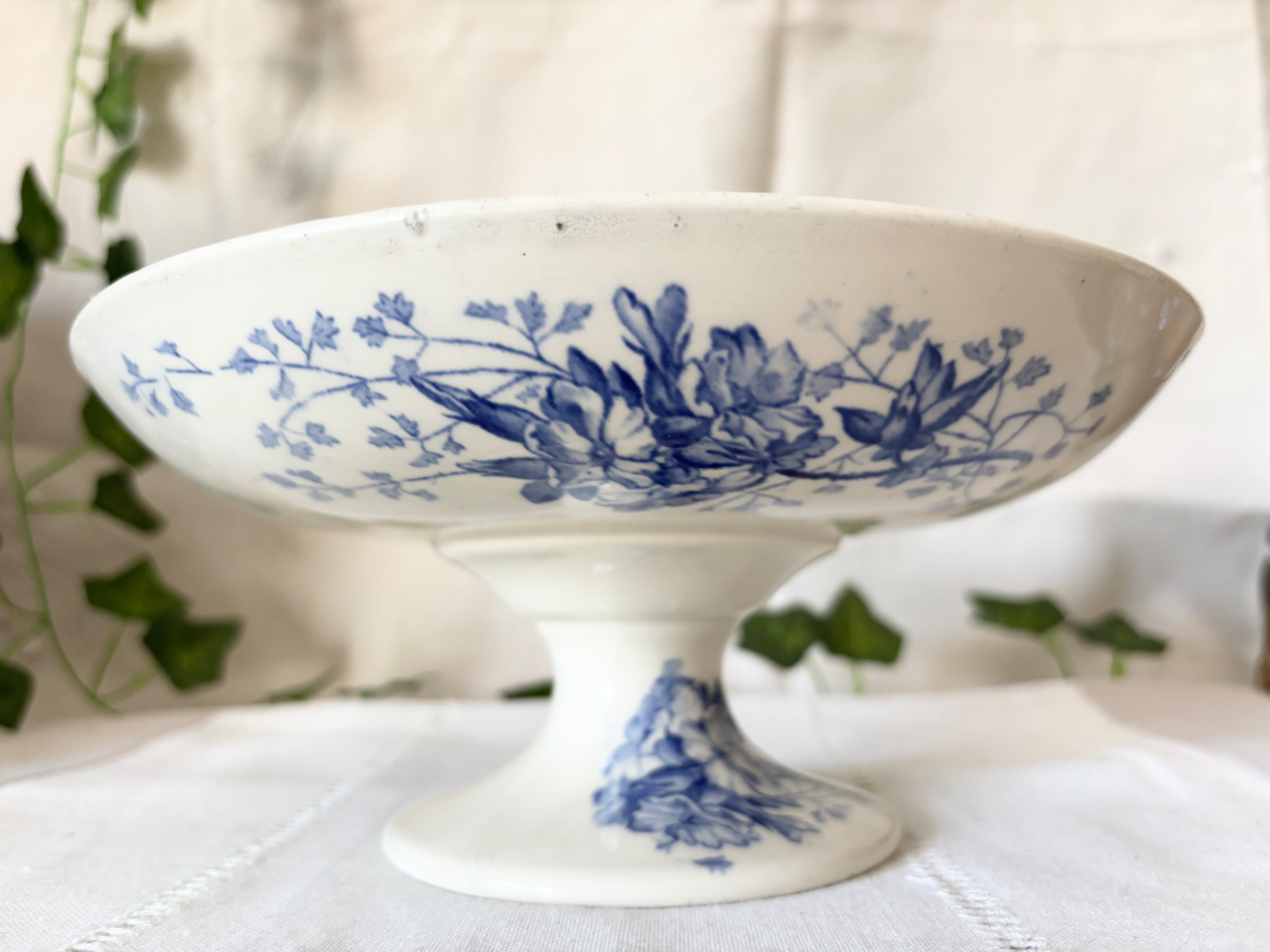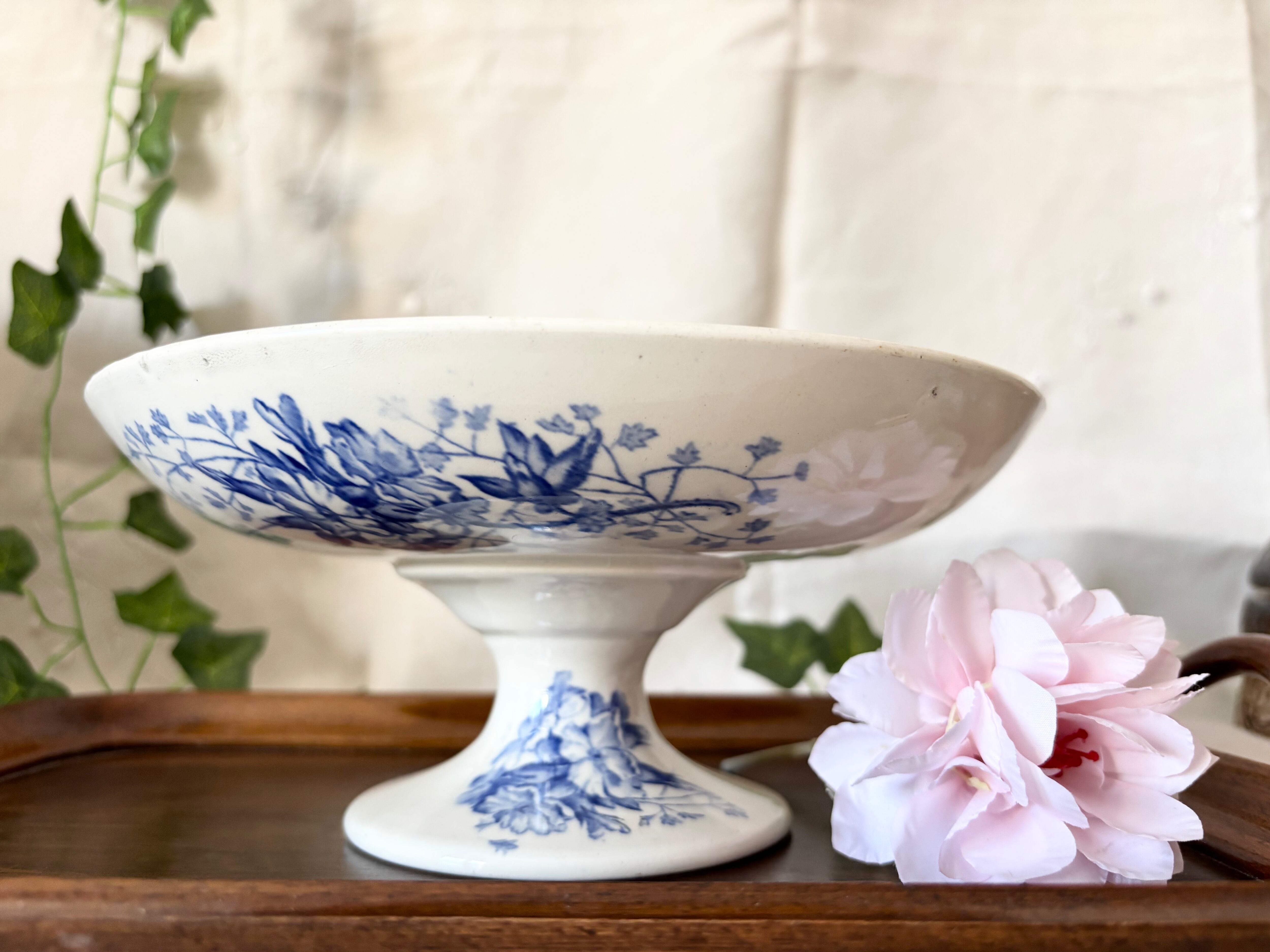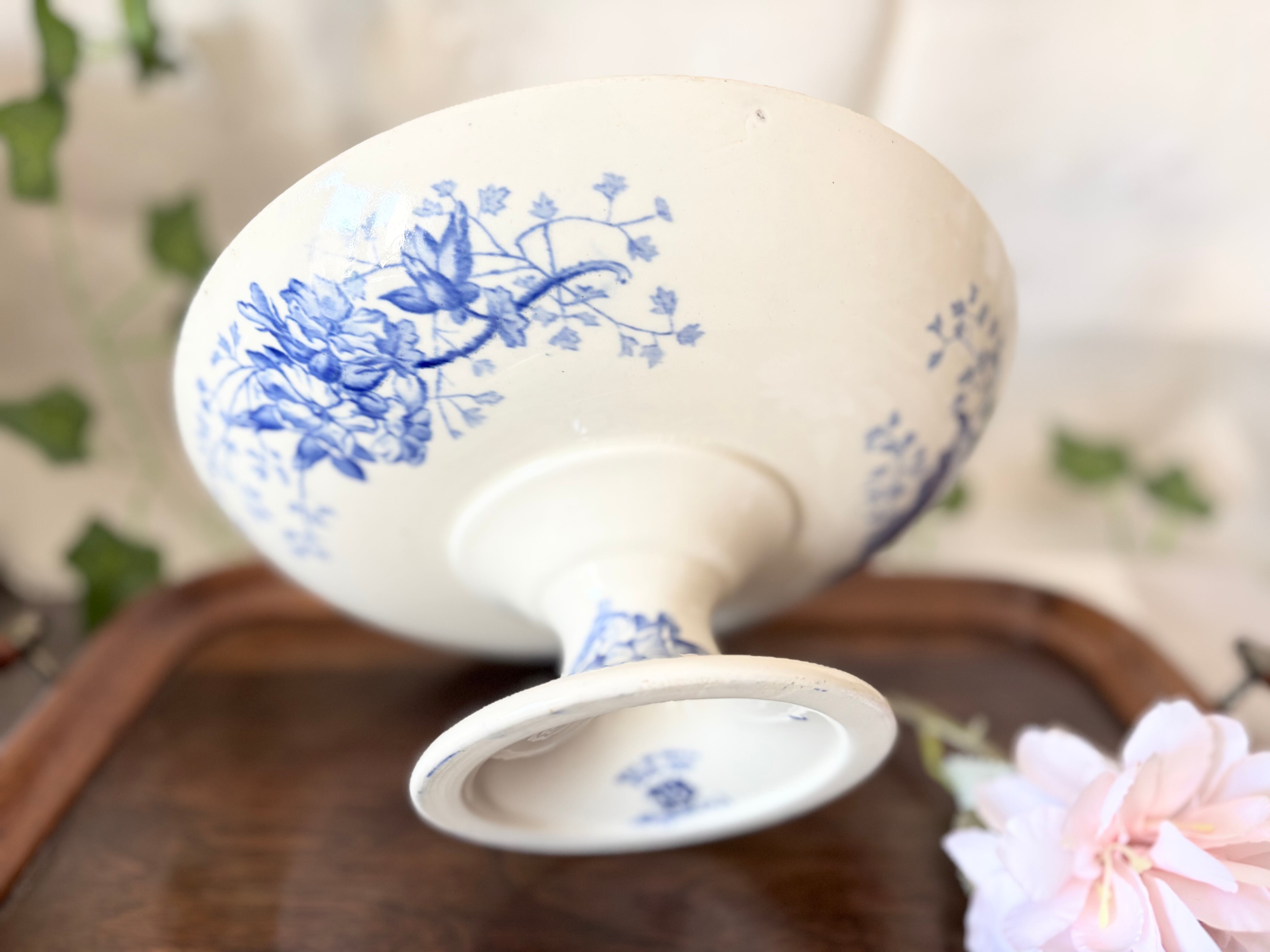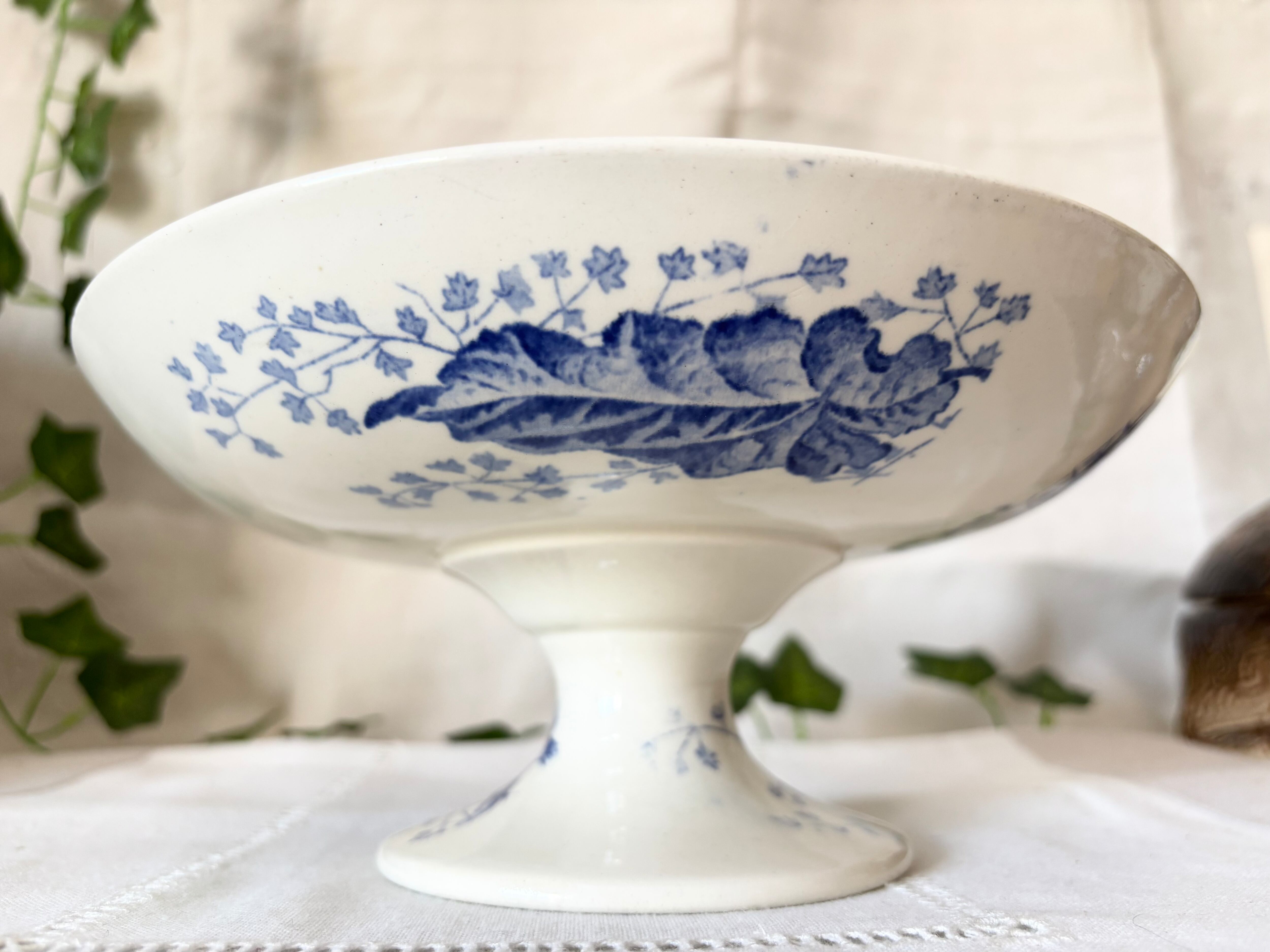 Creil et Montereau / Primevère / compotier / Terre de fer / Fruits stand / France / Antique / blue / Vintage / クレイユモントロー / テールドフェール フランス