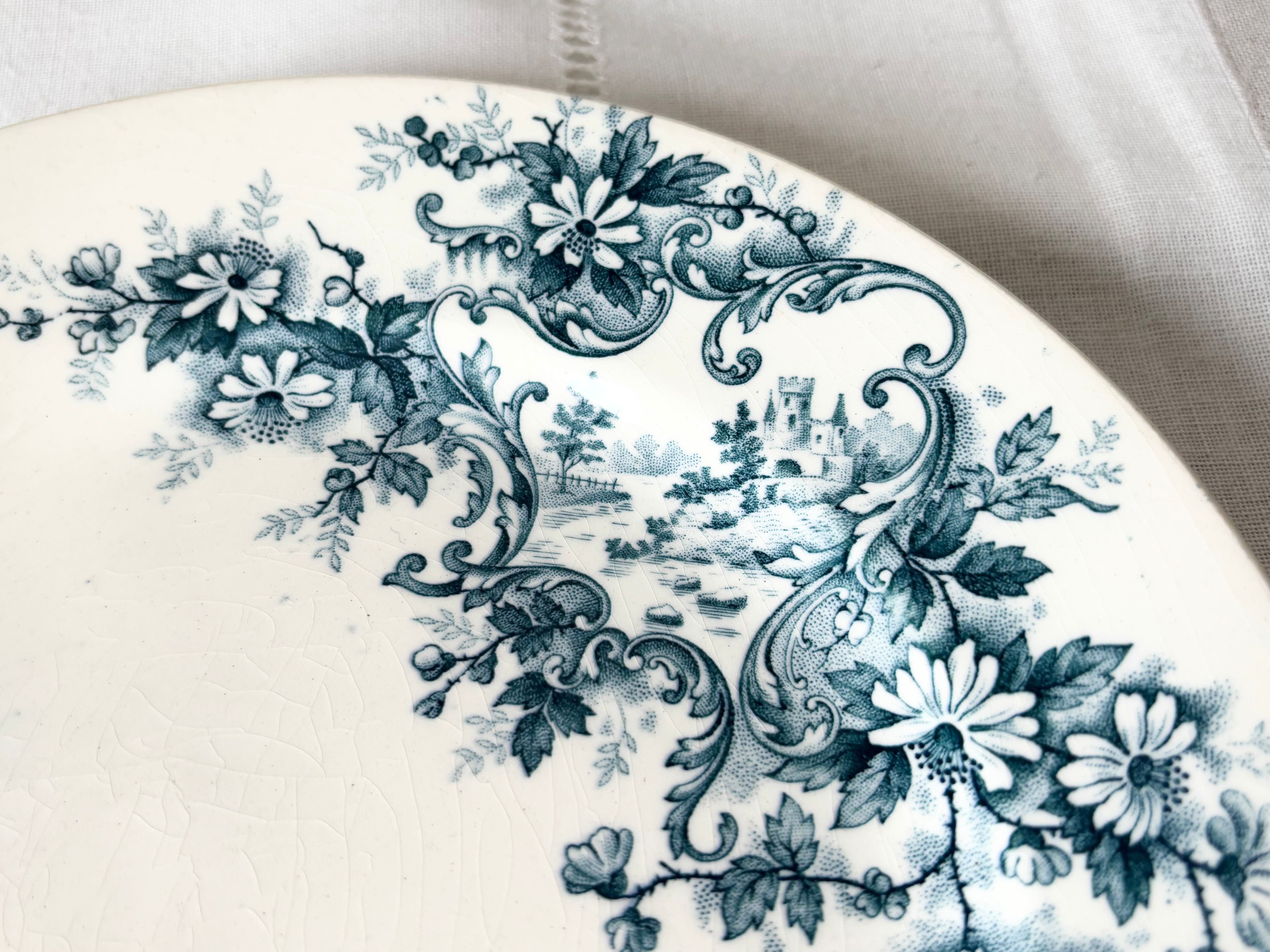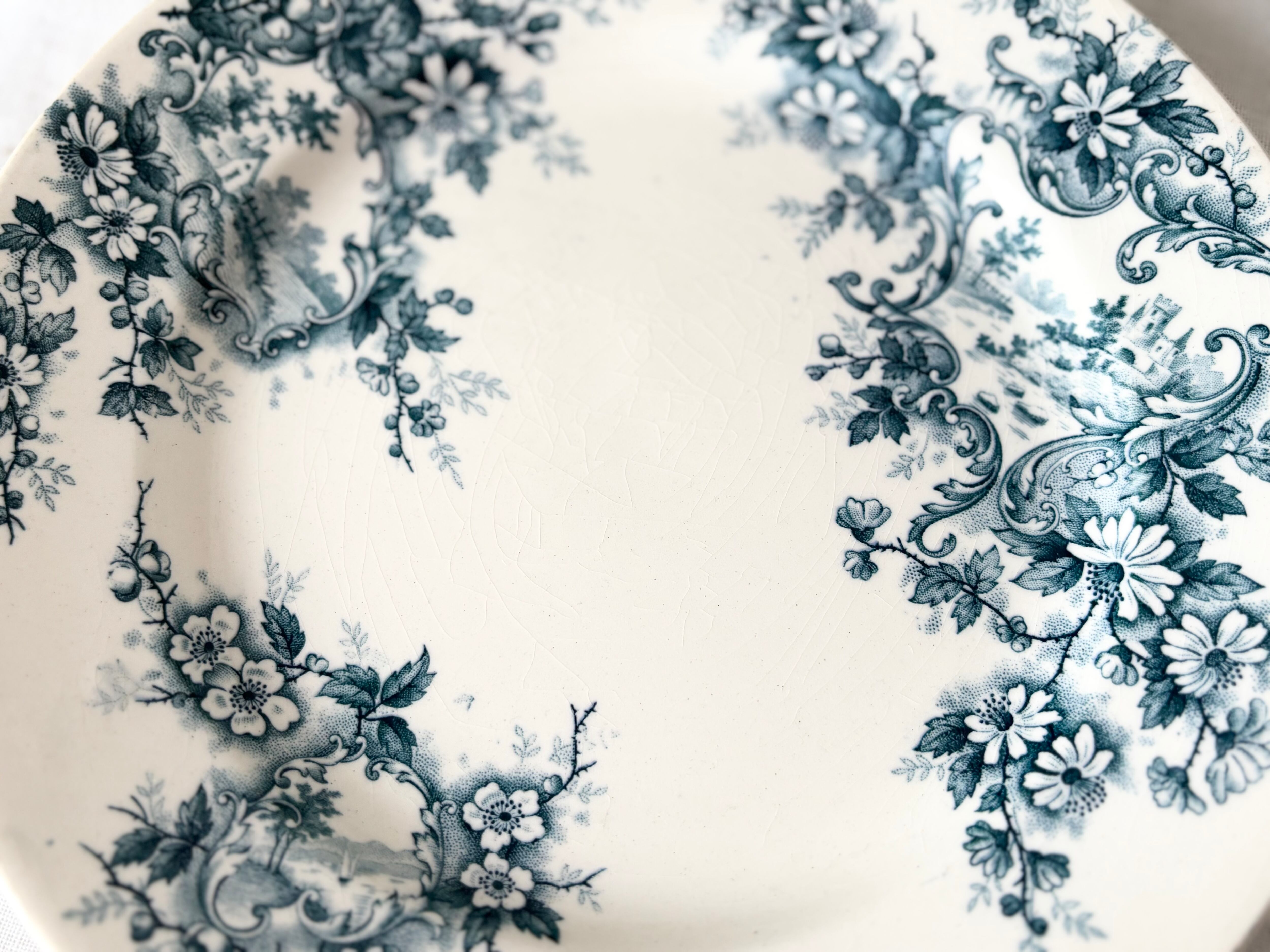 I様お取り置き / D(お城): H Boulenger &Cie , Choisy- le-roi / Terre de fer / Pompadour / 平皿 / France / Antique / vintage / ショワジールロワ / 青 / フランス/ アンティーク