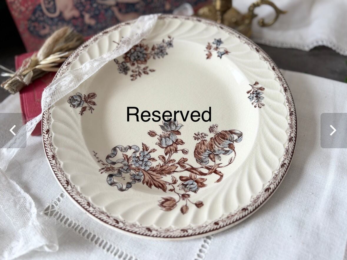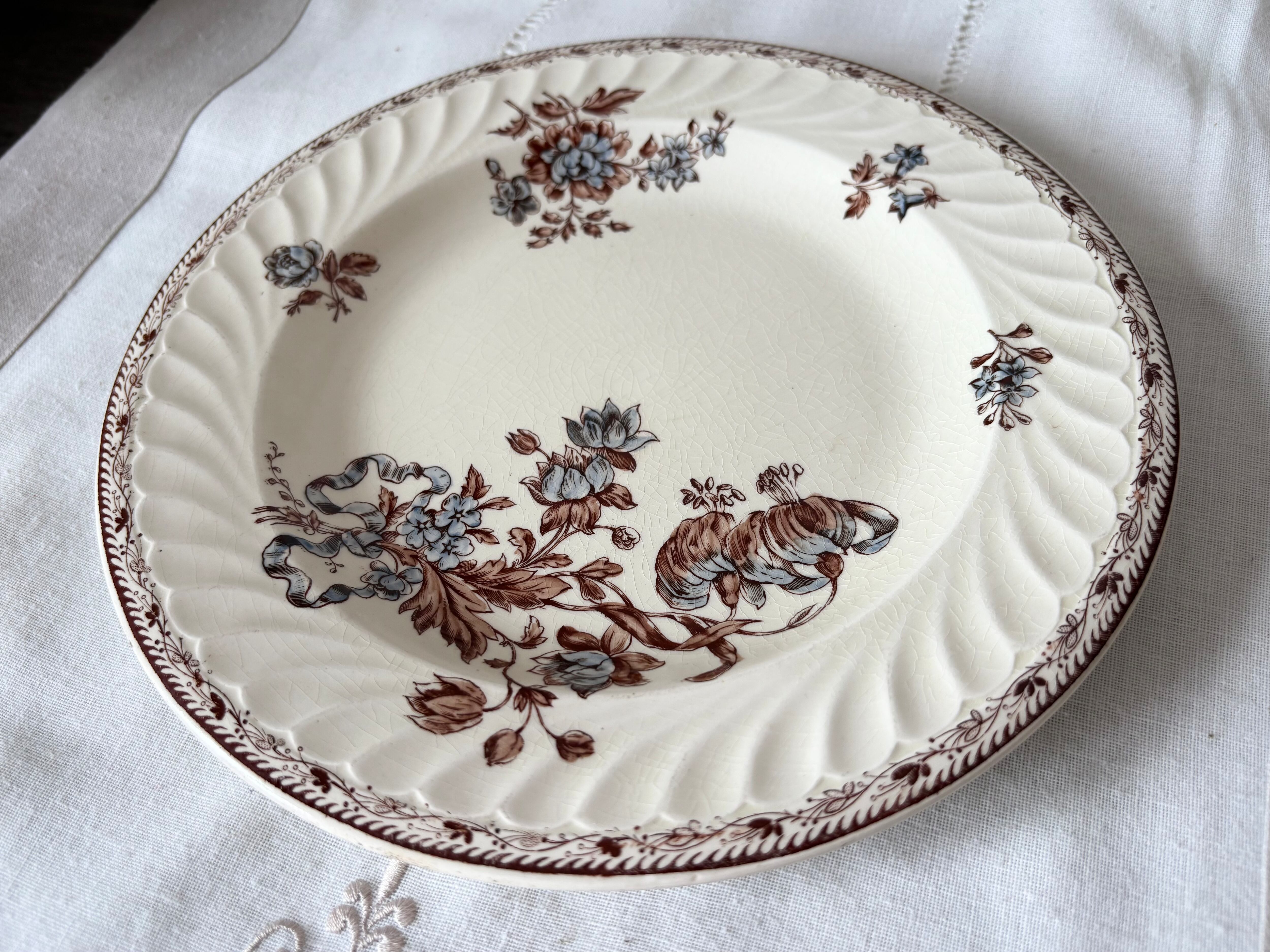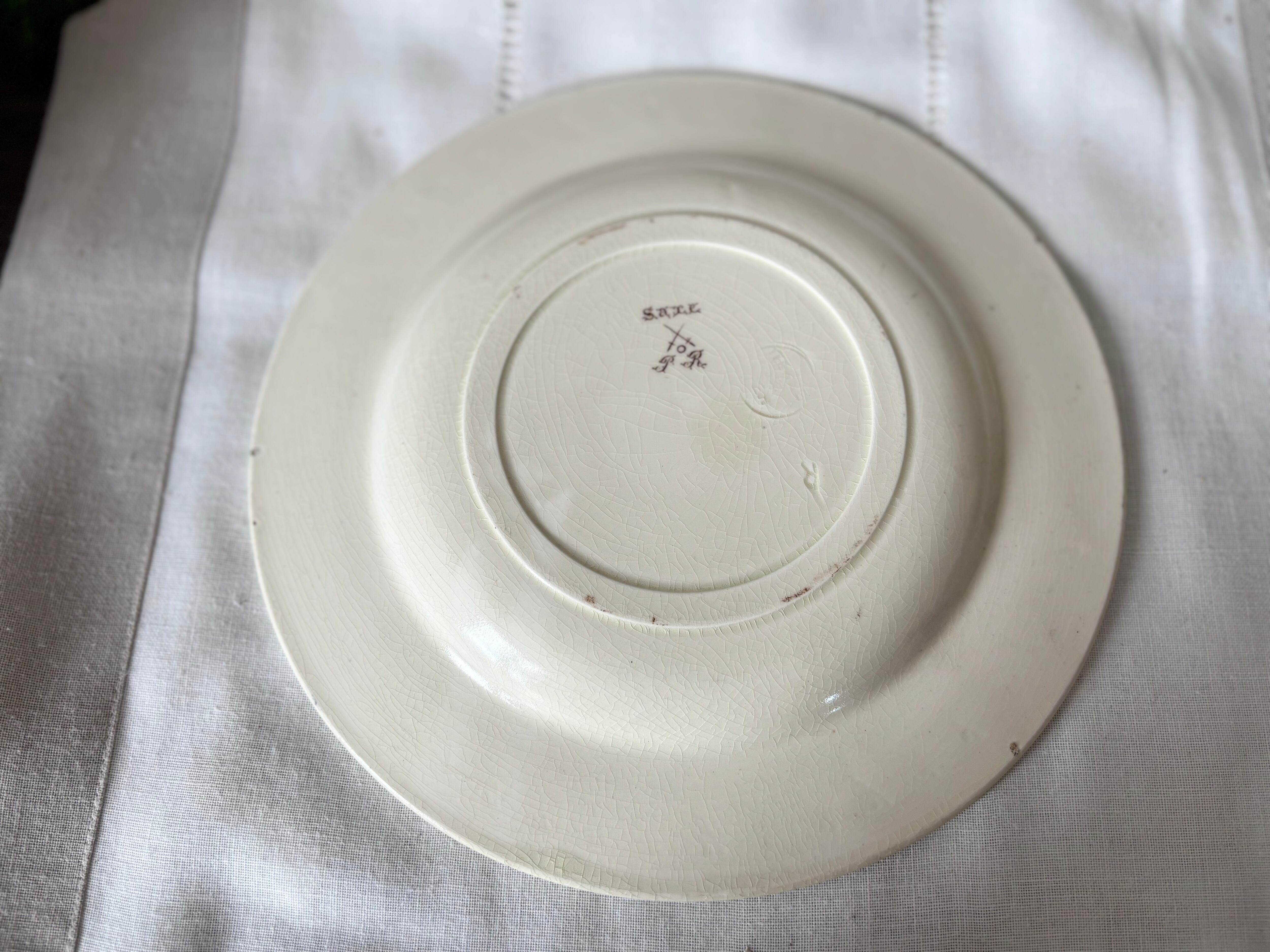 F様お取り置き / Salins / PR / Terre de fer / Saxe / 半深皿 / 19 century / France / Picture plate / brown and blue / 19世紀 / 絵皿 / フランス