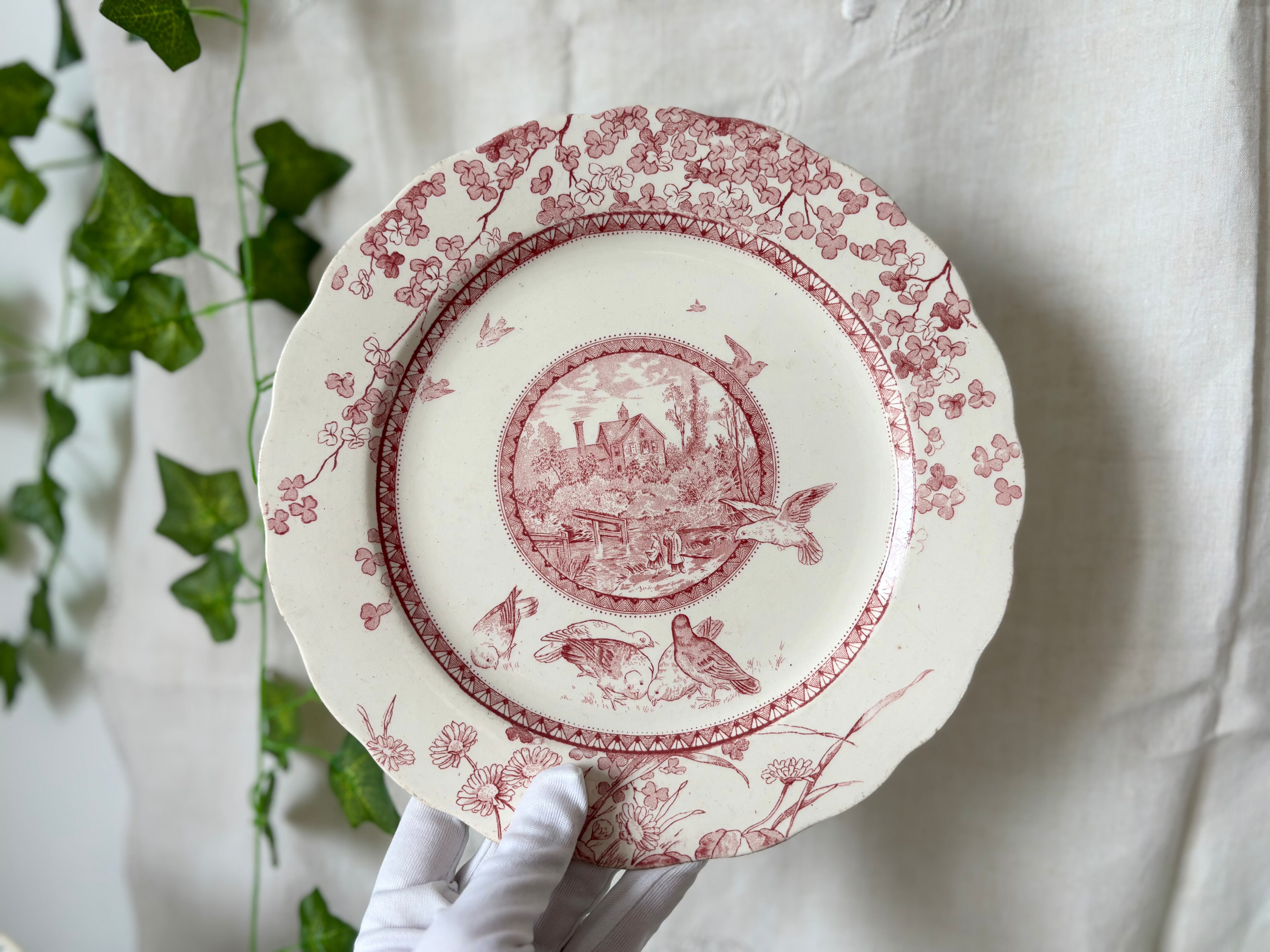 Brownfield & Sons / Woodland / 赤 / ディナープレート / 絵皿 / 19世紀 / アンティーク / イギリス / フランス