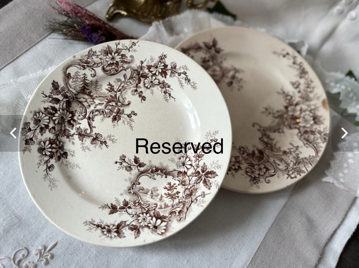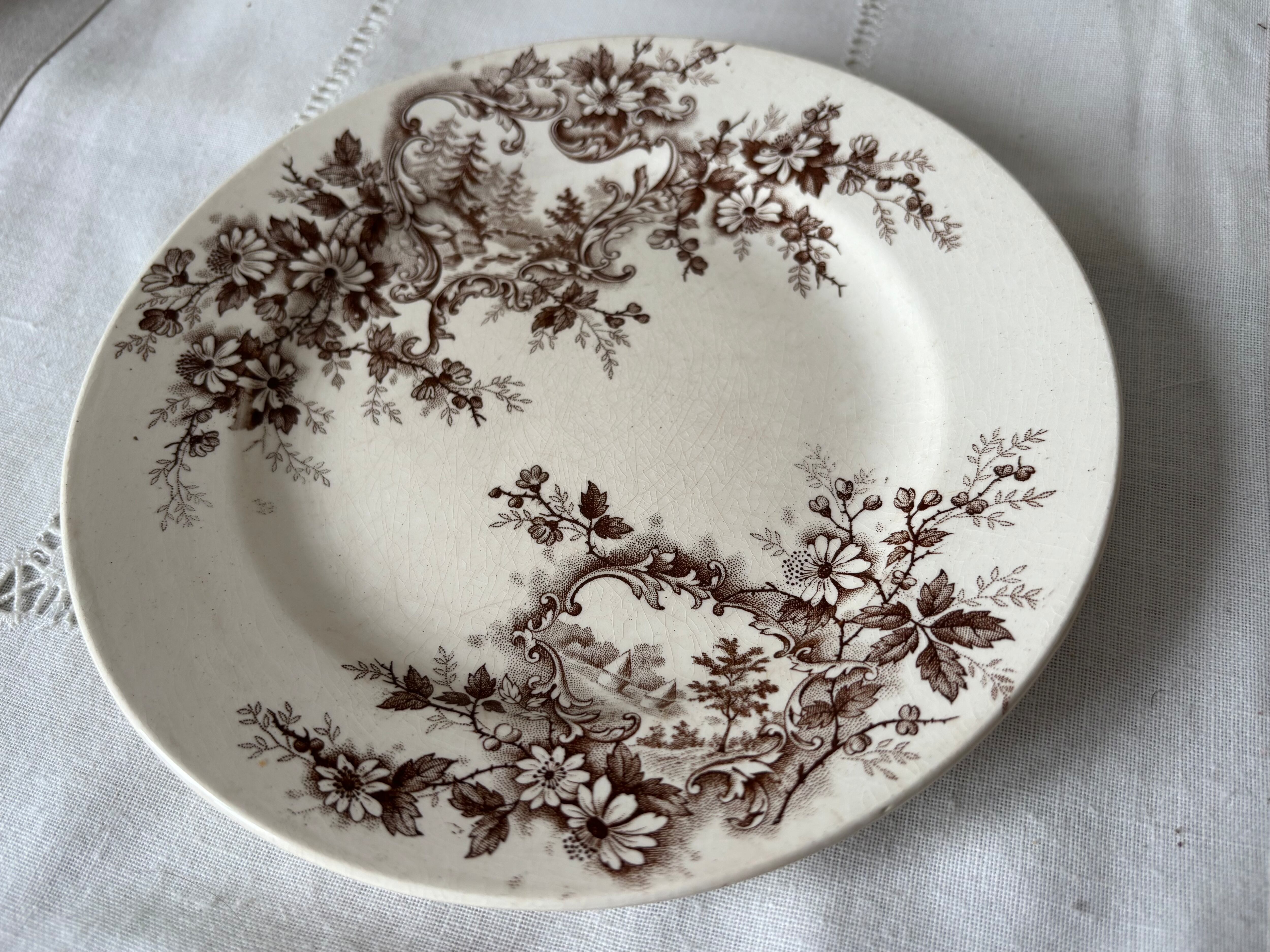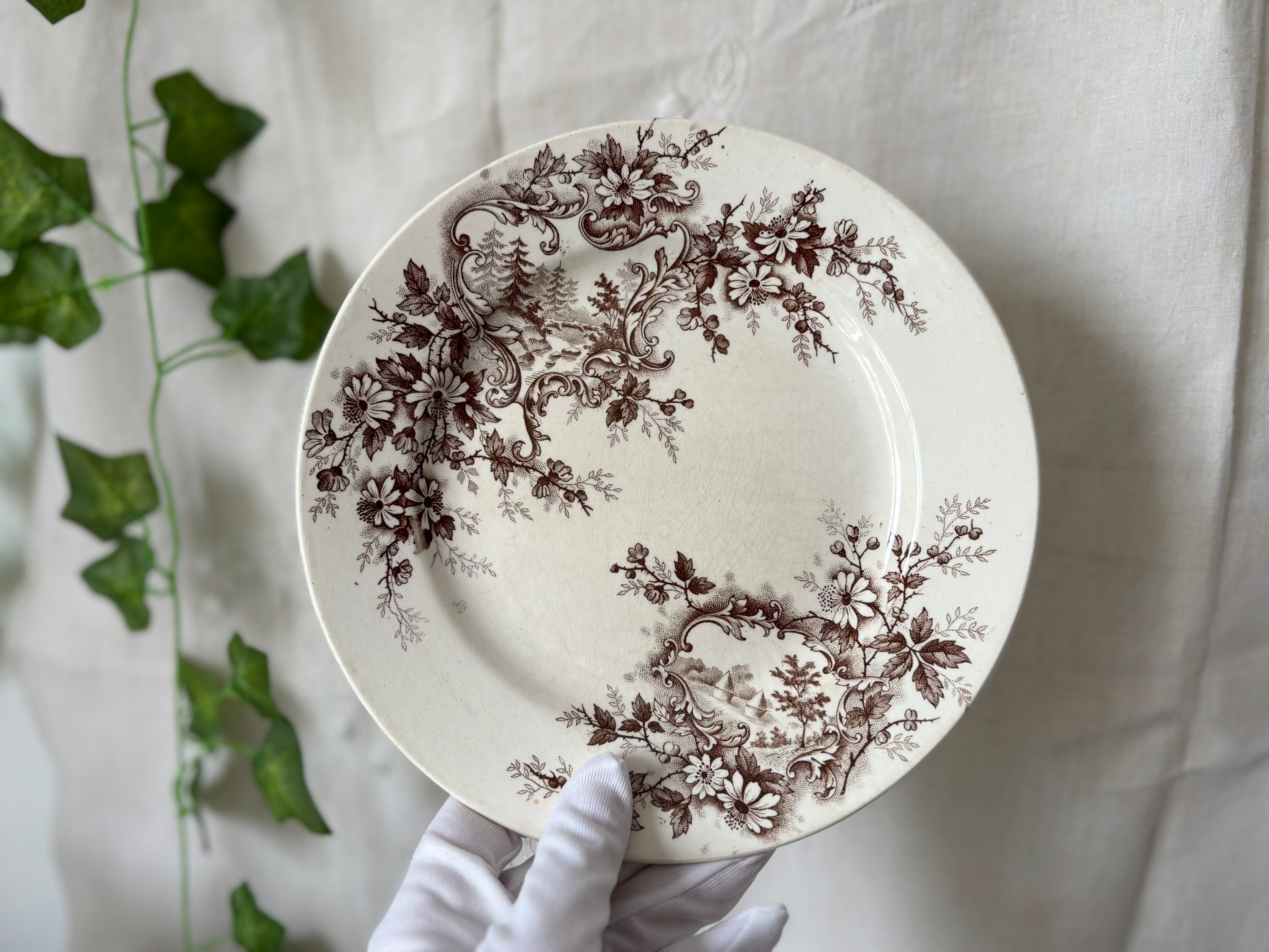 O様お取り置き / 2枚セット:H Boulenger &Cie , Choisy- le-roi / Terre de fer / Pompadour /デザートプレート / France / Antique / vintage / ショワジールロワ / ブラウン / フランス/ アンティーク