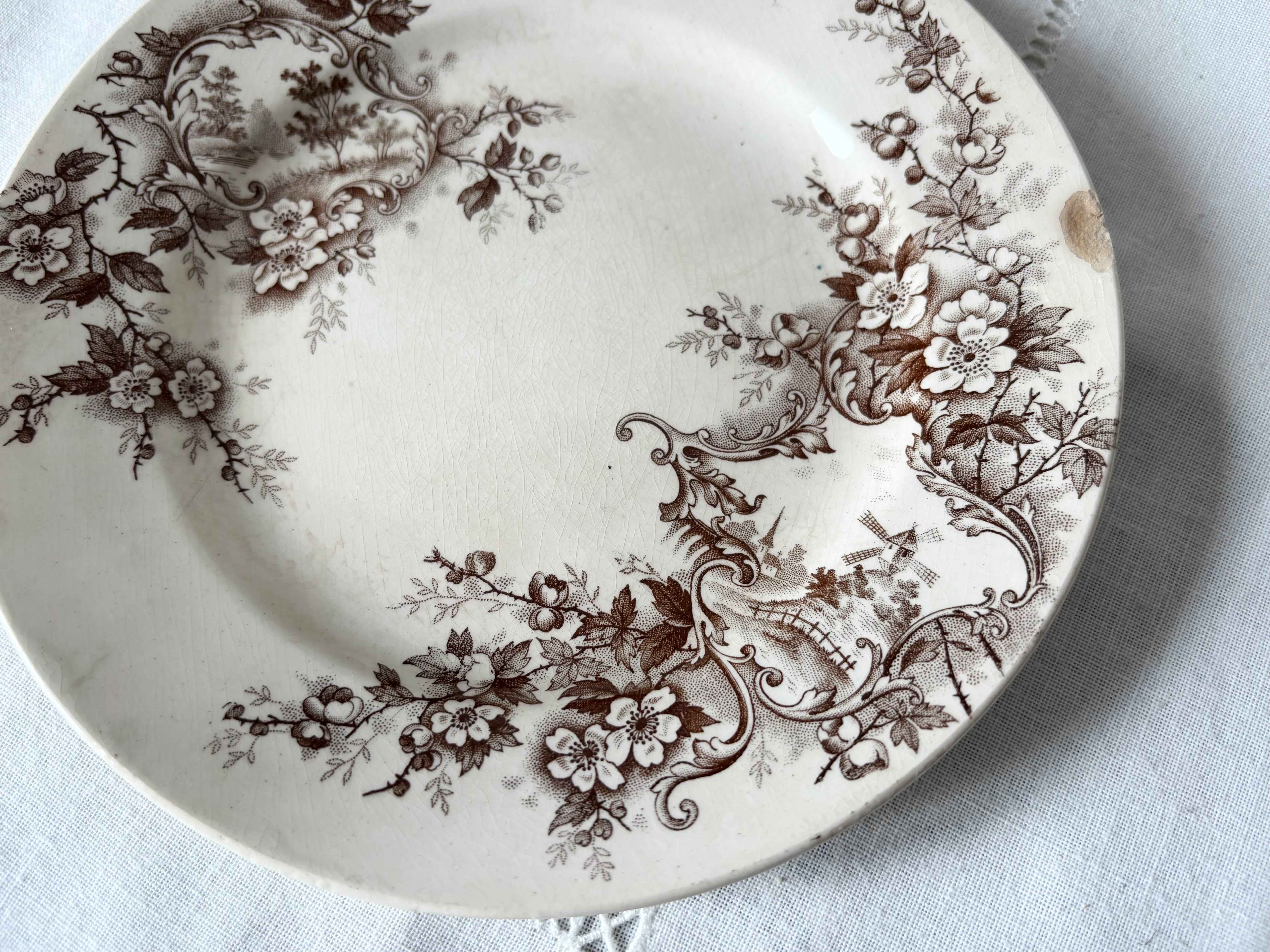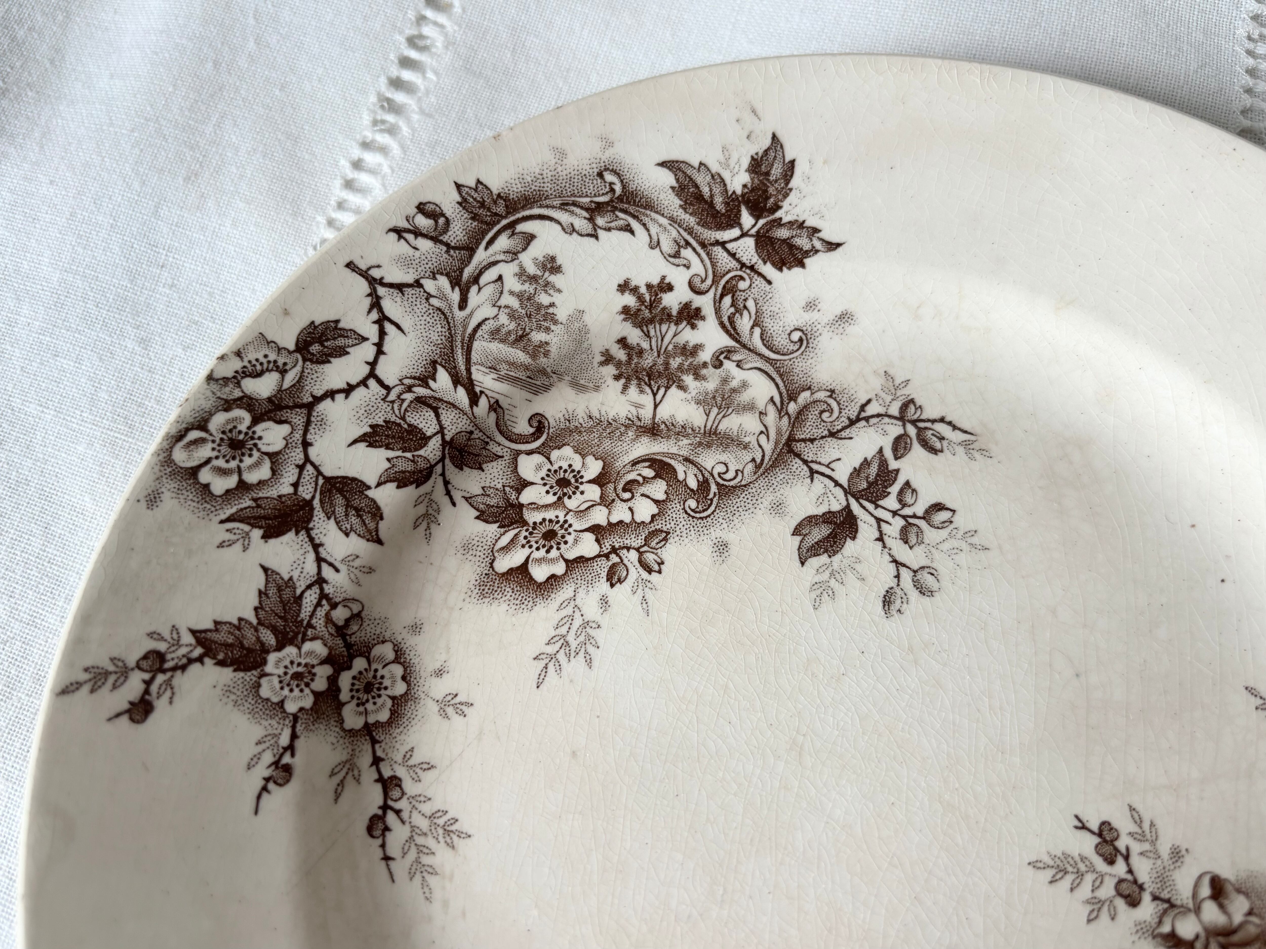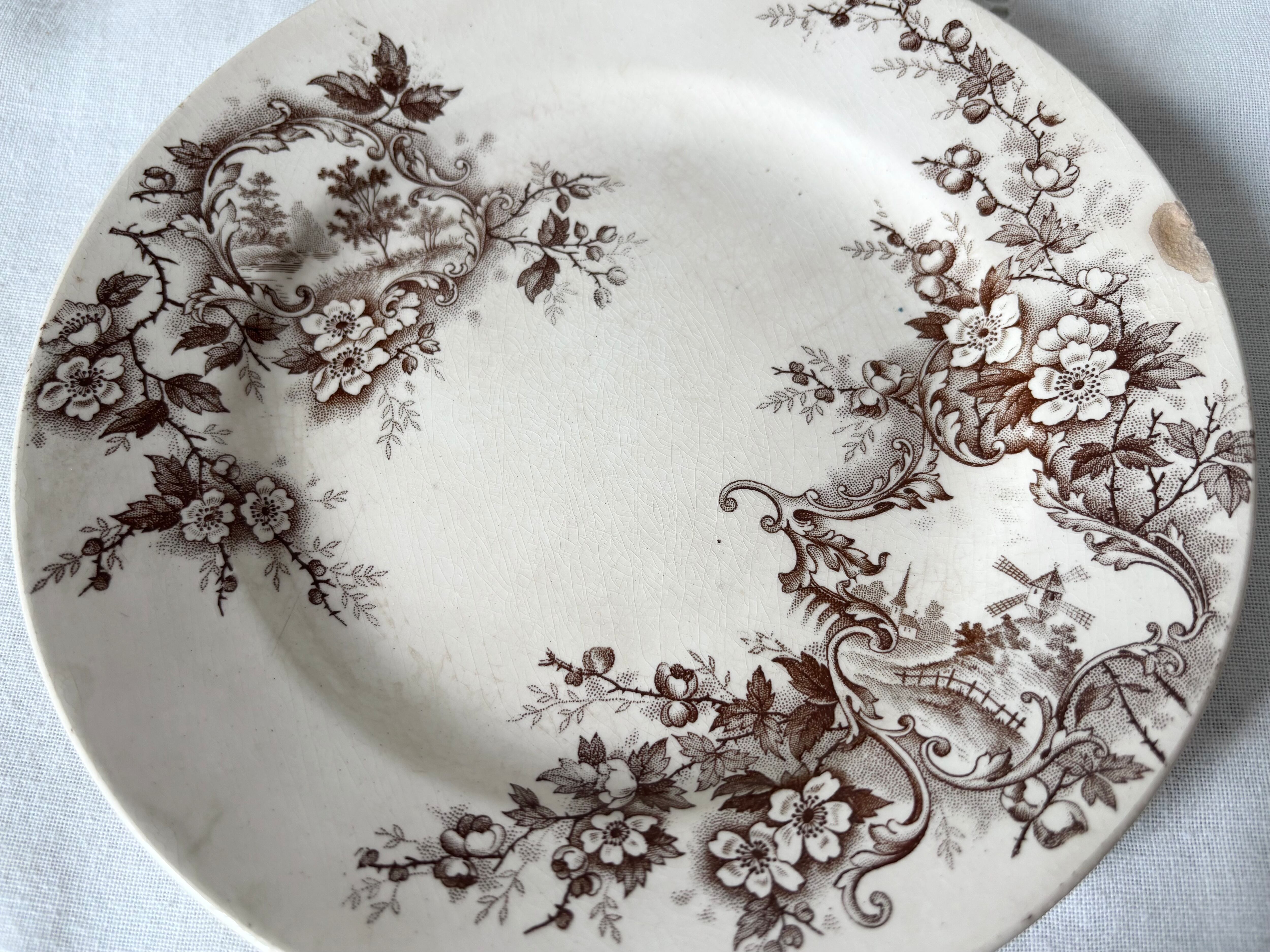 O様お取り置き / 2枚セット:H Boulenger &Cie , Choisy- le-roi / Terre de fer / Pompadour /デザートプレート / France / Antique / vintage / ショワジールロワ / ブラウン / フランス/ アンティーク