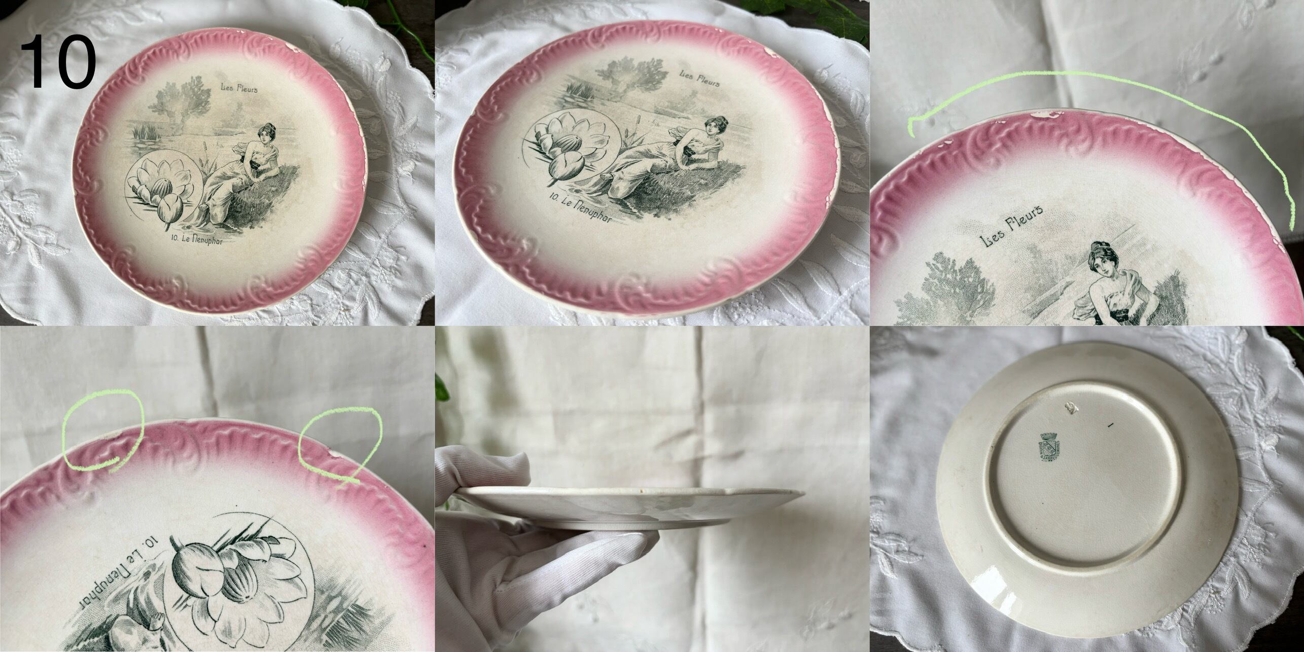本アイテムは、同シリーズのうち、1、2、3、7、9、10番目の絵柄を集めた6枚セットで、刻印より、1860 -1919年のお品と判別できます。