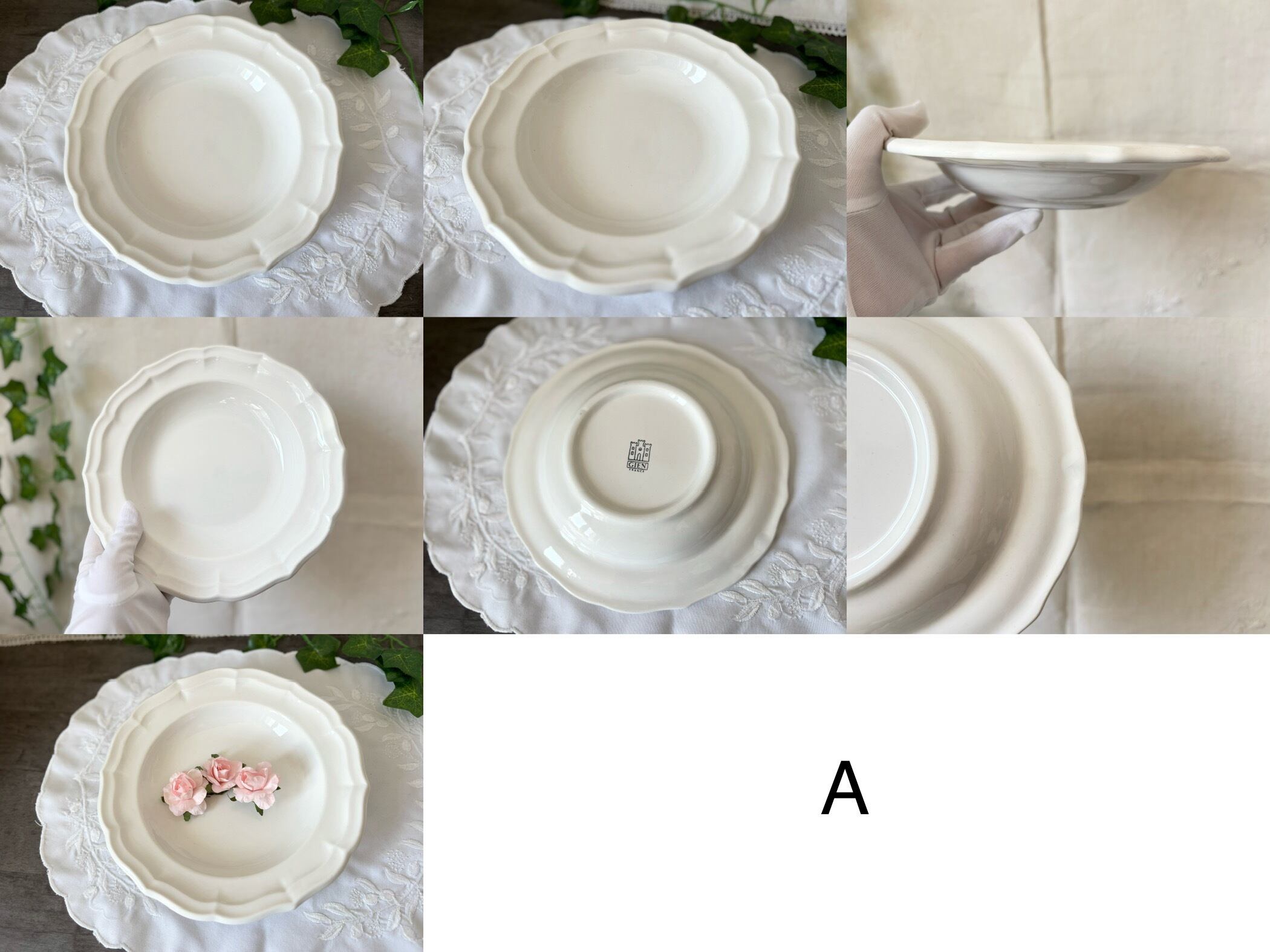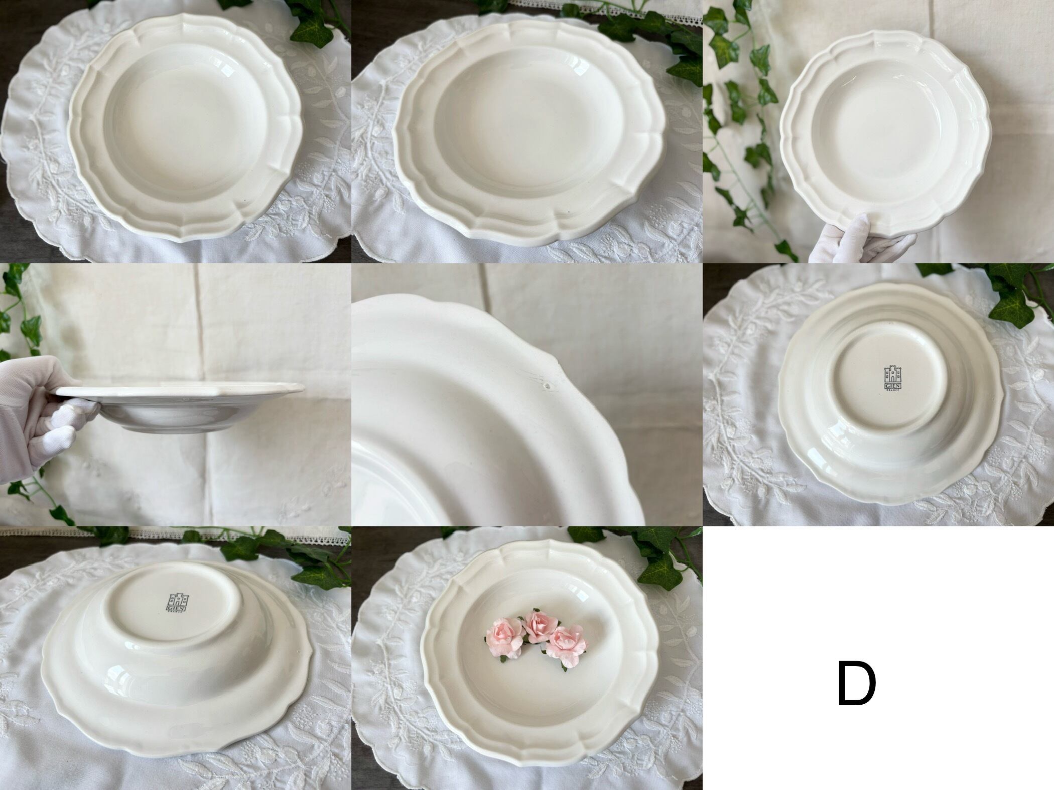 Lot 6 GIEN white deep plates / Fleur Rim / French antique / vintageジアン 花リム 白い深皿 6枚セット フランス ビンテージプレート