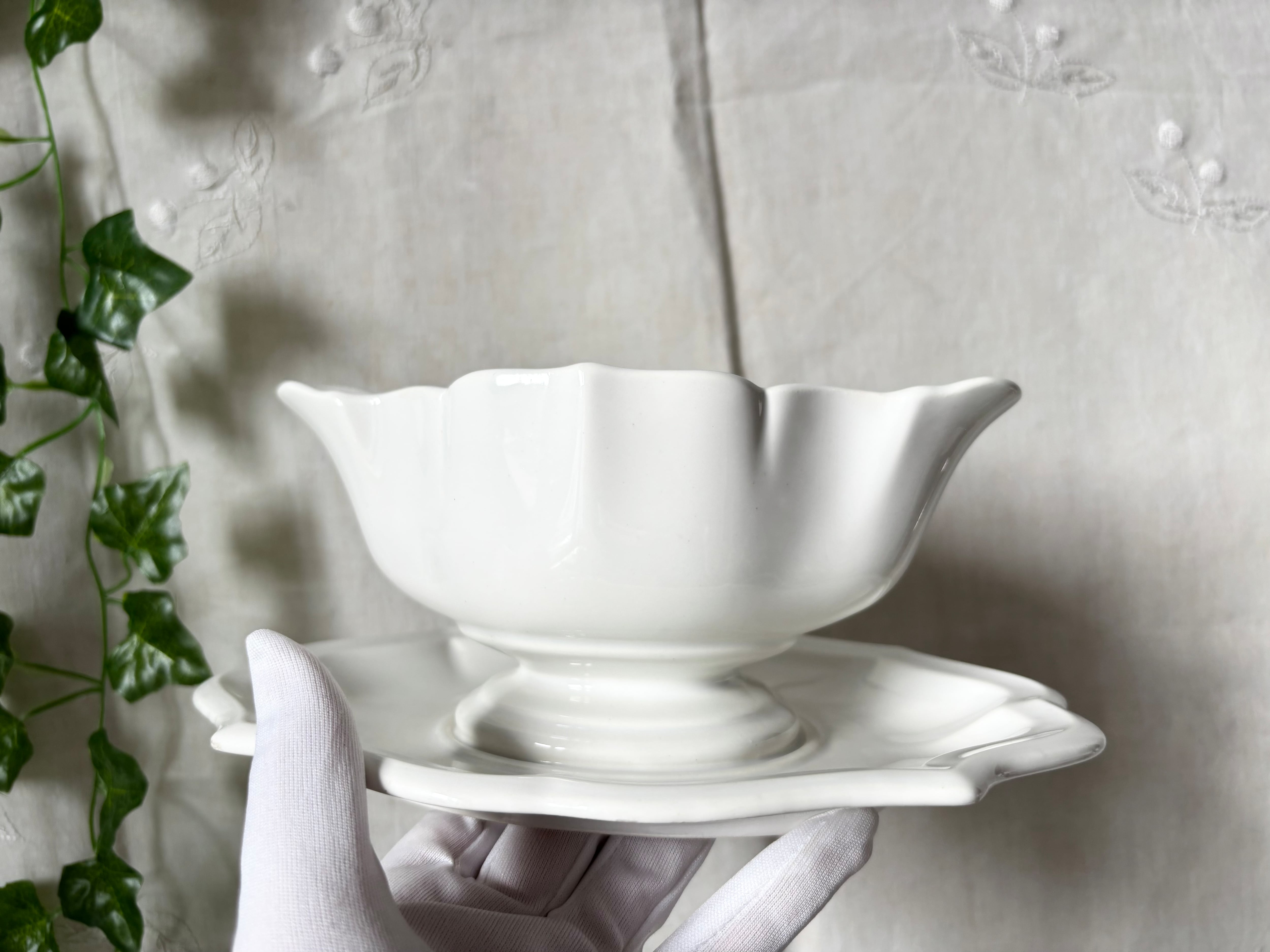 GIEN / Fleur Rim / gravy boat / saucier /White / French antique / ジアン 花リム 白いソーシエール フレンチアンティーク ビンテージ