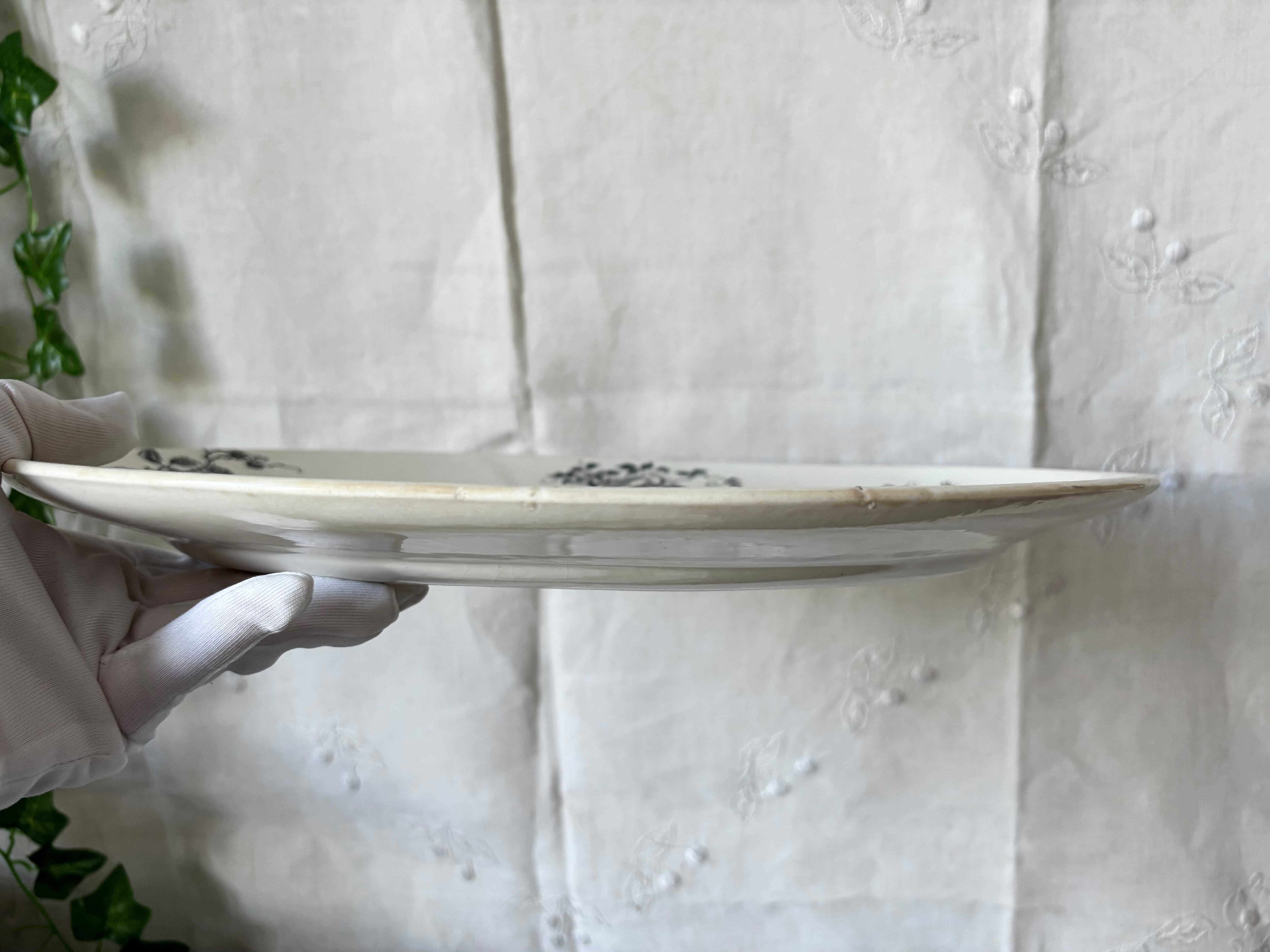 19世紀後半、フランス・パリ近郊の名窯Choisy-le-Roi(ショワジー・ル・ロワ)にて製造された、Terre de Fer(テールドフェール=硬質陶器)のオーバルプレート。
