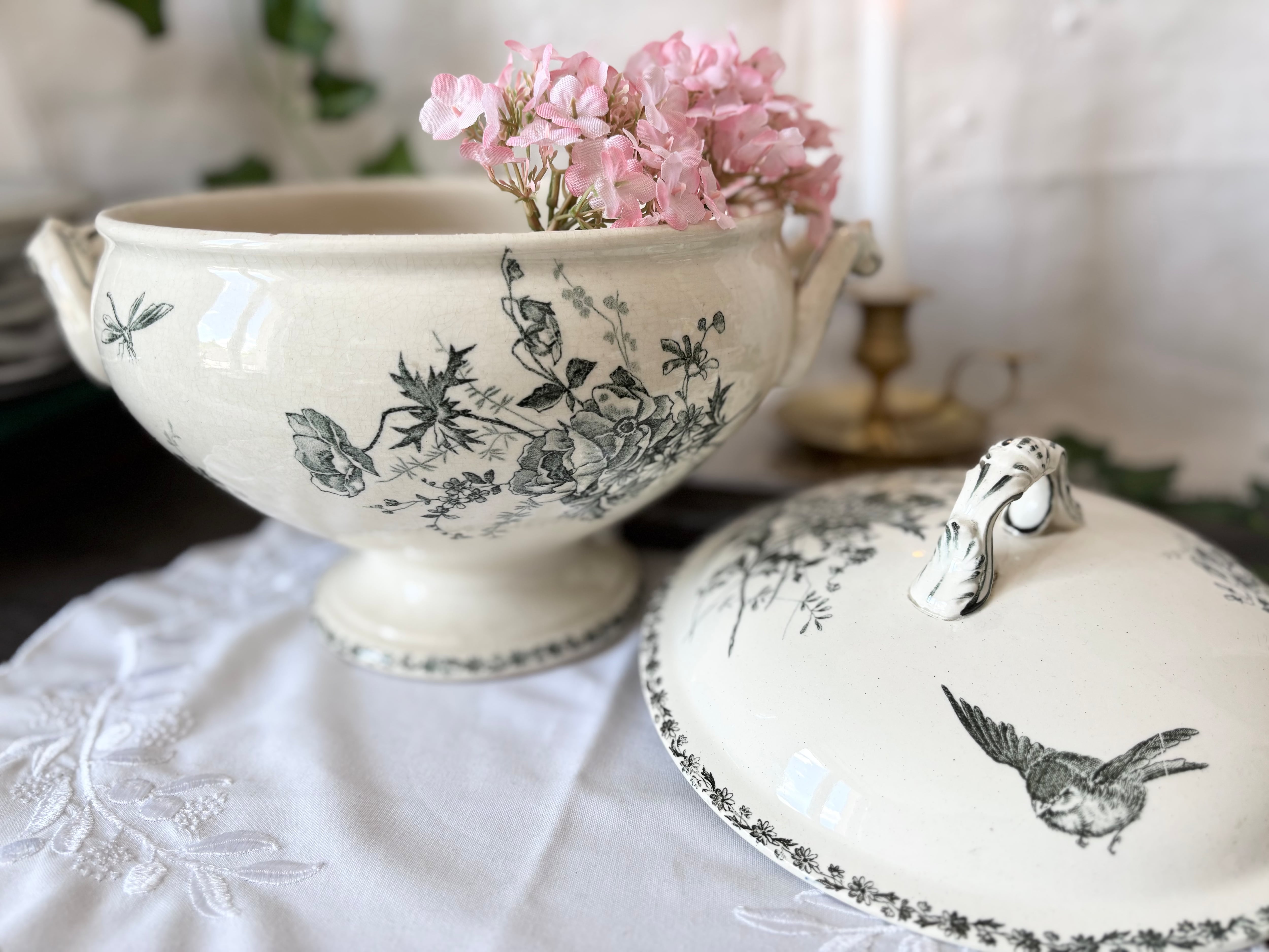 Choisy-le-roi / Terre de fer / Sce Français / Soupière / Tureen / Bird / France / Antique / サンタマン テールドフェール スーピエール 鳥 フランス アンティーク