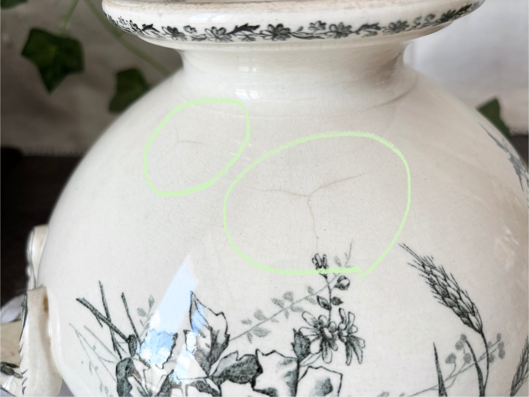 アイテムのコンディションとして、蓋は恐らく元来一回り小さなスーピエールの蓋だった様で、本体と蓋の間に僅かに隙間が出来たり、座りが少し悪いです。本体全体に、薄く美しいクレイジングが広がっています。