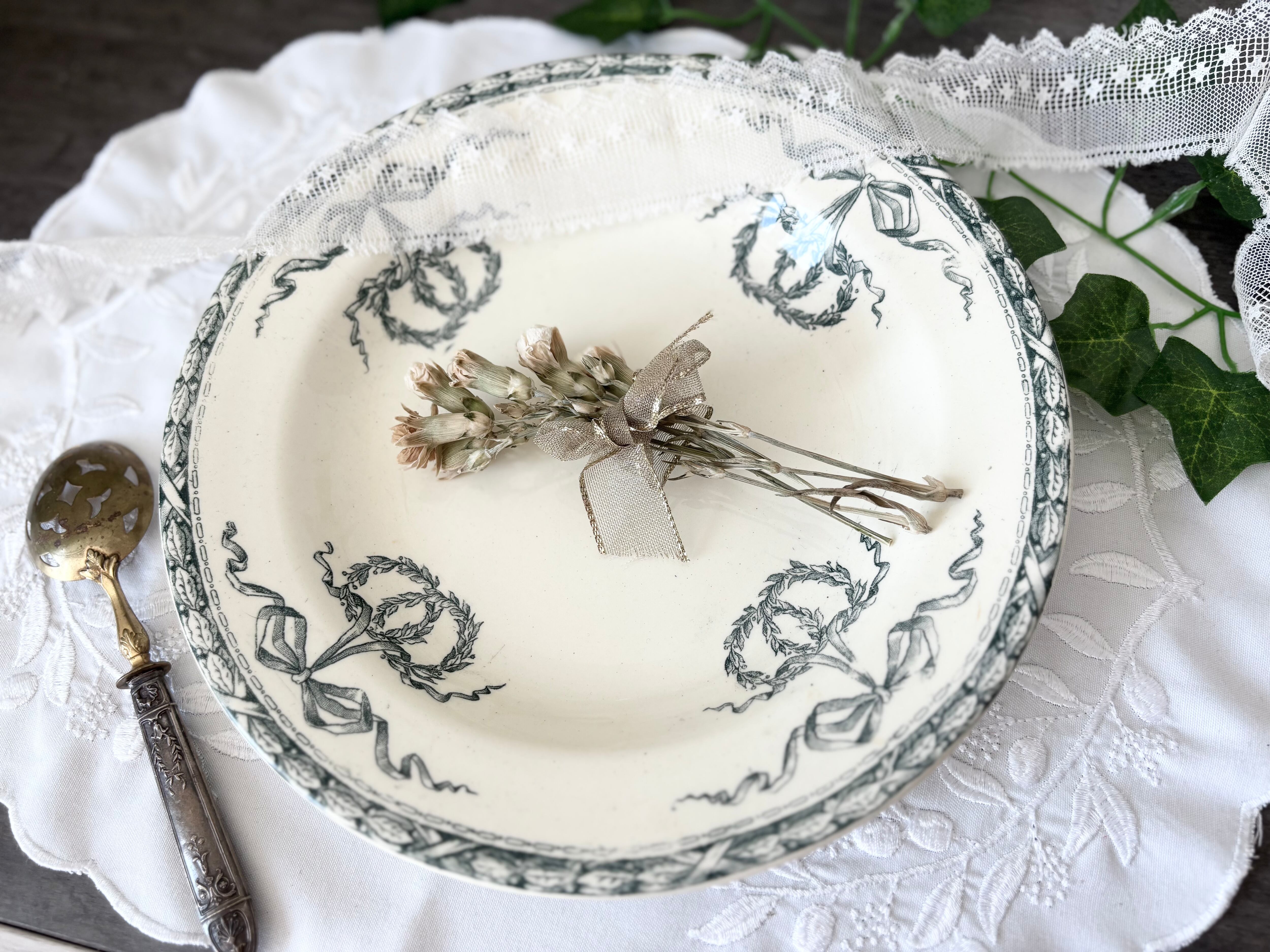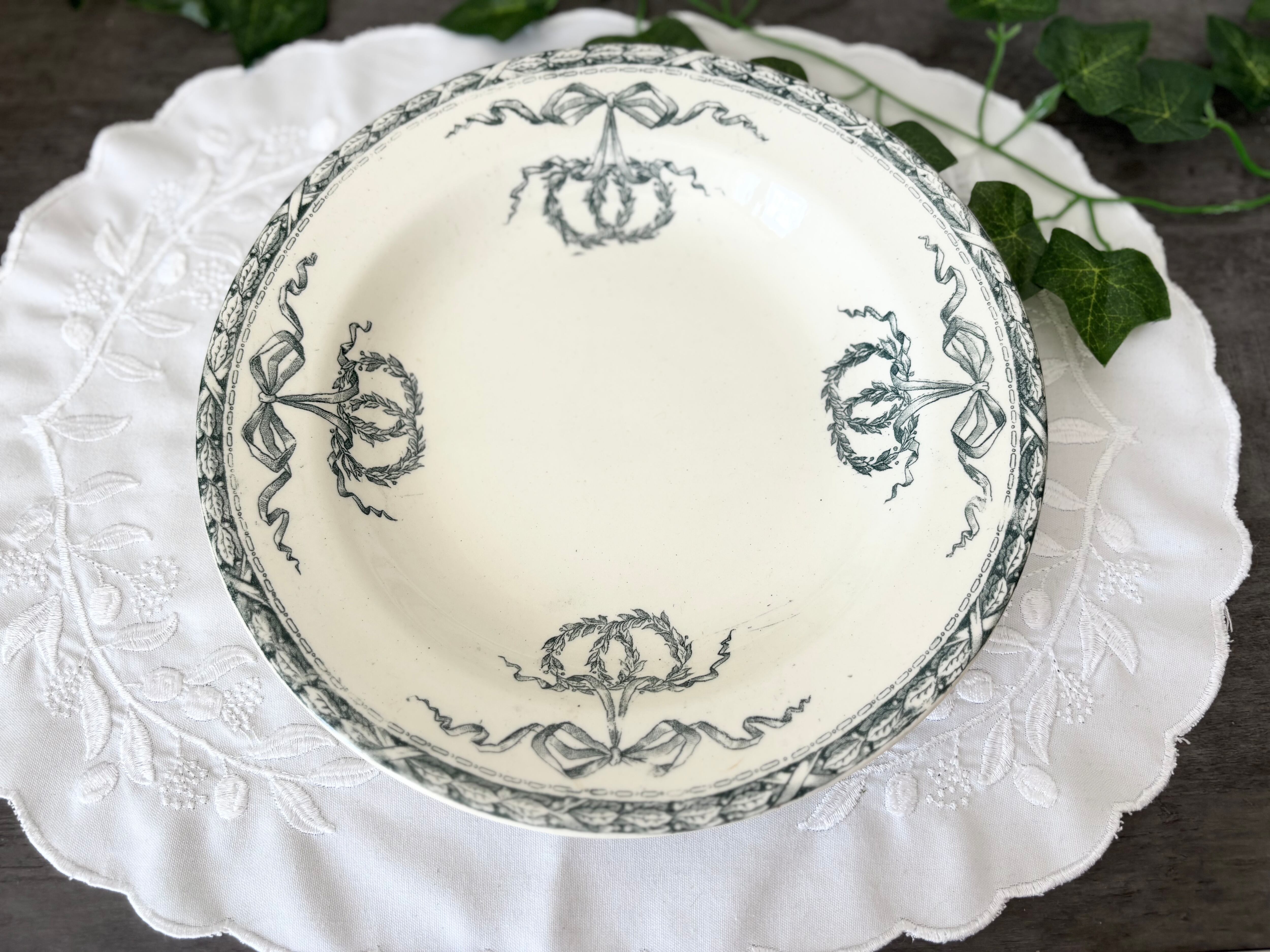 SALINS / Montholon / deep plate / Antique / France / リボン /サラン / フランス アンティーク