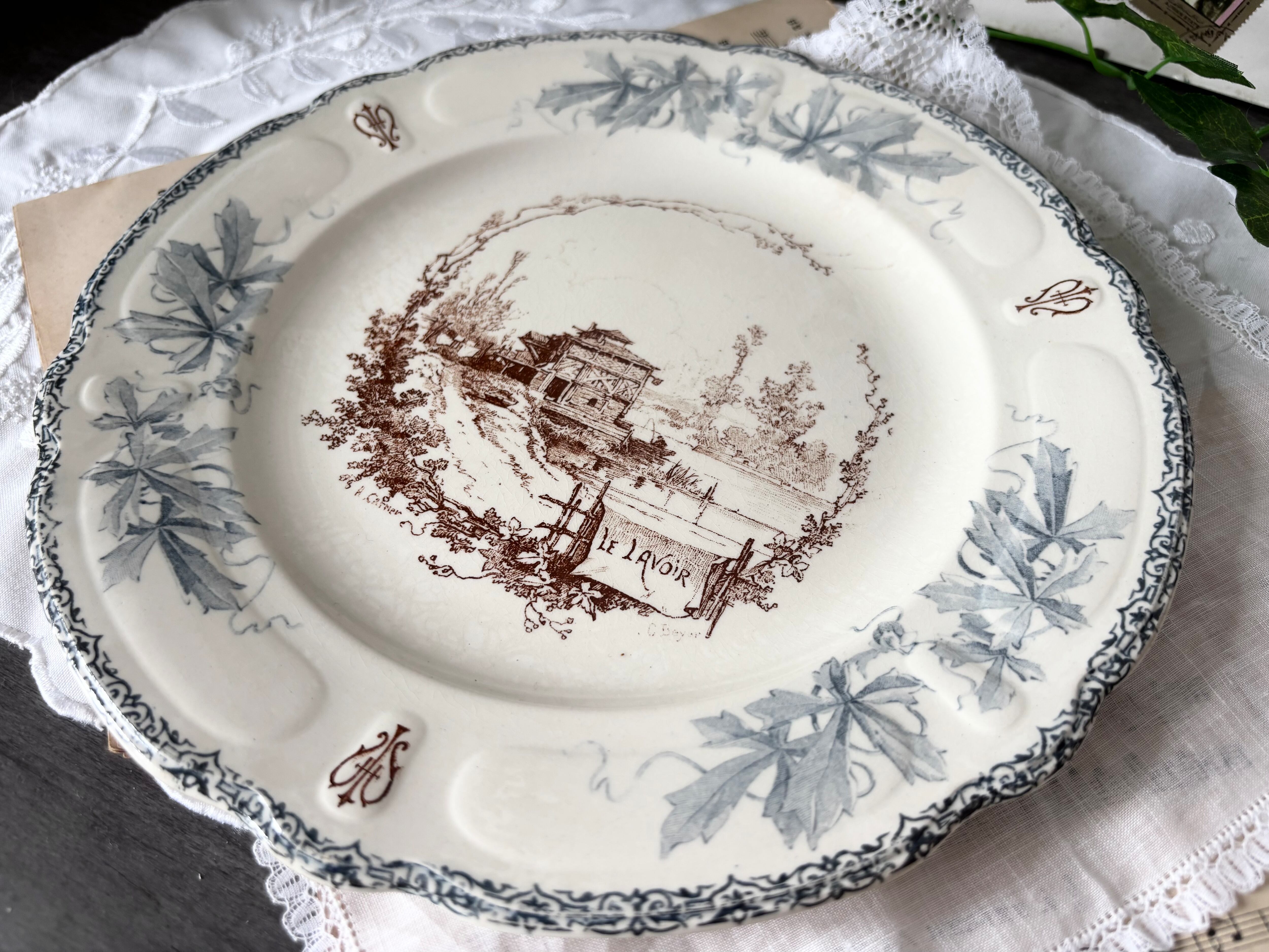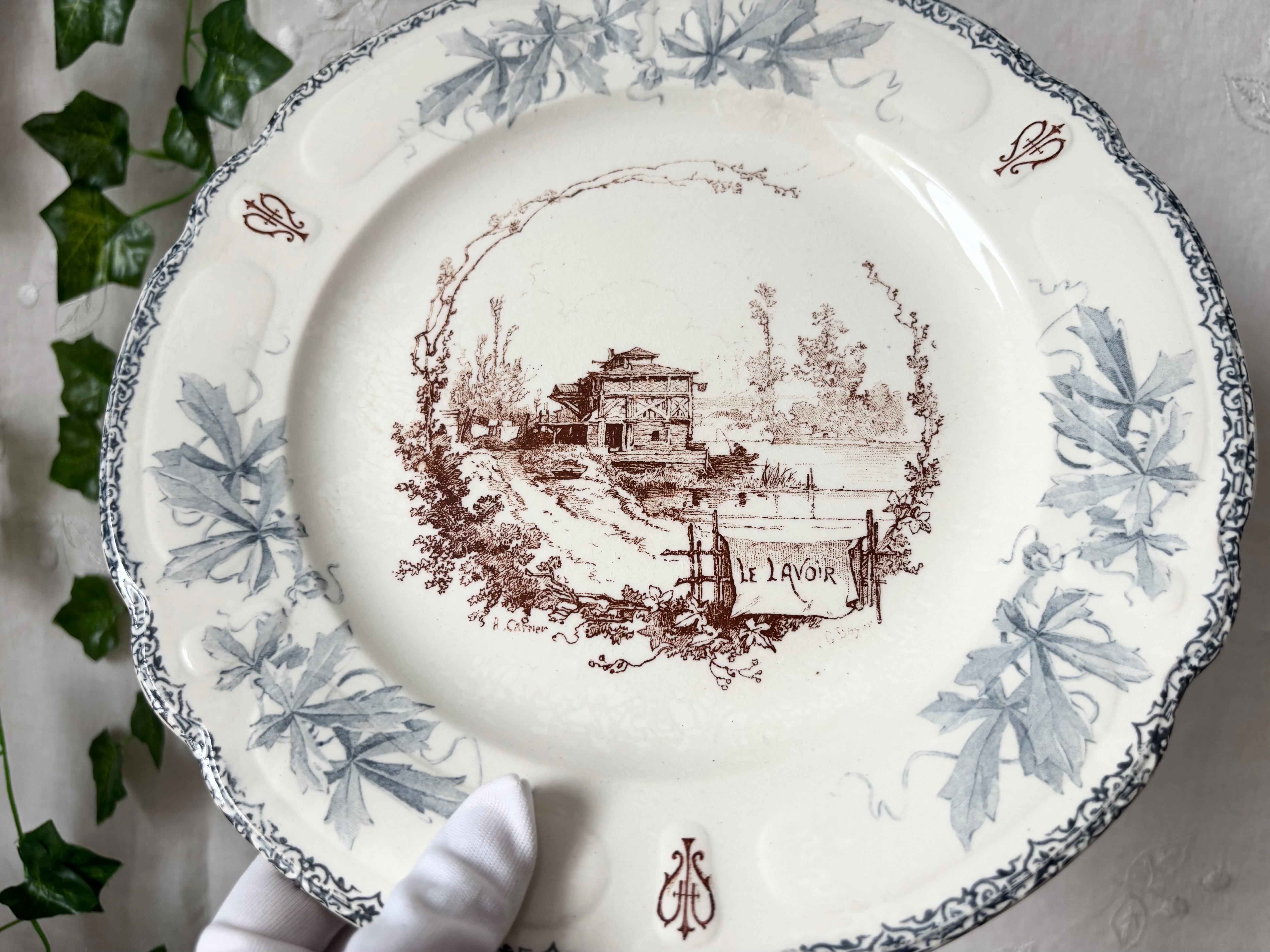 26cm / H. Boulenger & Cie / Choisy le roi (ショワジールロワ) / Louis XIII (ルイ13世) / ディナープレート / Le Lavoir / フランス / アンティーク /