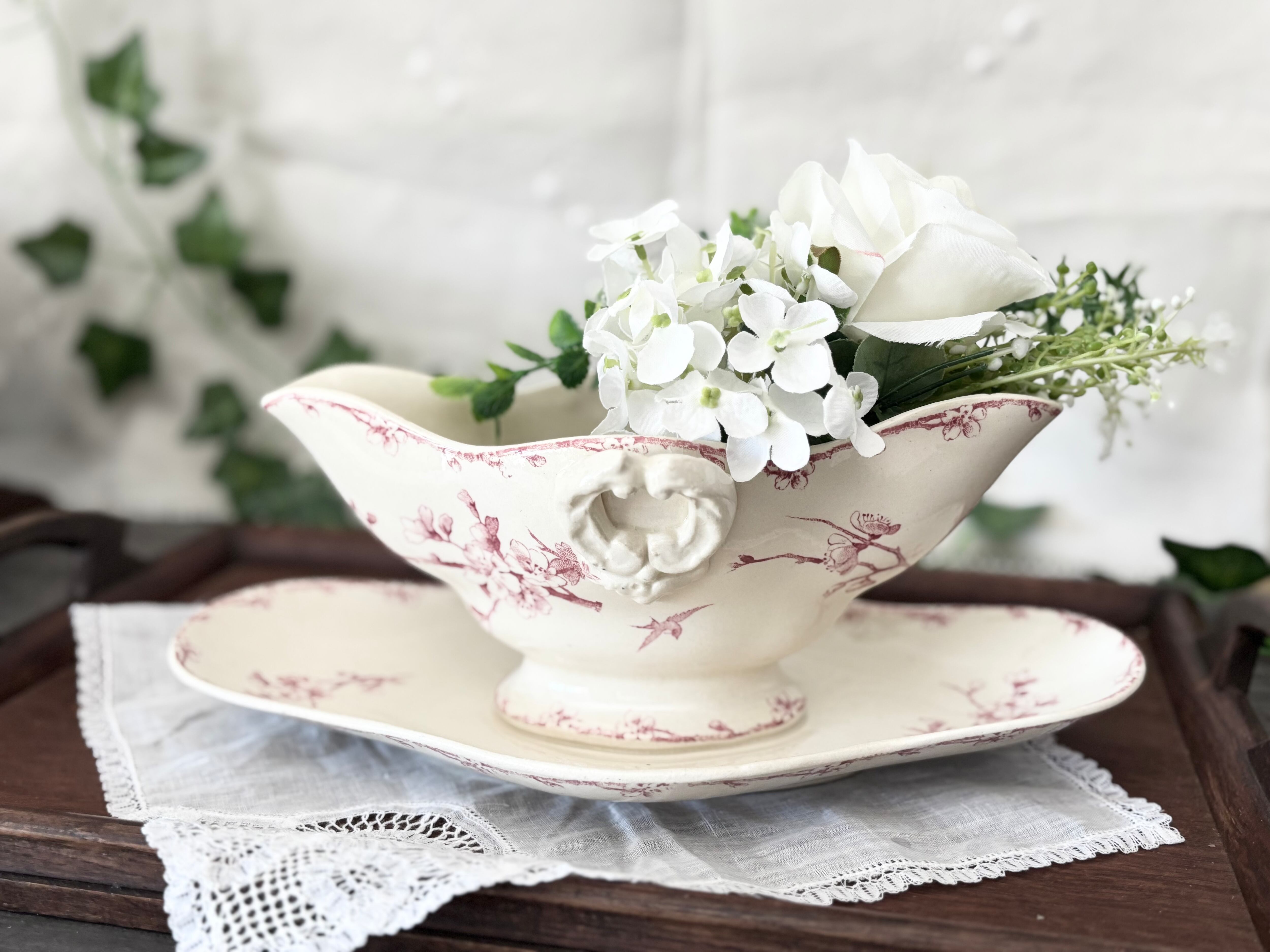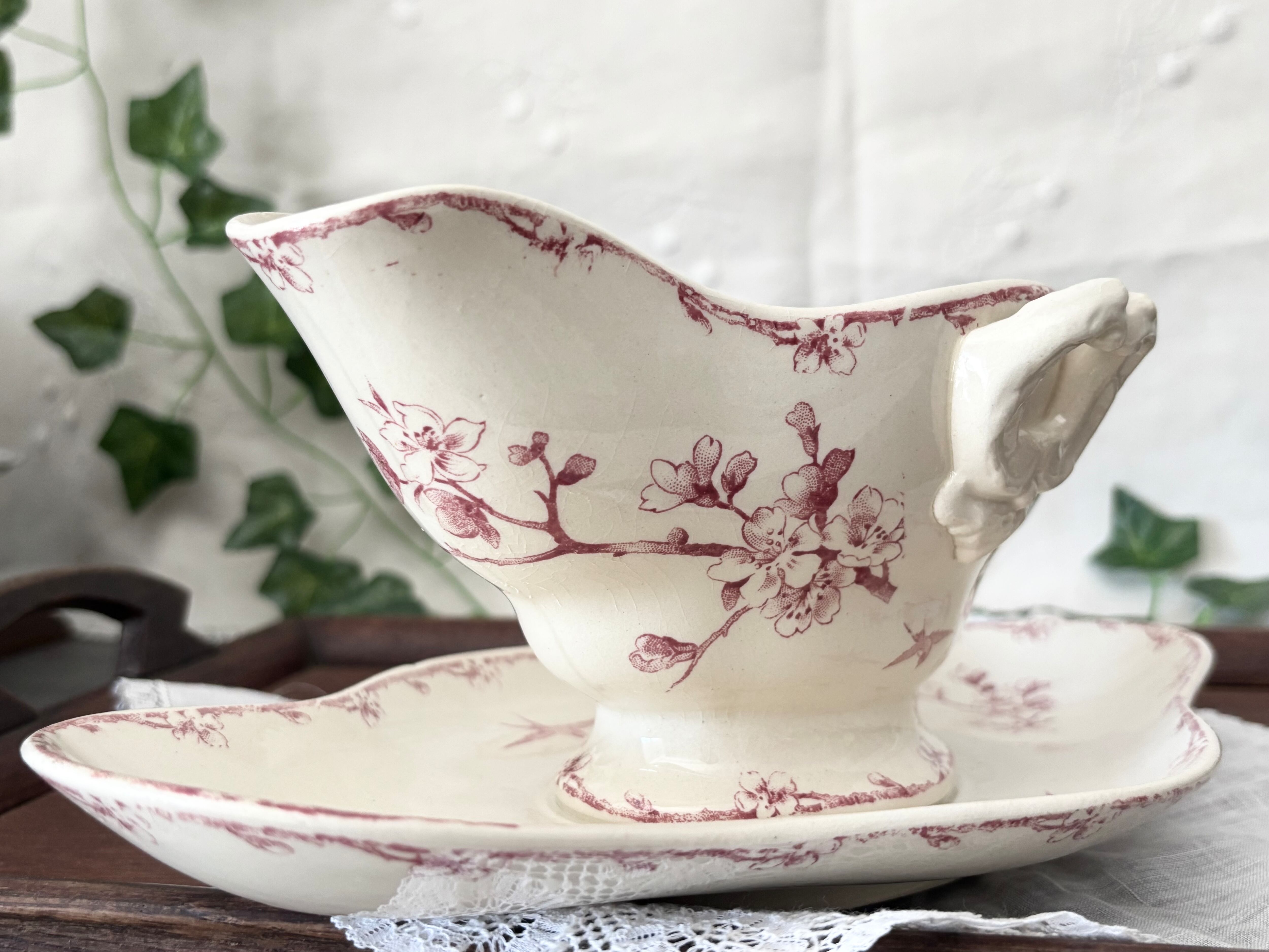 19世紀末から20世紀初頭のフランスより、GIENのTerre de fer 窯による、Martinets(燕)シリーズより、赤のソーシエールをご紹介いたします。