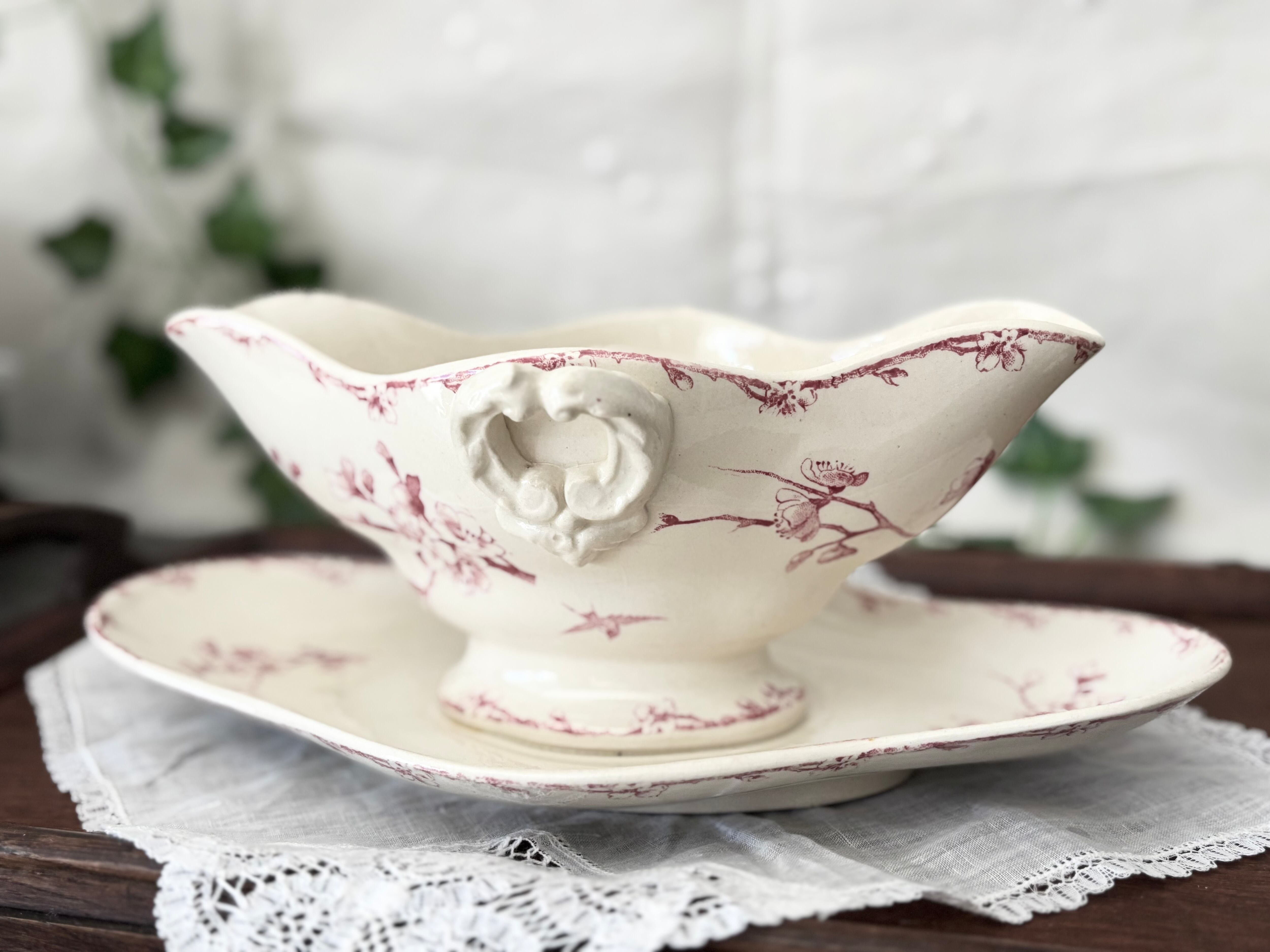 GIEN / Terre de fer / saucier / Martinets (燕) / French antique / ジアン / ソーシエール / 赤 / 鳥 / フレンチアンティーク