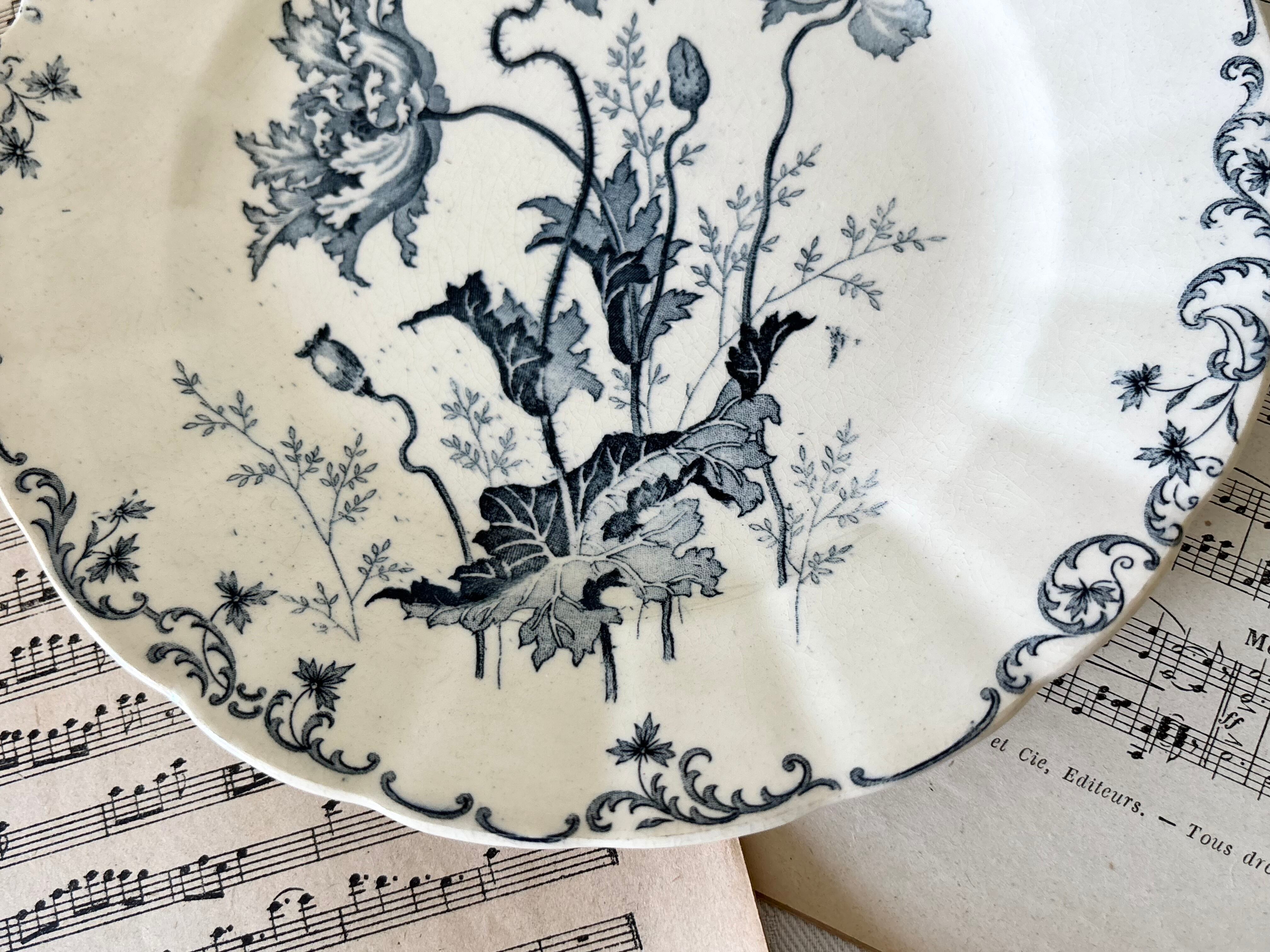 A: 20.5cm / Choisy-le-roi / Pavots / Dessert plate / Terre de fer / France / Antique/ vintage / shabby chic / ショワジールロワ / テールドフェール / デザートプレート