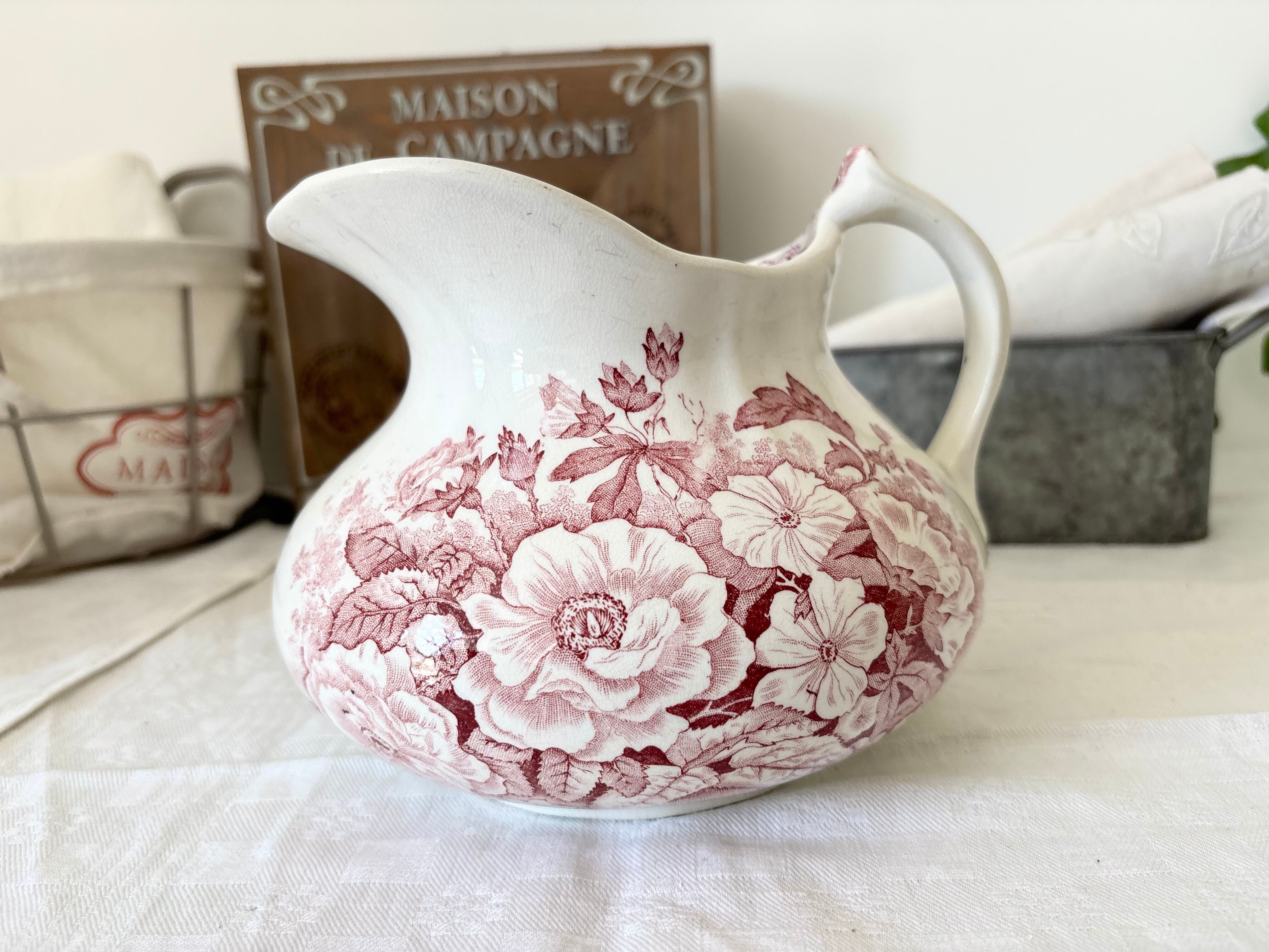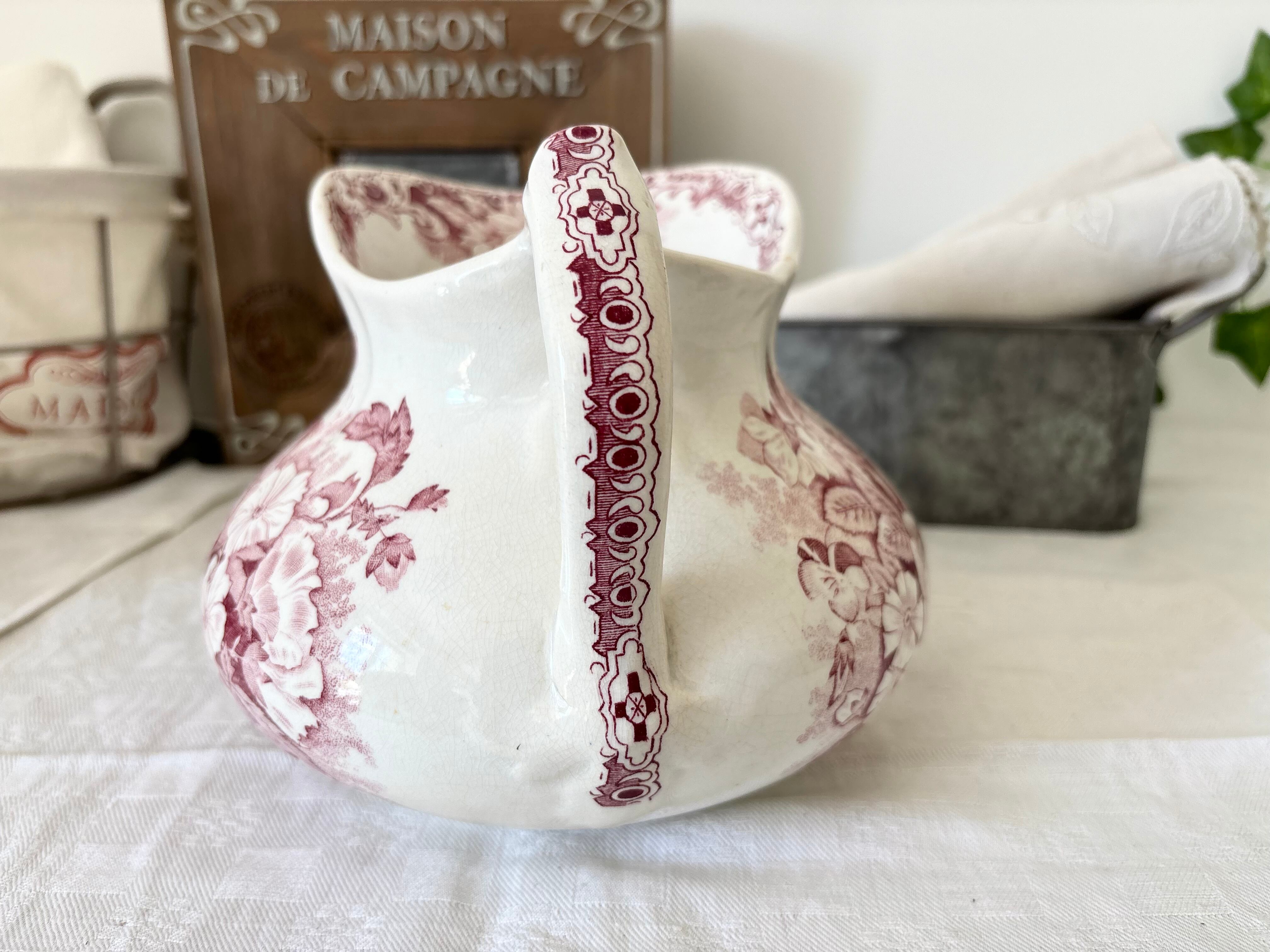 19世紀末〜20世紀初頭のフランスより、愛好家たちからも、高く評価されている「Onnaing(オネアン)窯」の逸品Floraシリーズの赤いピッチャーをご紹介いたします。