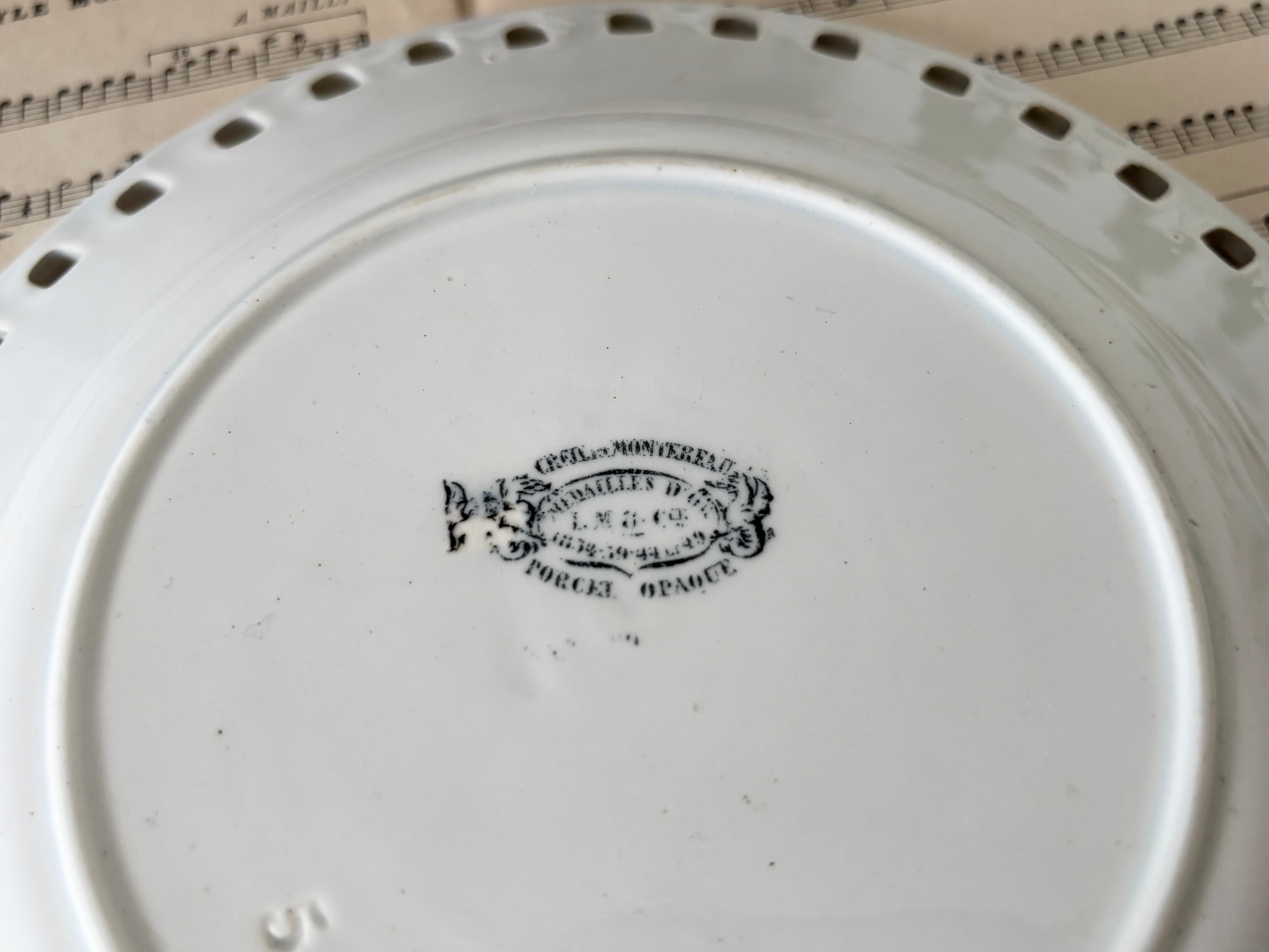 A: Creil et Montereau (クレイユモントロー)/ 白いデザートプレート / パニエ柄 / オープンワーク / 透かし彫り / フレンチアンティーク