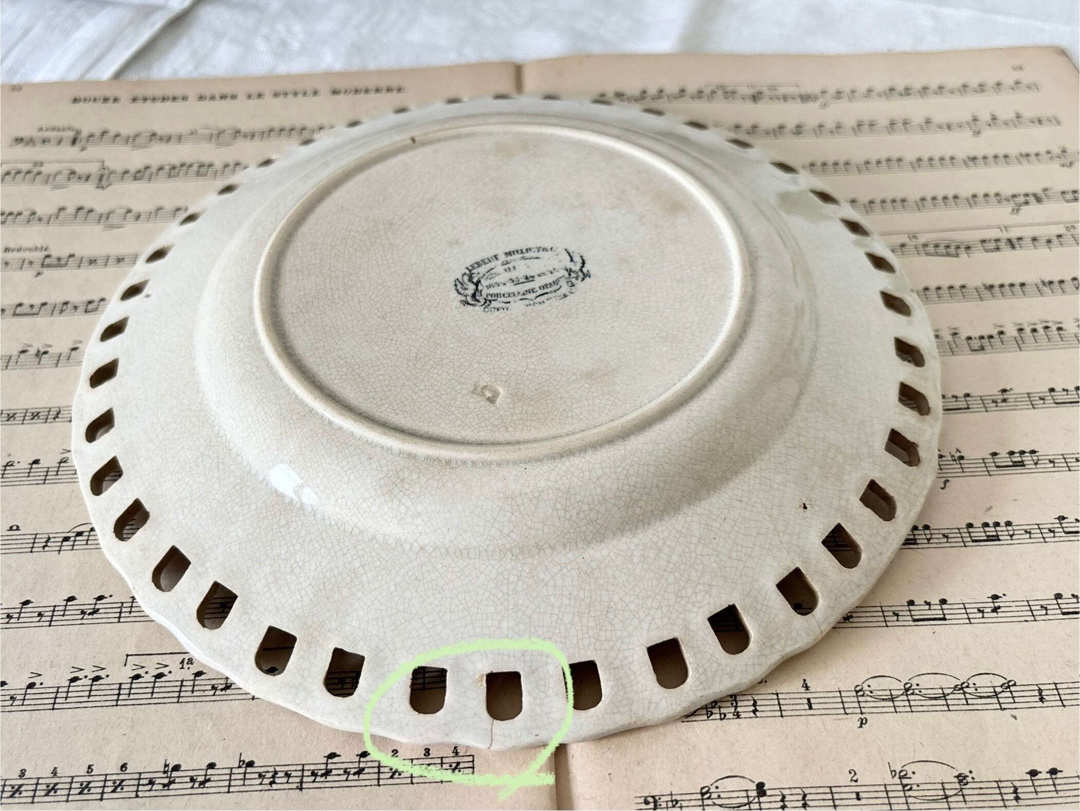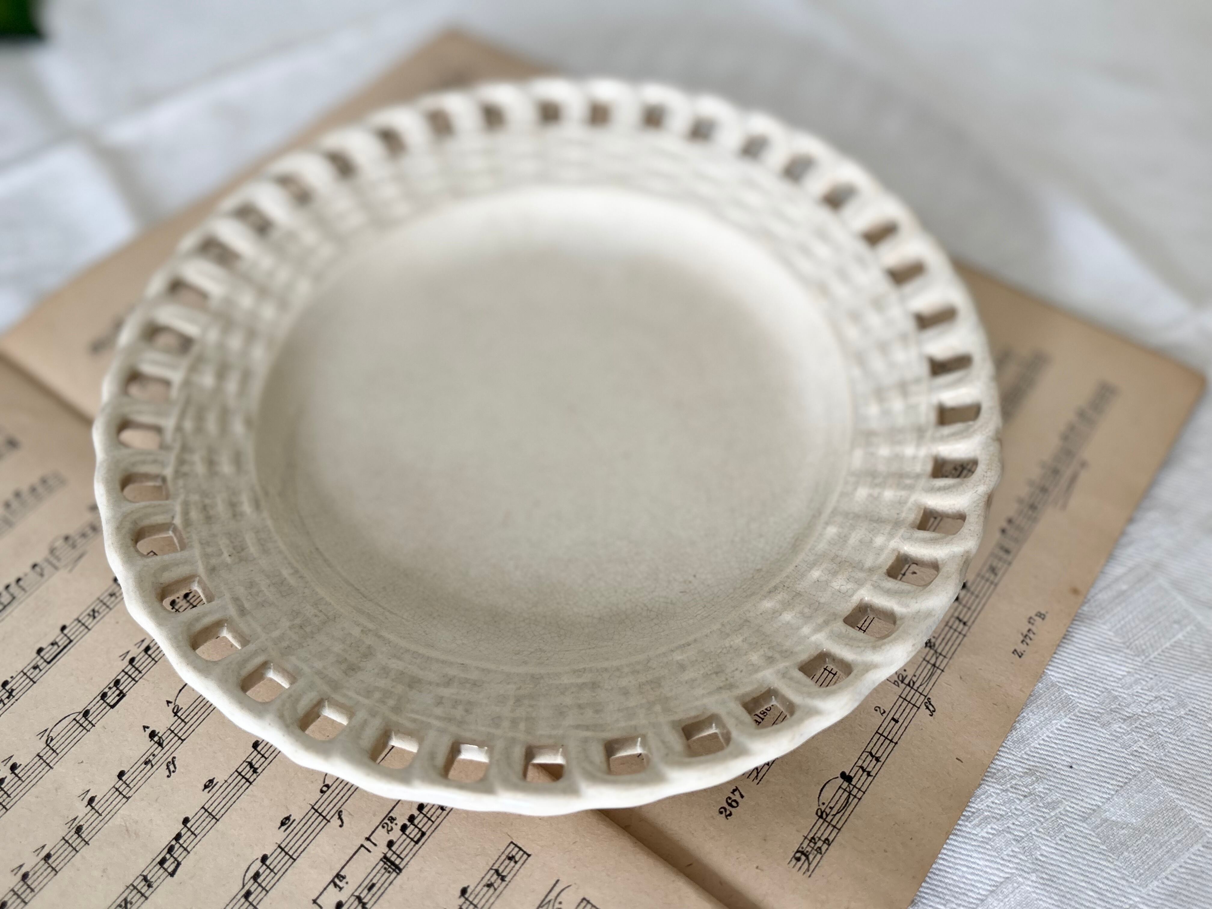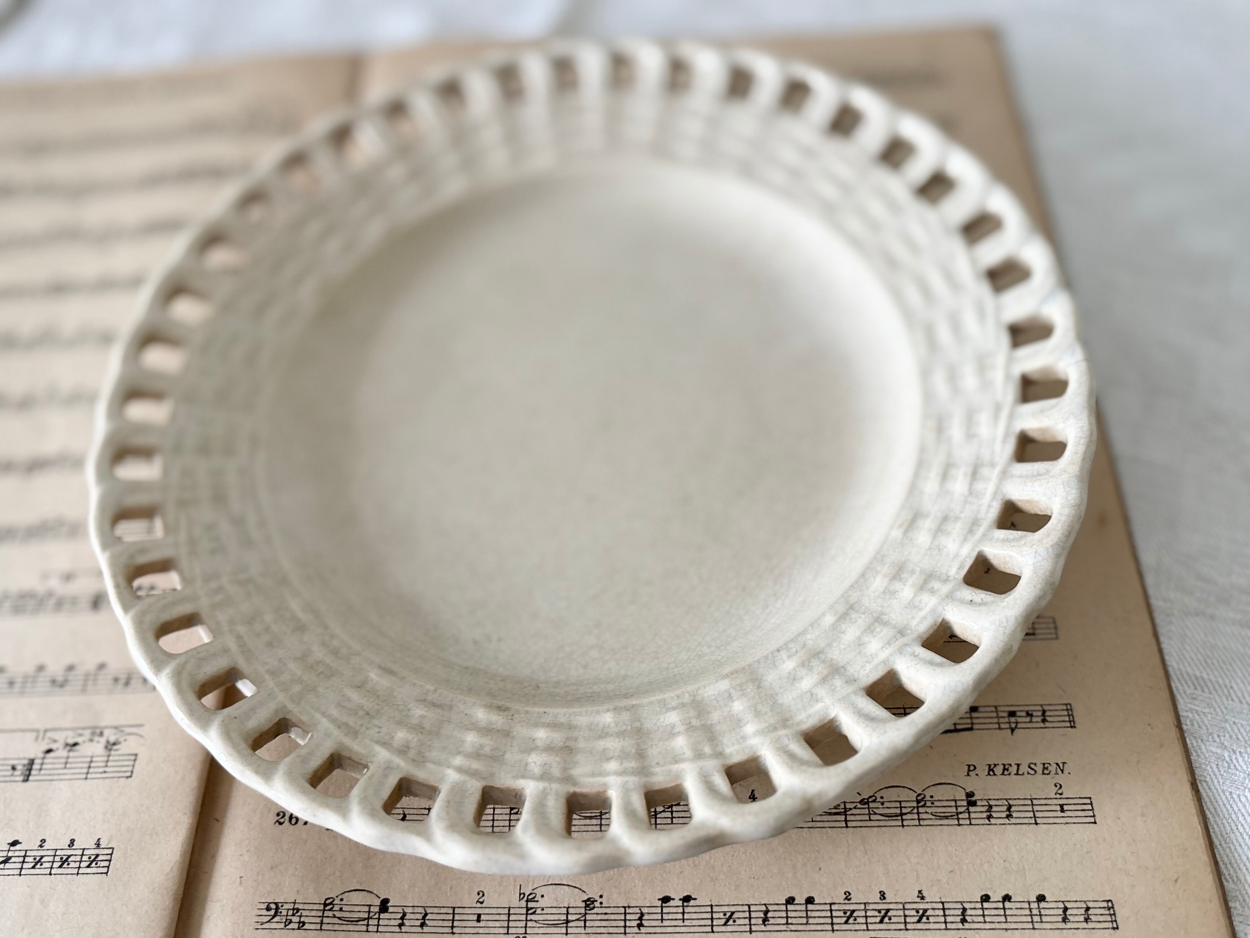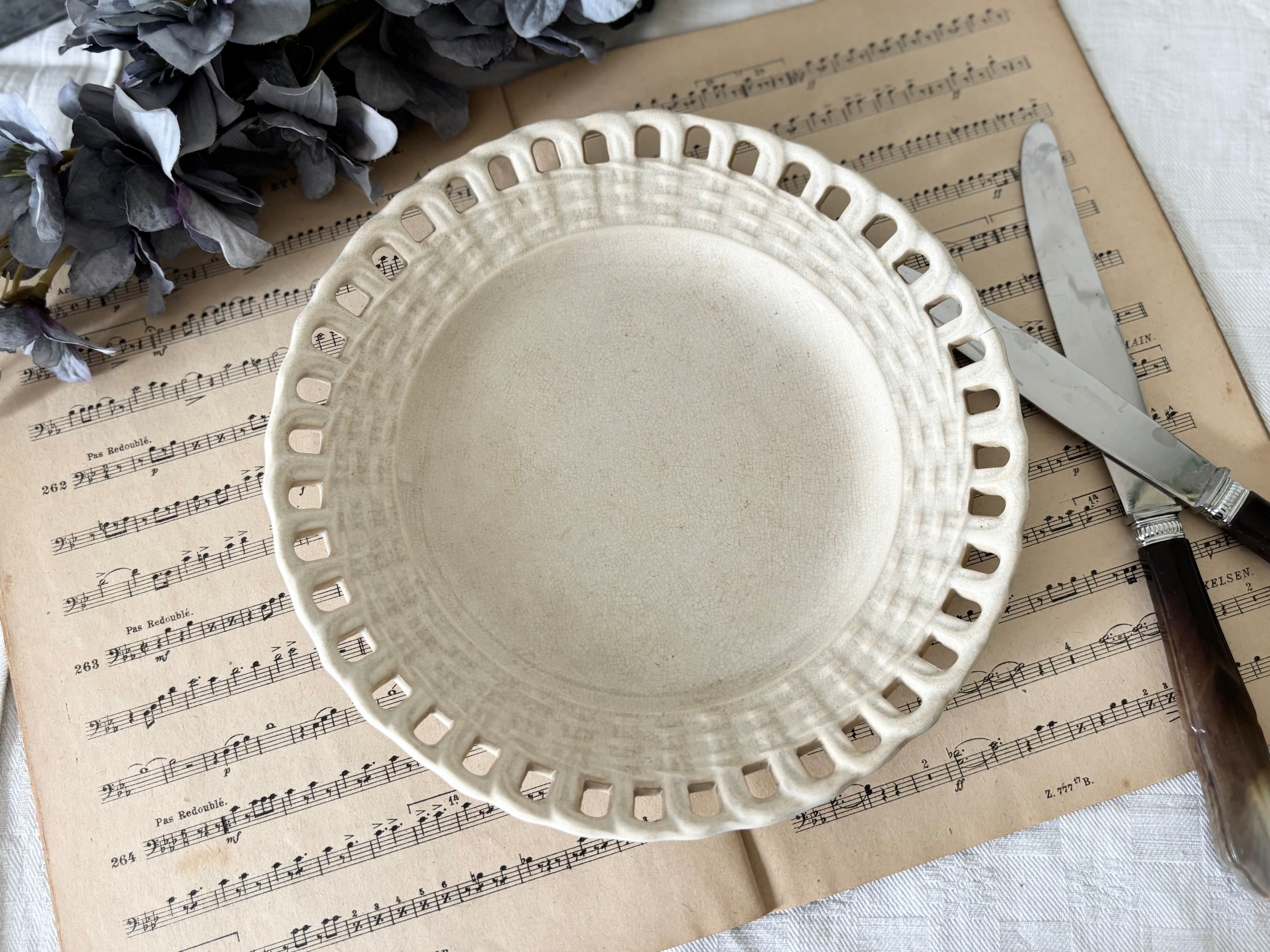 繊細な透かし模様が美しい、19世紀後半フランス・Creil et Montereau(クレイユ・エ・モントロー)製のデザートプレートサイズのパニエプレートです。