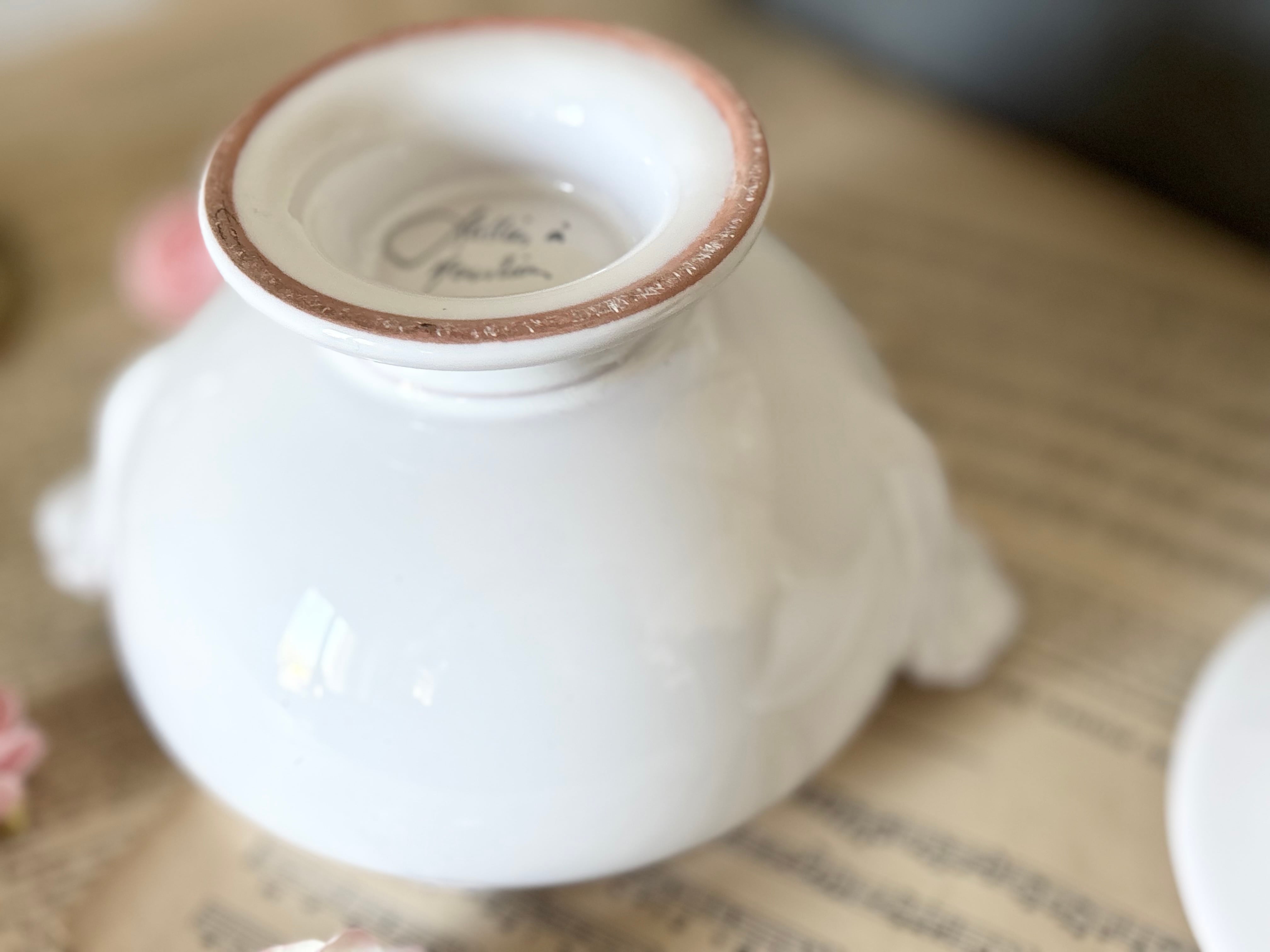 南フランス・ムスティエ産の、愛らしいボンボニエール/クッキージャー/小型スープチューリーンをご紹介します。独特のフォルムが魅力です。