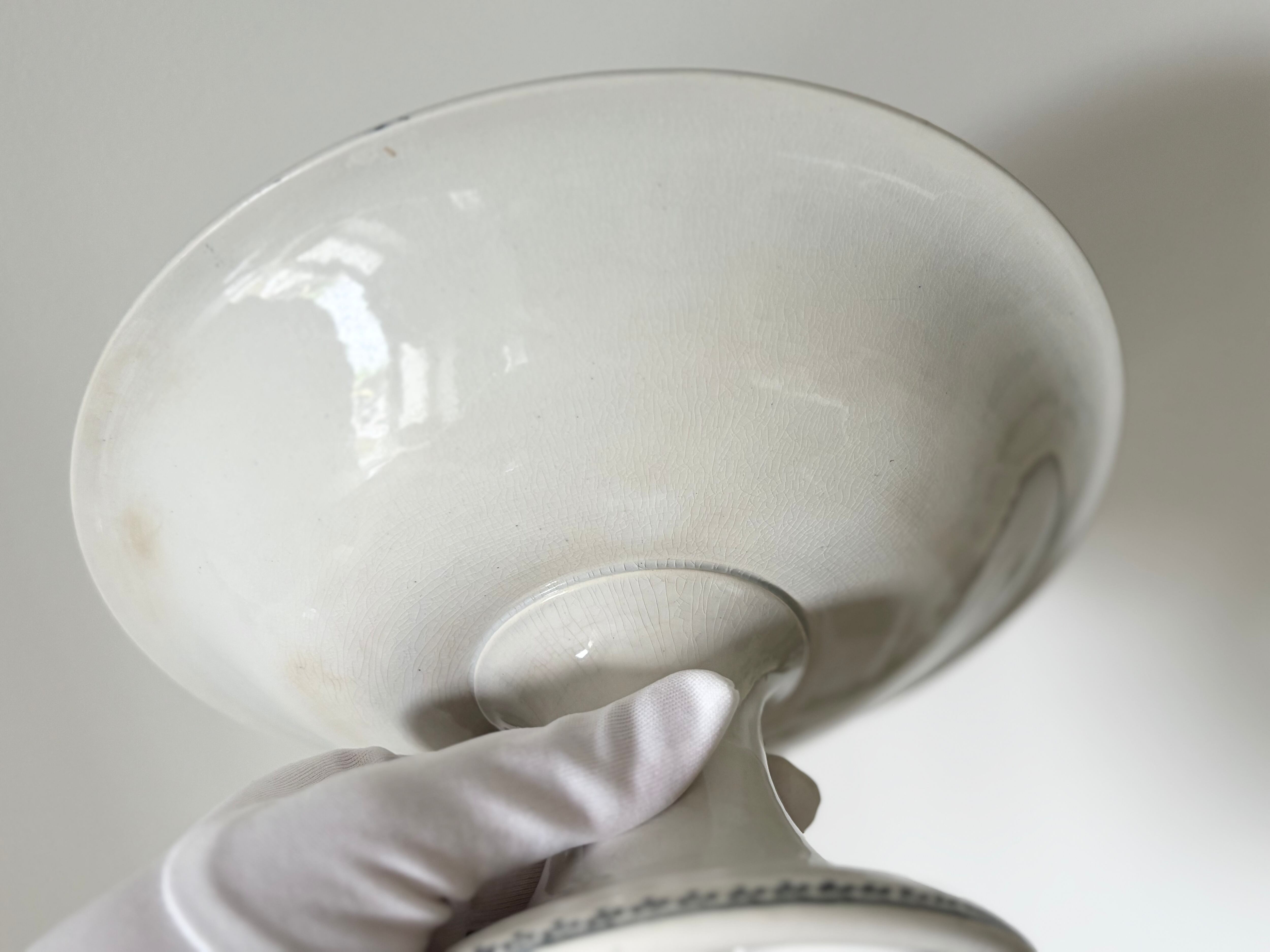 • 表面には経年によるクレイジングが美しくひろがり、(特に光を当てたときに目立ちます)僅かなカトラリー跡がございます。これは古い陶器に見られる自然な現象であり、時代を経た風合いとしてご理解いただければ幸いです。