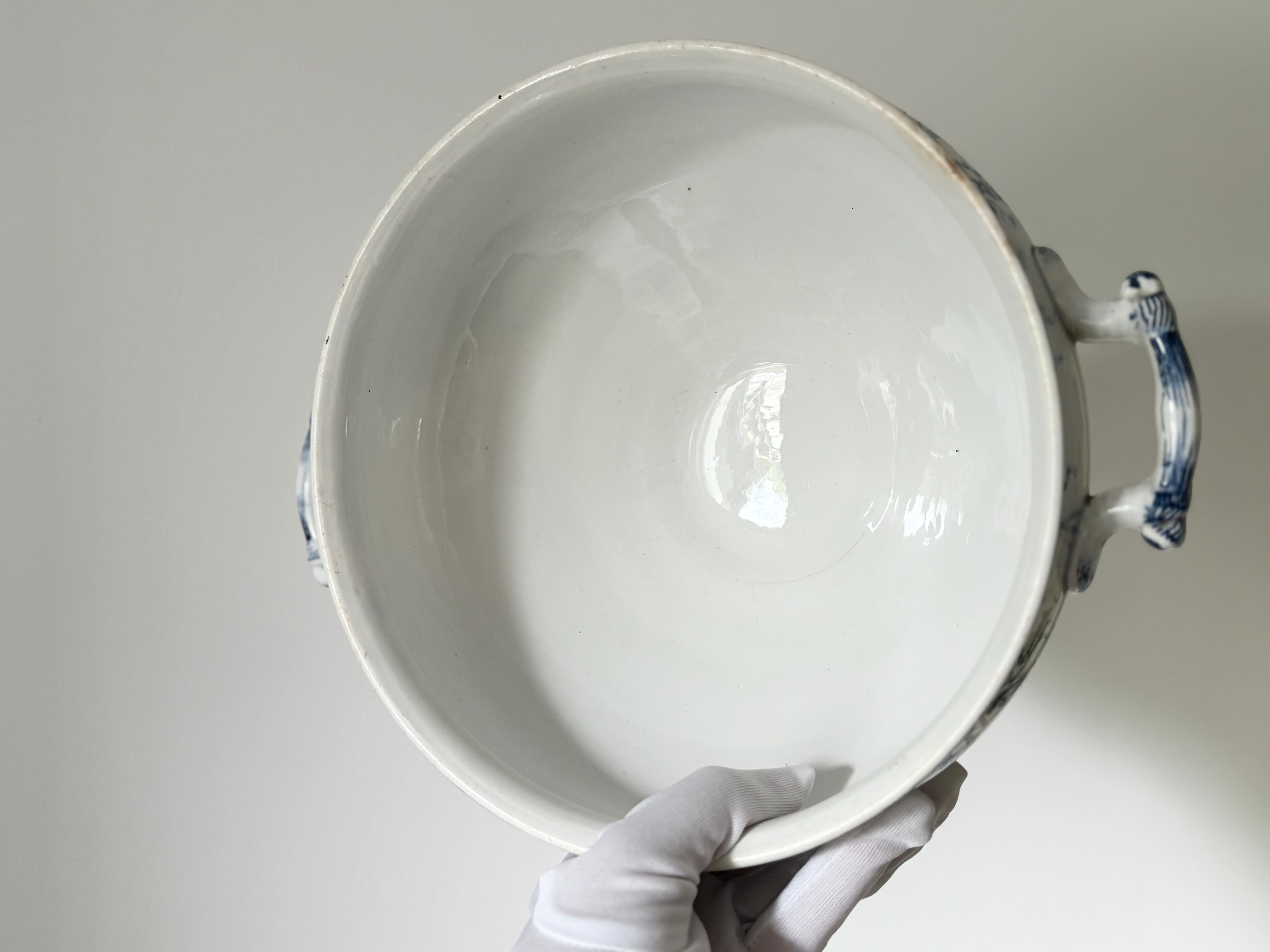 ハンドル部分は、この時代のU&Cサルグミンヌシリーズ特有の繊細なブルーのラインで彩られ、丸みのあるエッジが彫り込まれています。柔らかく軽やかな小花の花冠の雰囲気を引き締め、スーピエール全体に凛とした印象を与えています。