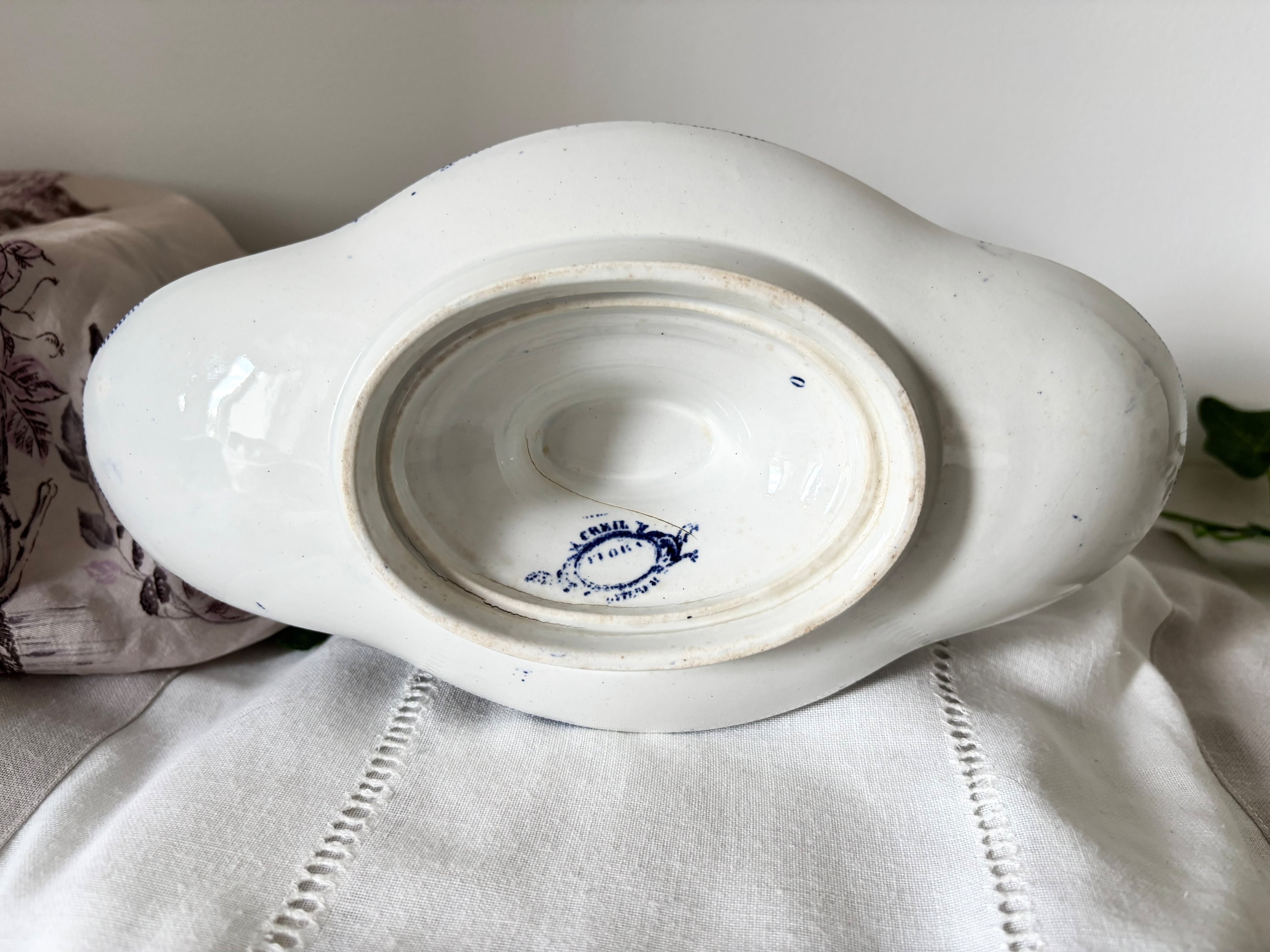 19世紀末〜20世紀初頭にフランスで製造された、Creil et Montereau(クレイユ・エ・モントロー)の「Flore(フロール)」シリーズより、希少なソースポット(グレイヴィーボート)を出品いたします。