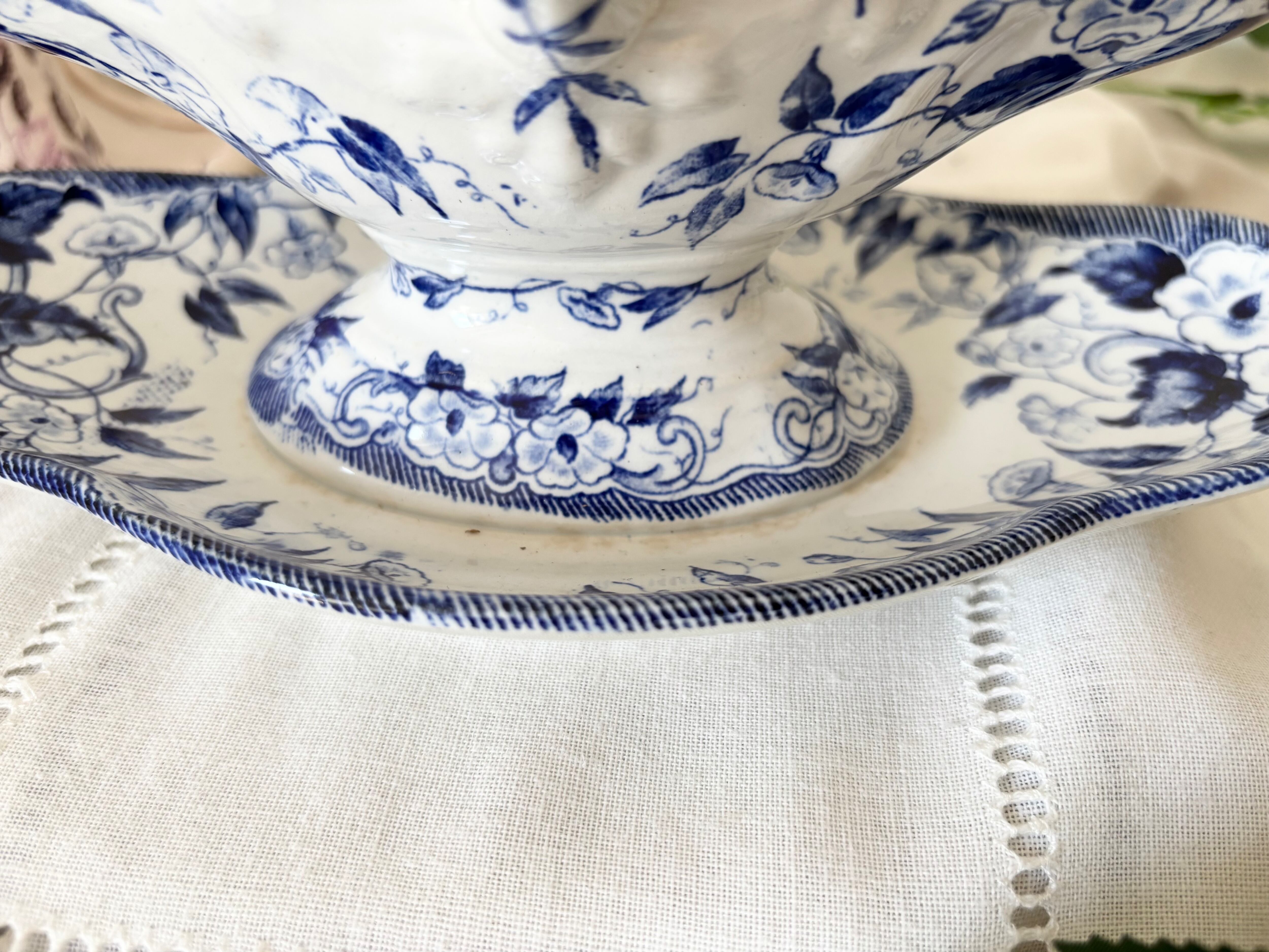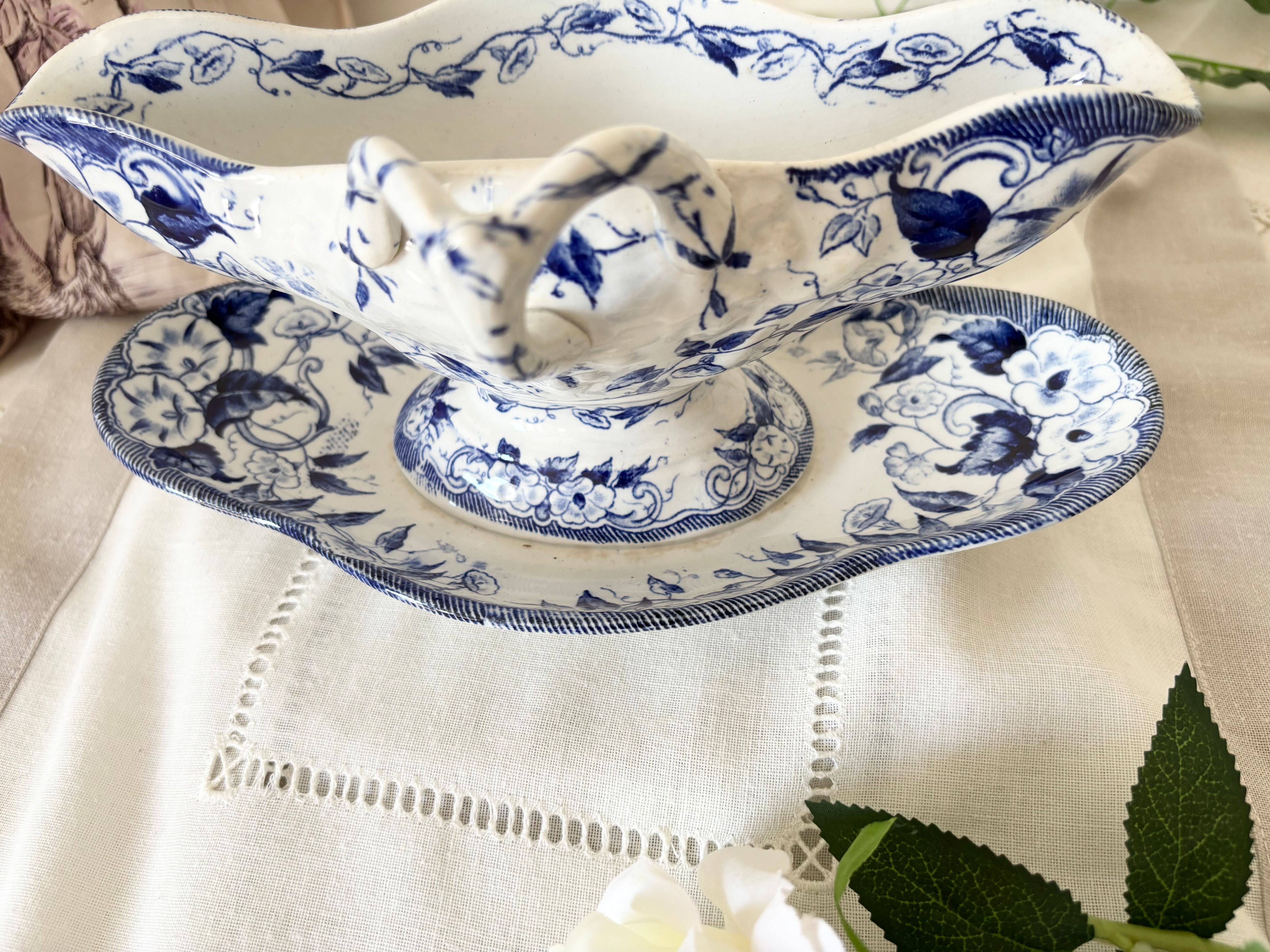 Creil et Montereau / Flore / gravy boat / saucier / blue / antique / France / クレイユエモントロー / ソーシエール / 青