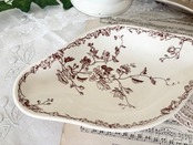 こちらは1940〜1950年代に製造されたと推定されるヴィンテージアイテムで、温かみのあるブラウンのトーンで草花が描かれた優雅な一枚です。深さがあるため、ソースを含む前菜や副菜の盛り付けにも適しています。