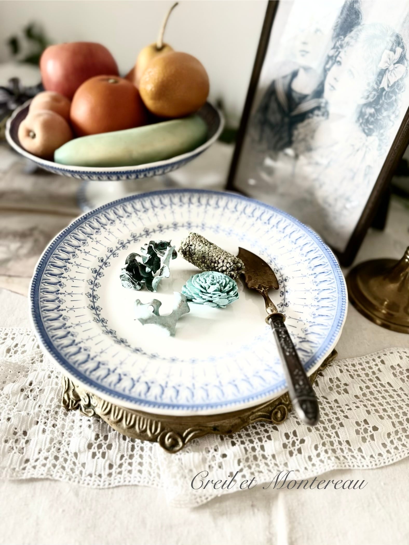 Creil et Montereau / B&C ie C&M / Flora rocaille / 低いコンポティエ / Blue / クレイユモントロー / フランス / 19世紀 / アンティーク