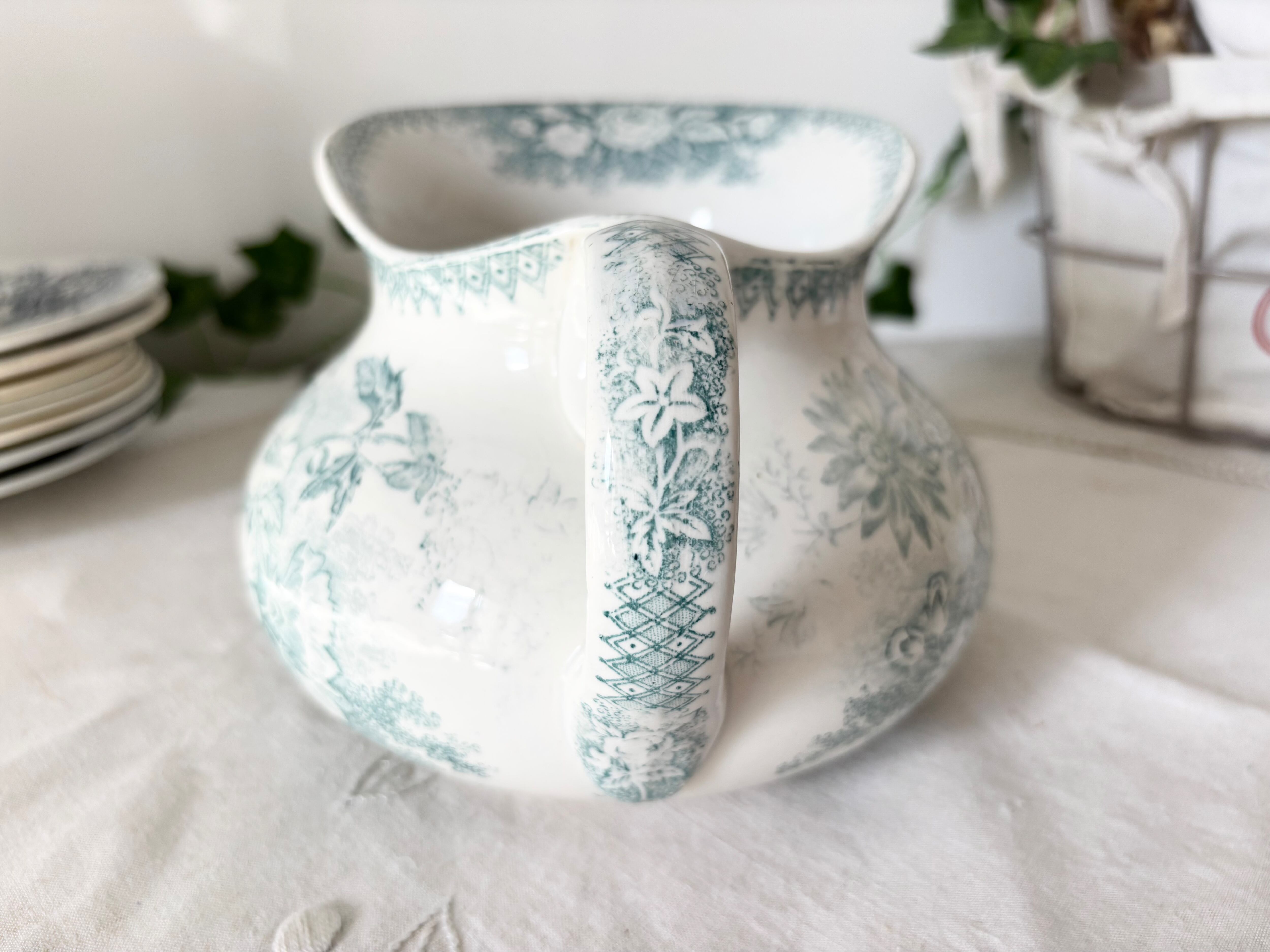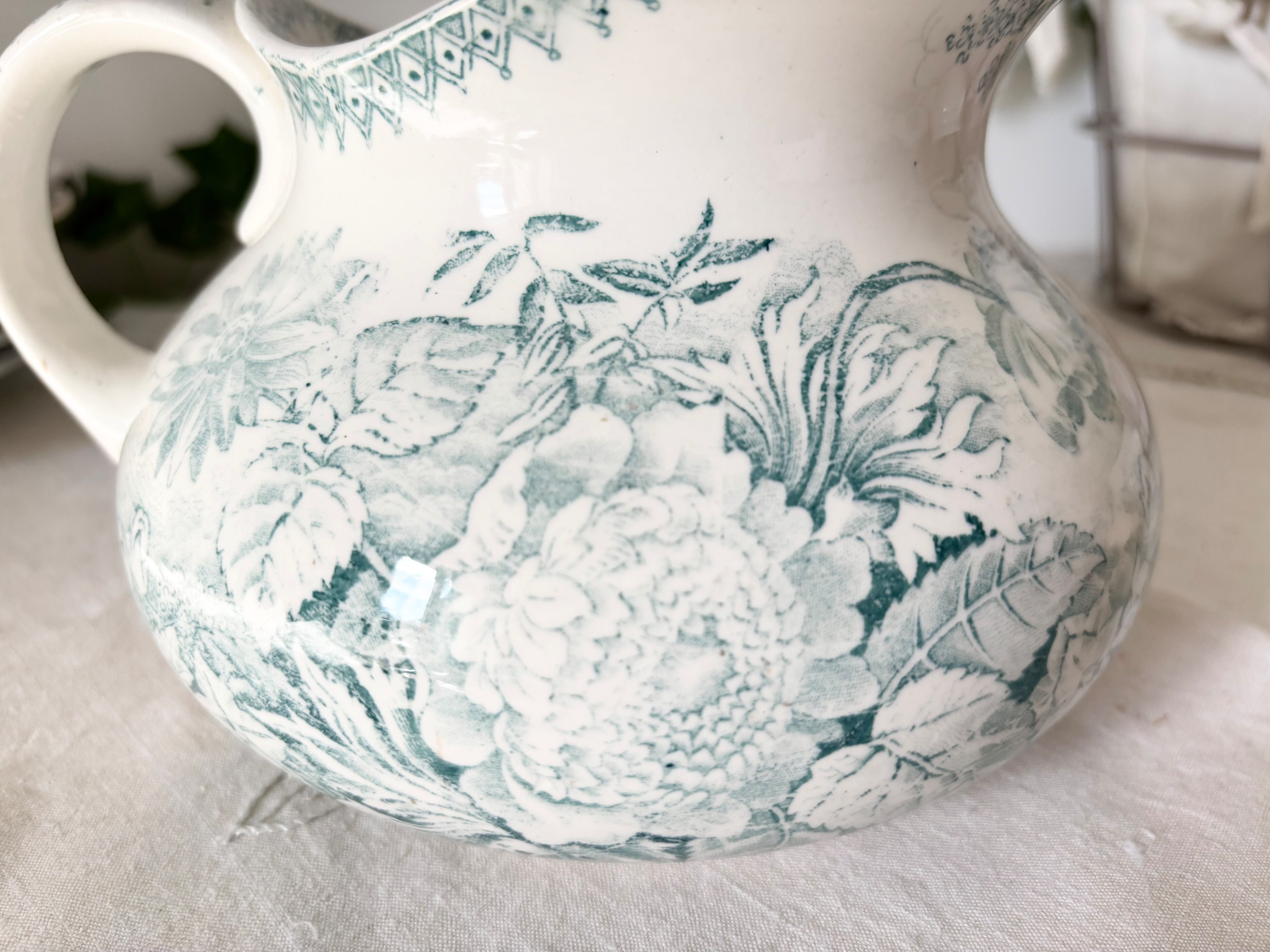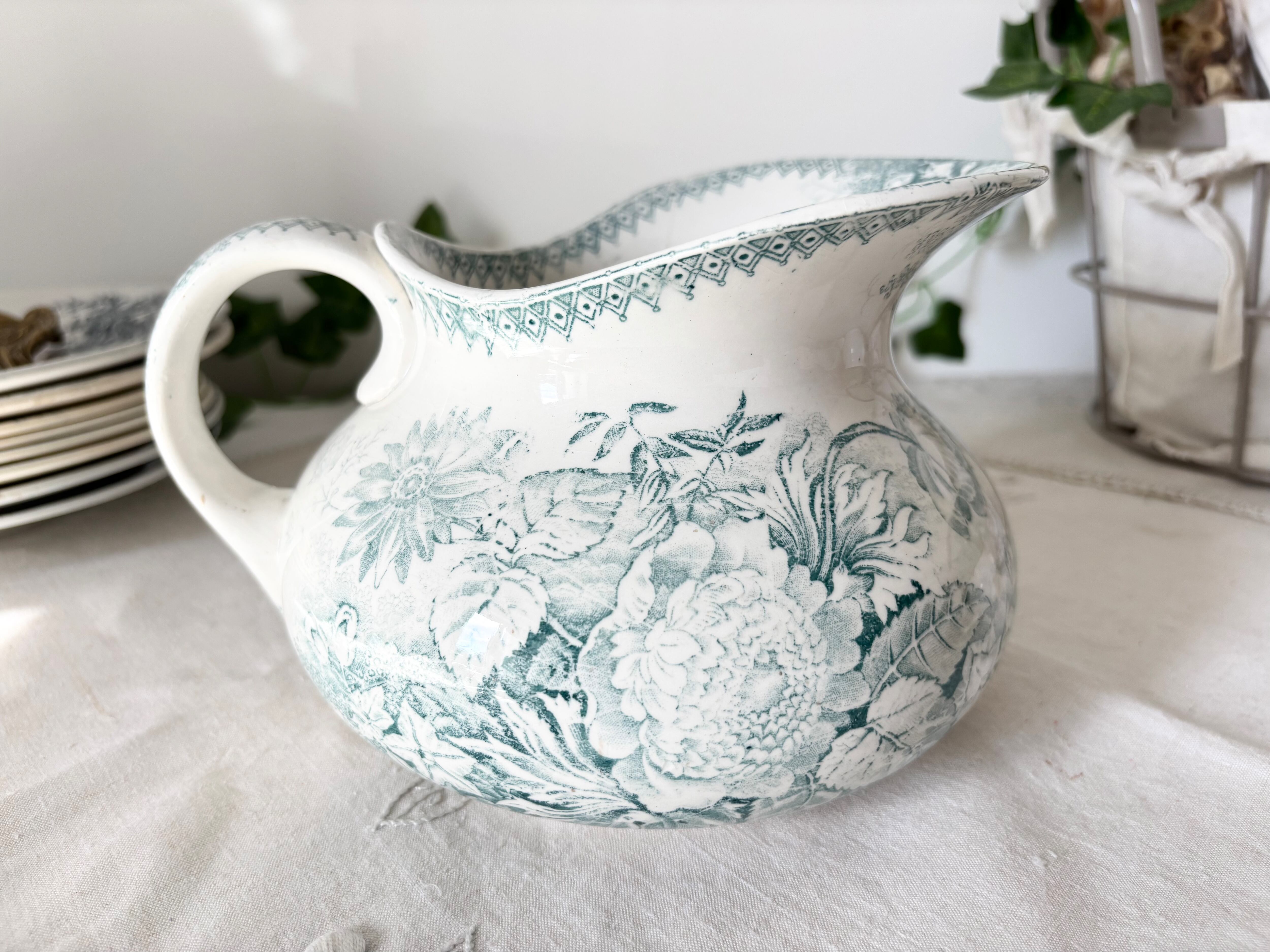 フレンチアンティークの U&CのJARDINIEREシリーズより、サルグミンヌの緑の水差しをご紹介いたします。