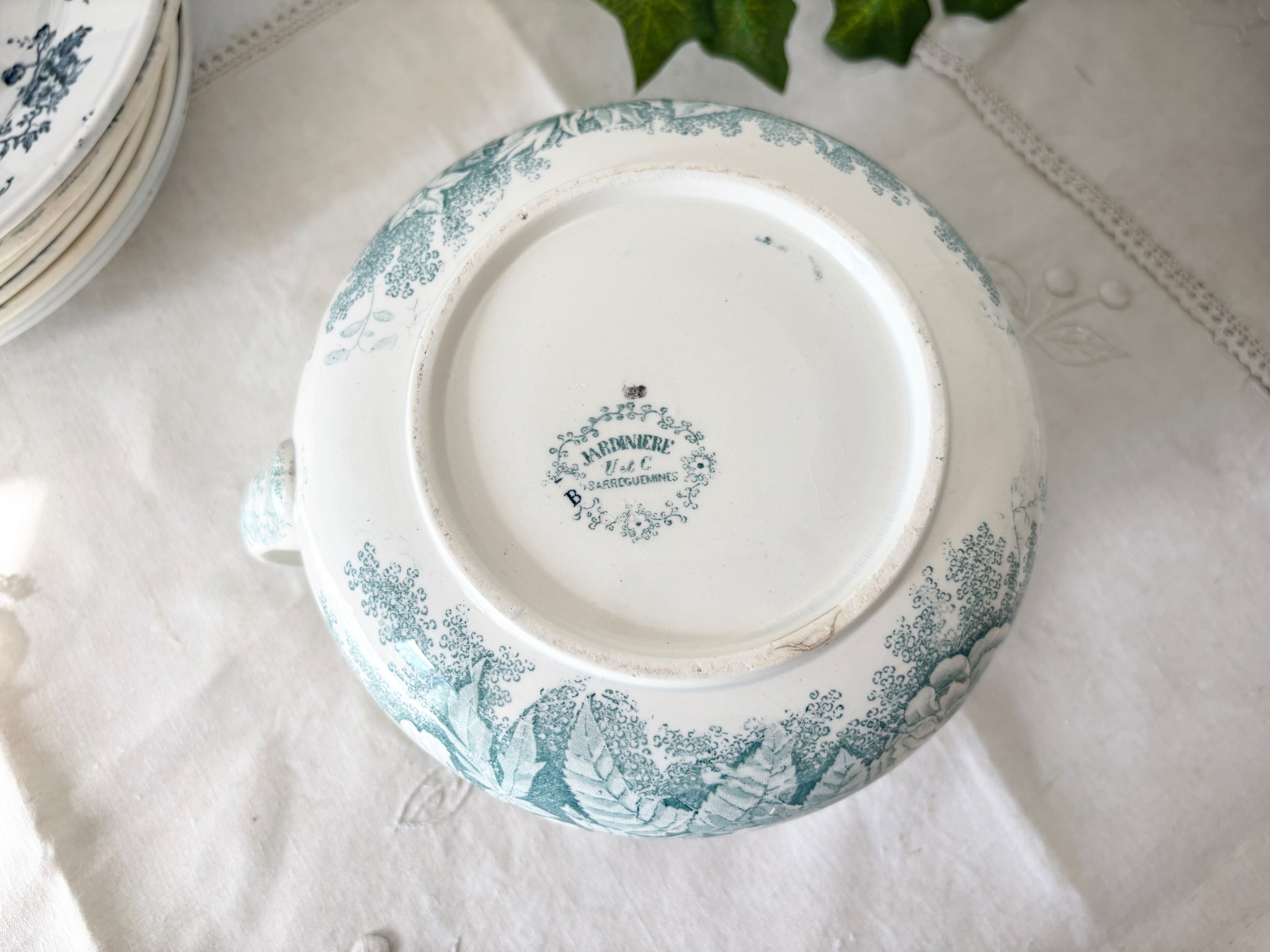 • 印字部分:底面の「U&C SARREGUEMINES JARDINIERE」バックスタンプに一部かすれが見られます。
