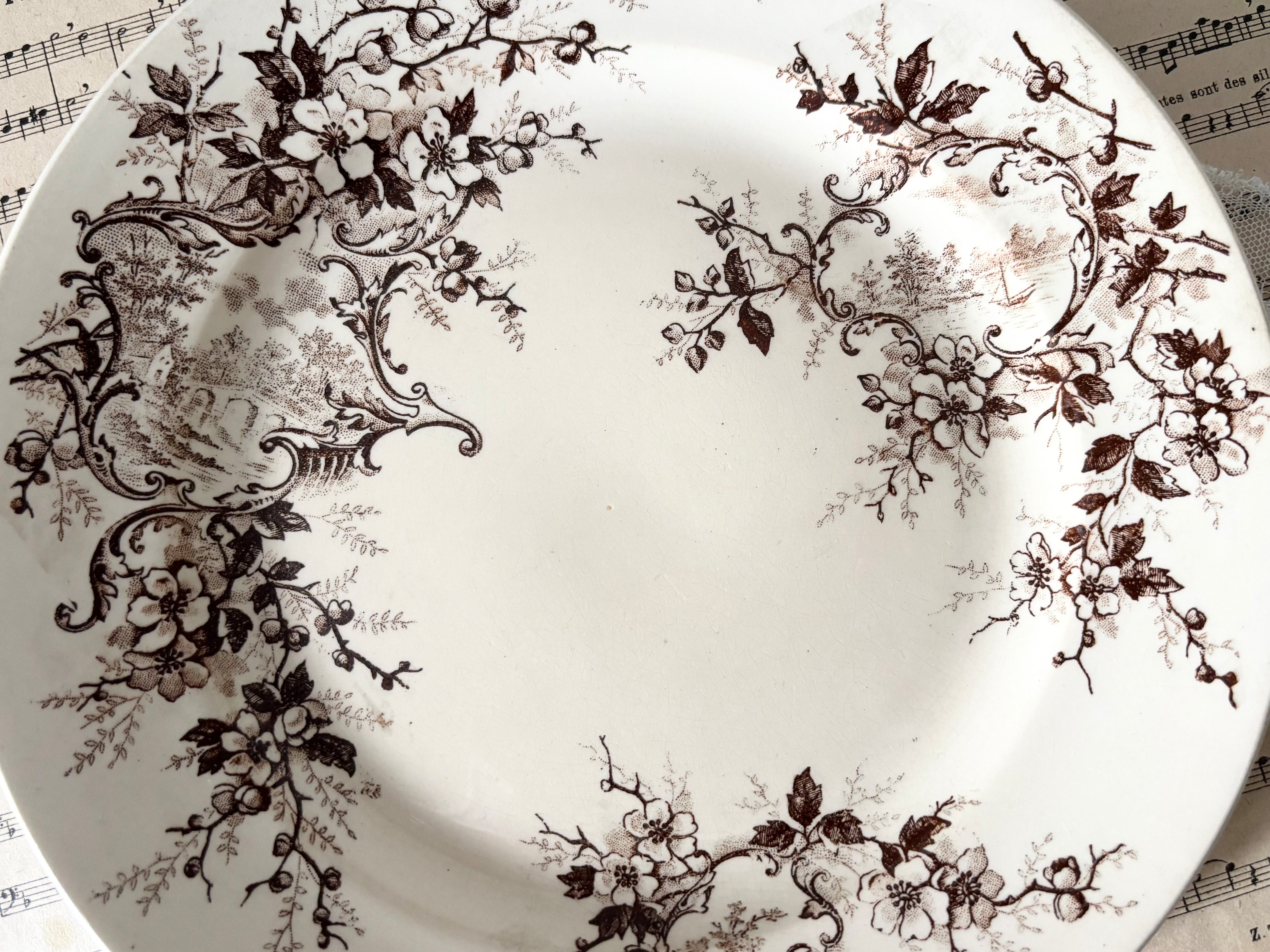 アンティークらしい落ち着いた風合いと繊細なブラウン転写が魅力的な一枚です。