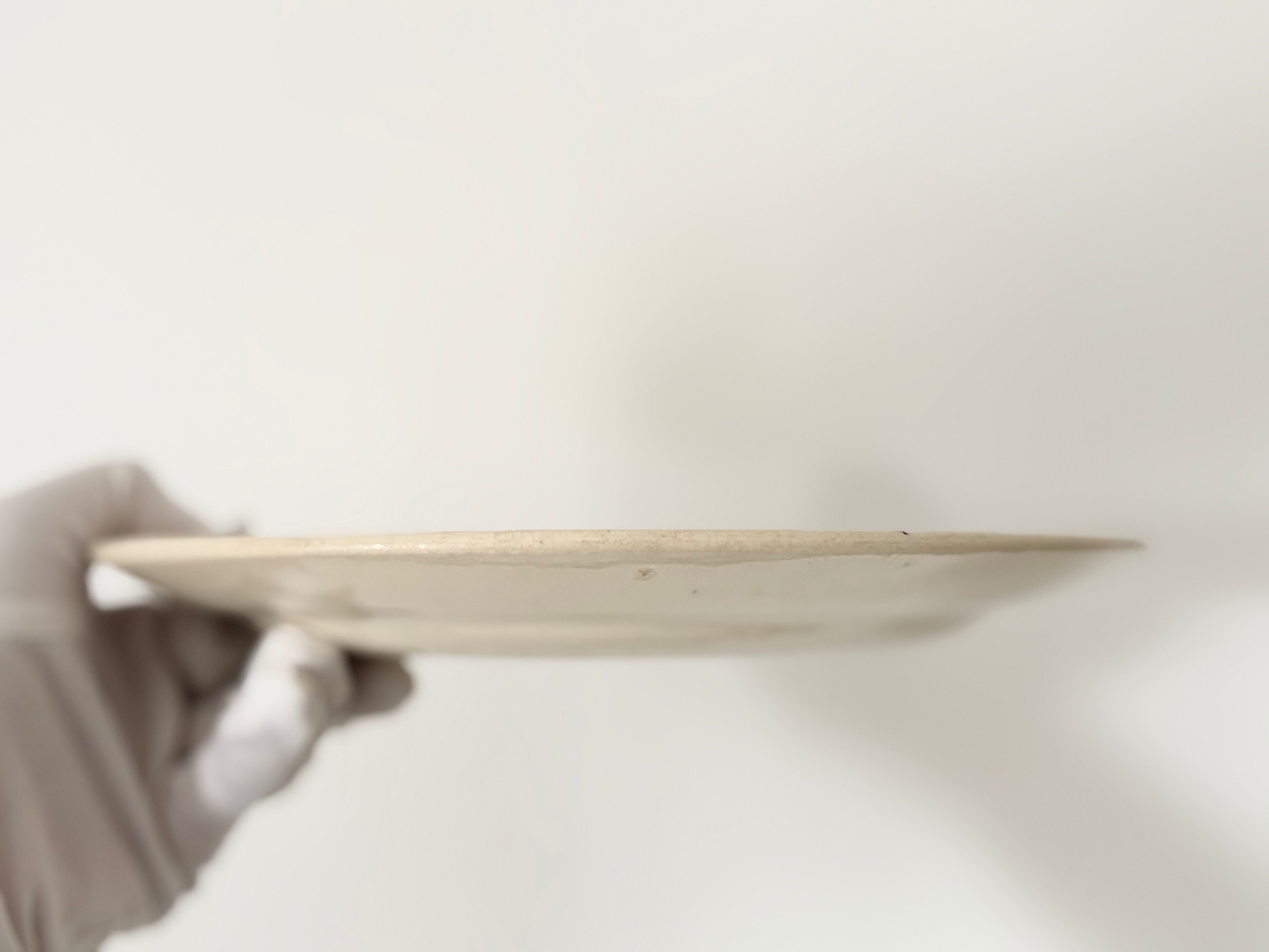 縁部分には小さな焼成時のムラや製造時の黒点、わずかな擦れがあります。