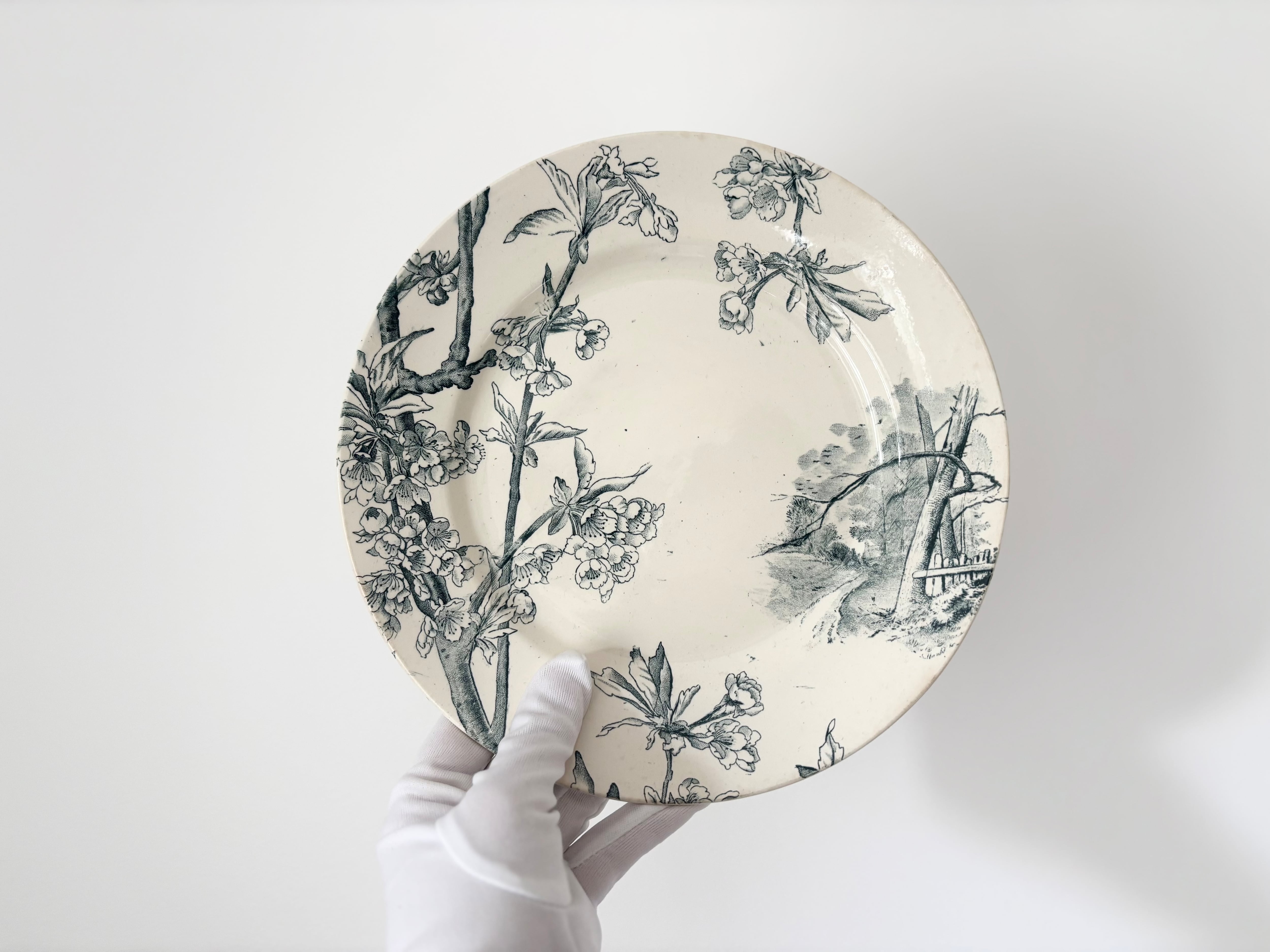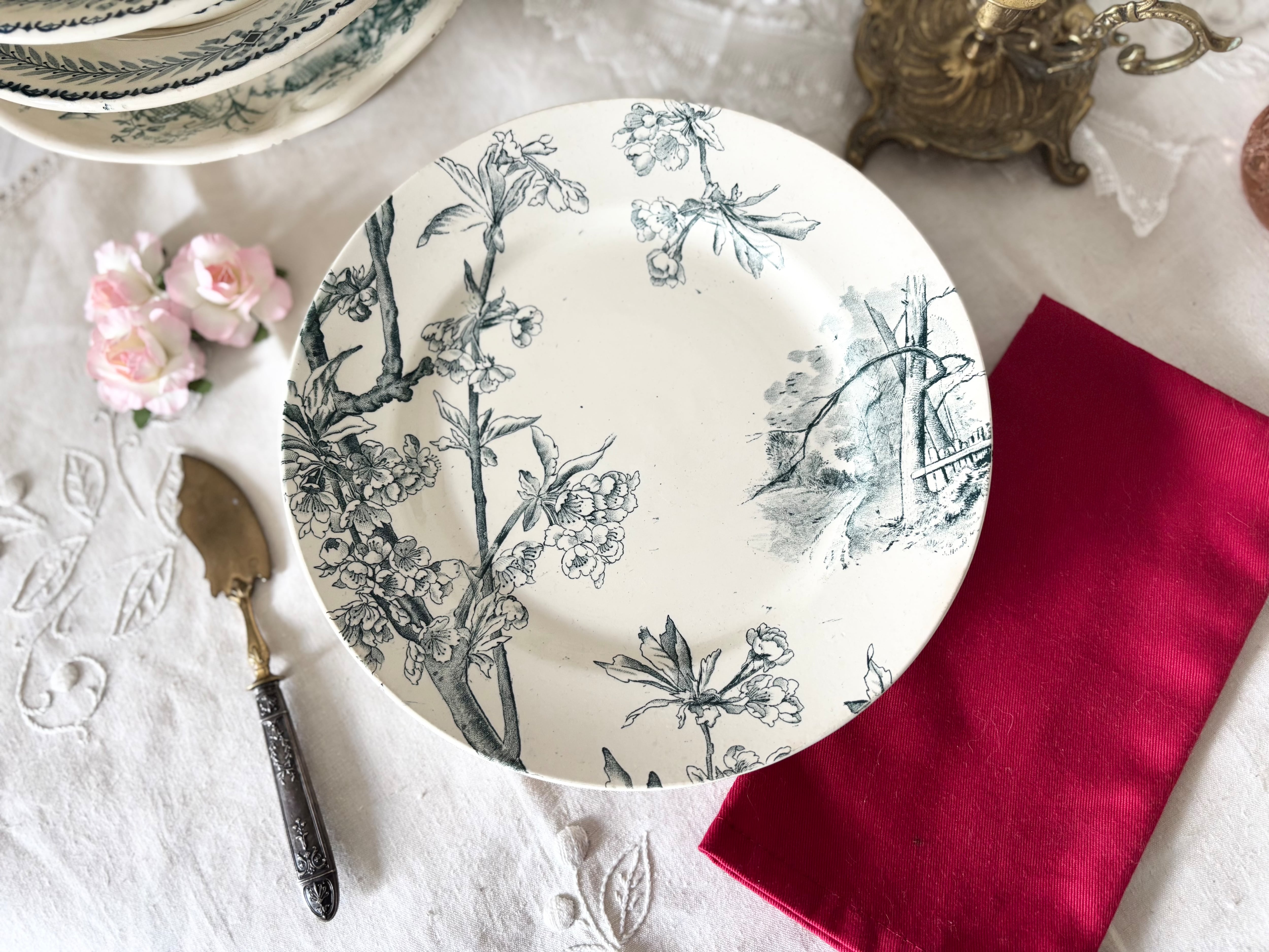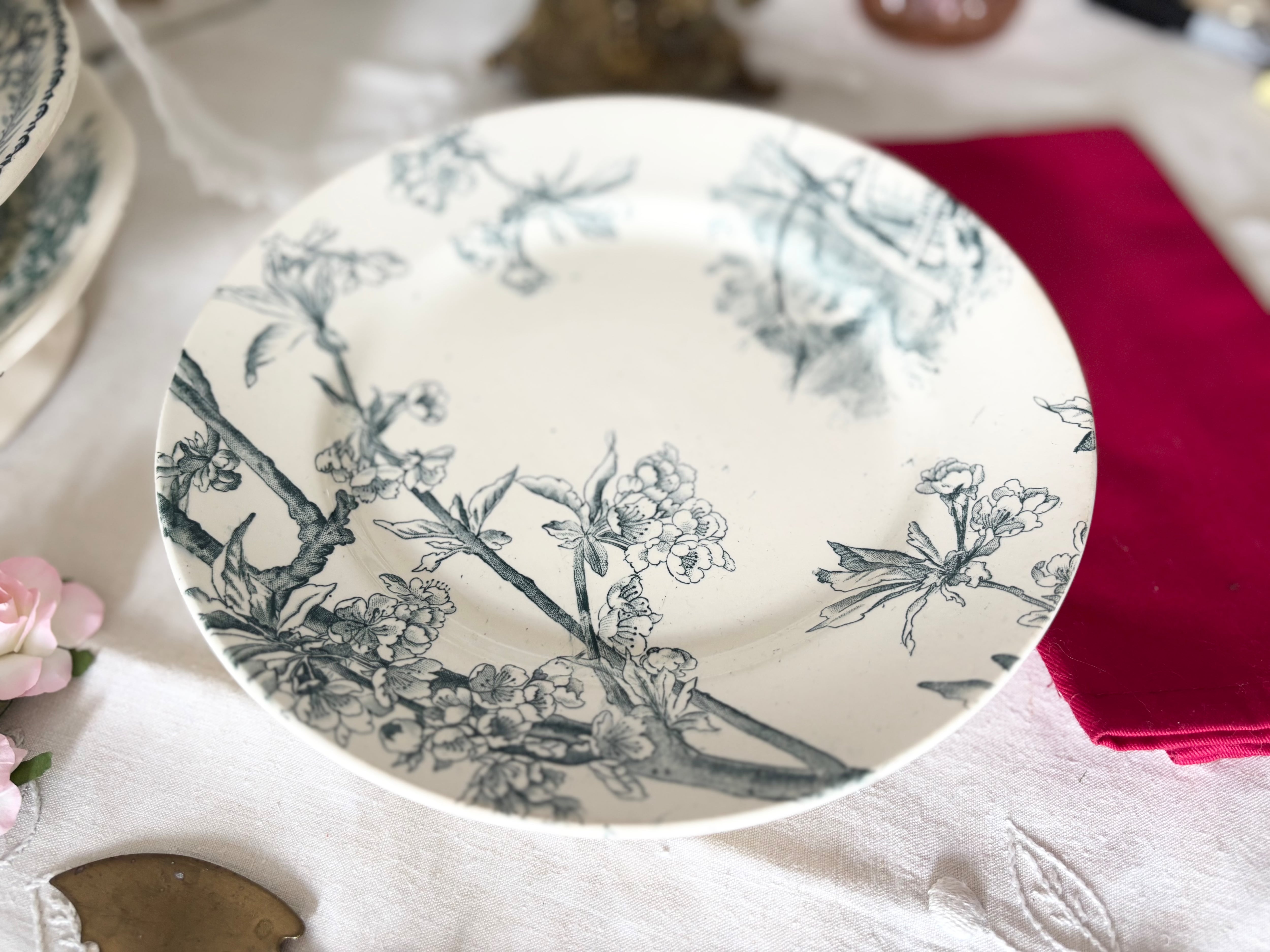 Creil et Montereau / コンポティエ / クレイユモントロー / テールドフェール / Service Cerisier / 桜 / グリーン / 絵皿