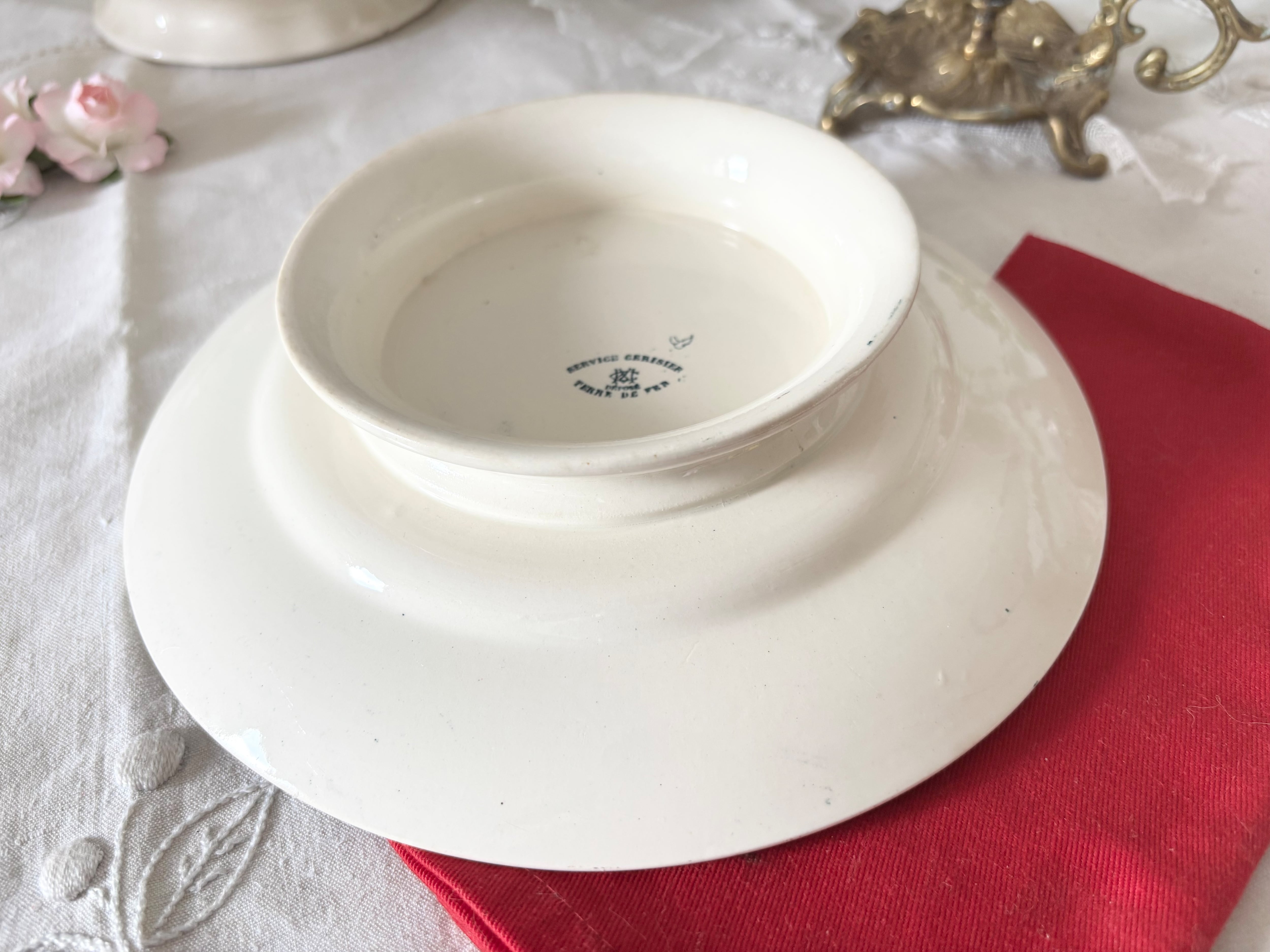 19世紀末のフランス、Creil et MontereauのCERISIER(桜)シリーズより、グリーンのコンポティエをご紹介いたします。