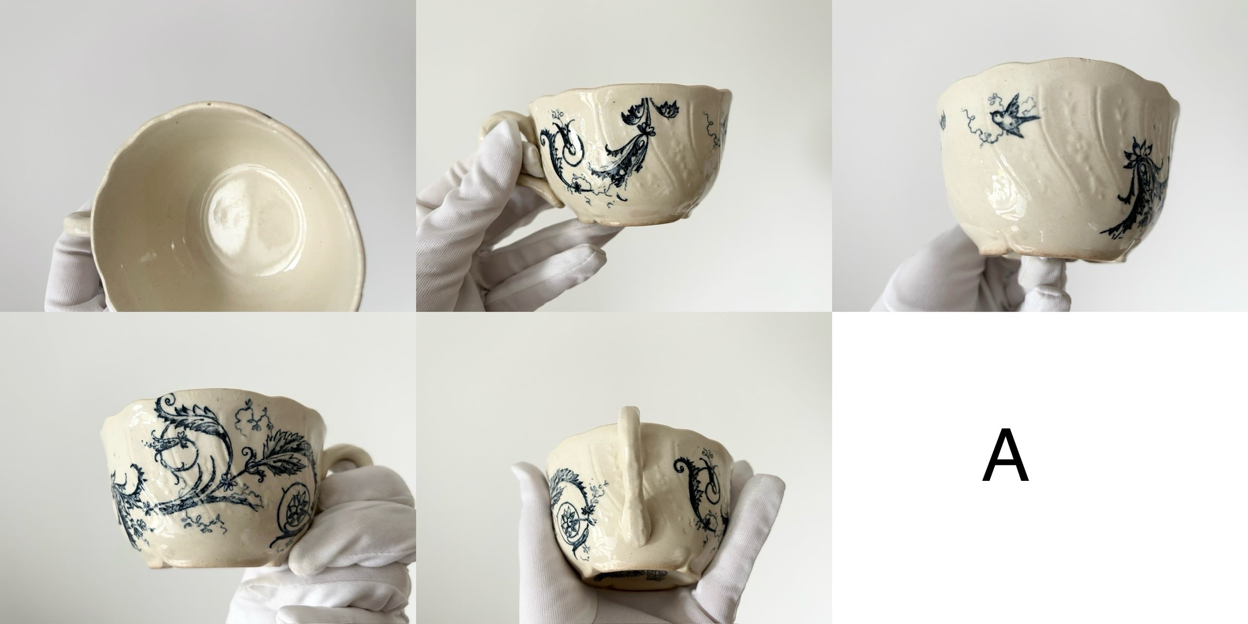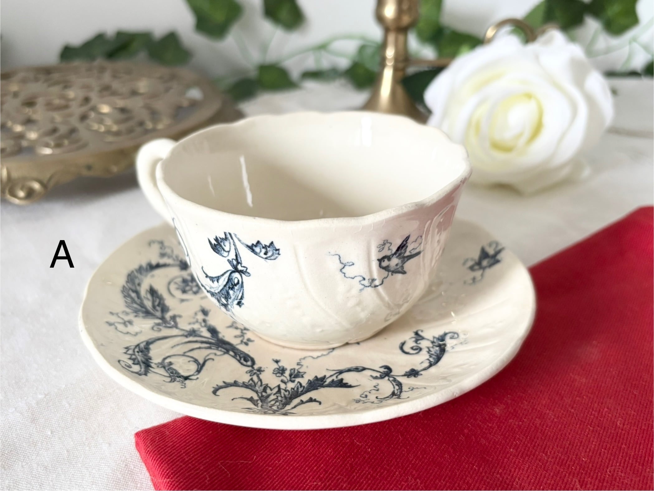 • カップと同じく、繊細なブルー転写による「Rinceaux」文様。