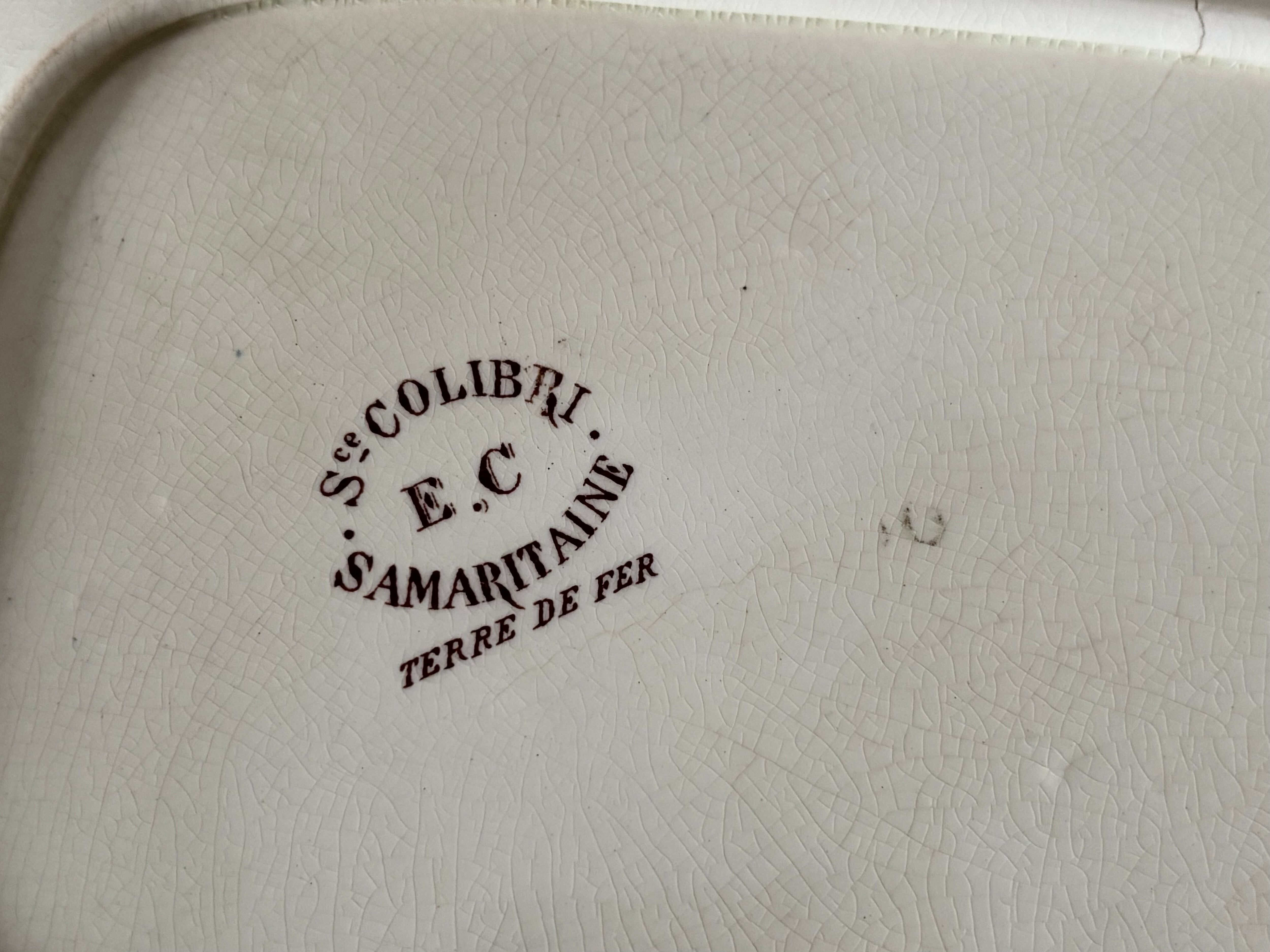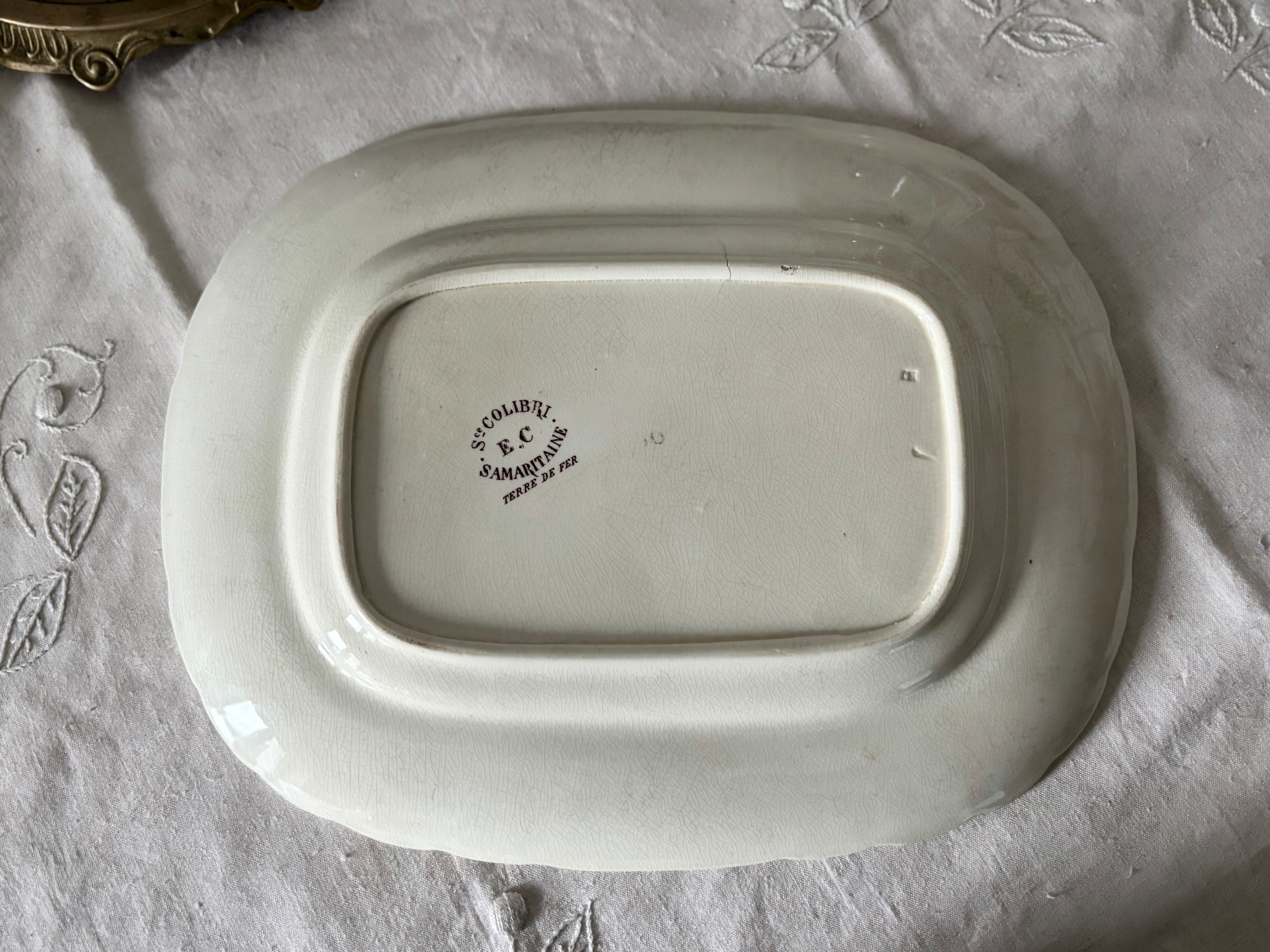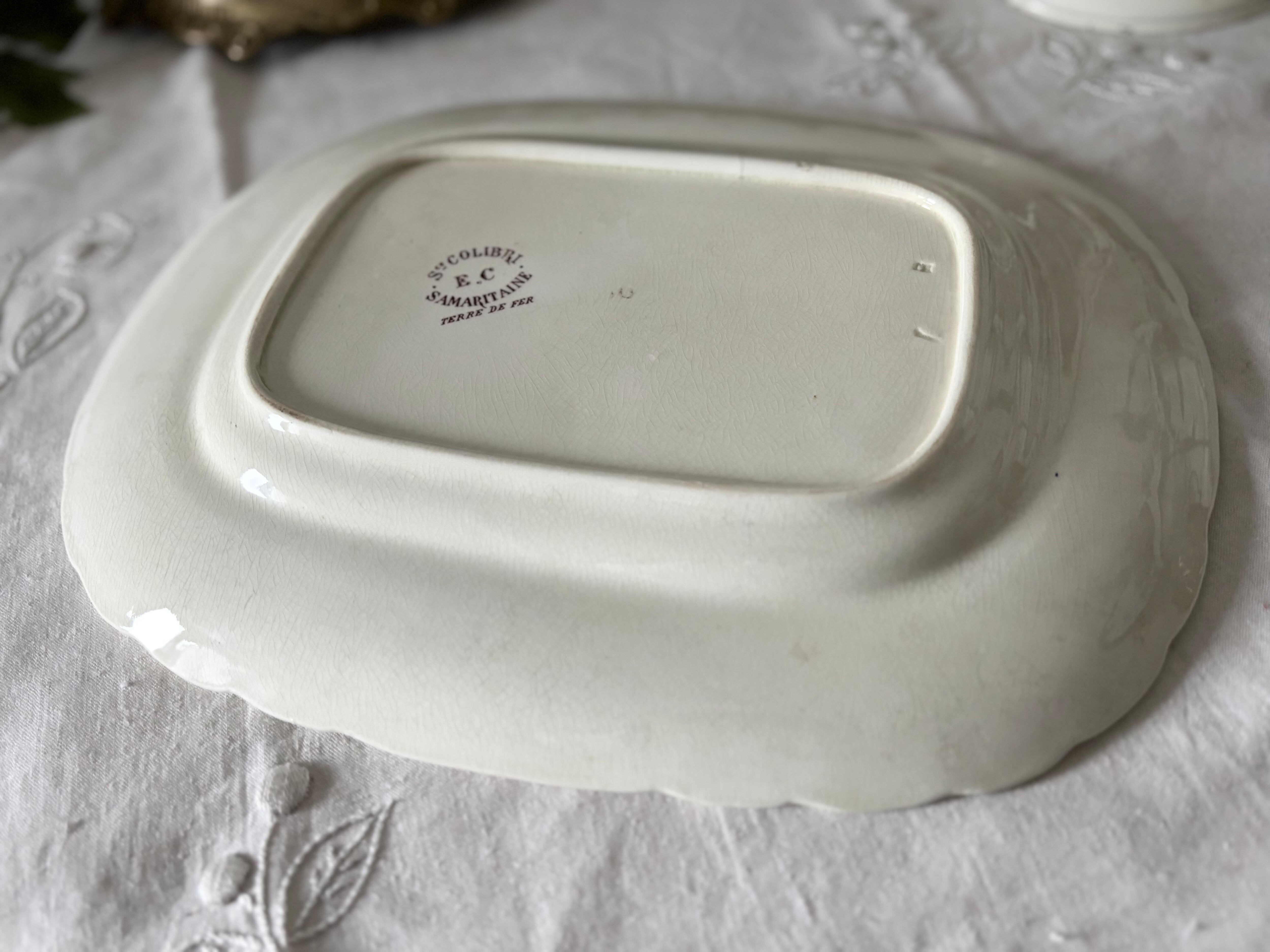 フランス、Samartain、Société COLIBRIより、テールドフェール窯のオーバルプレート。