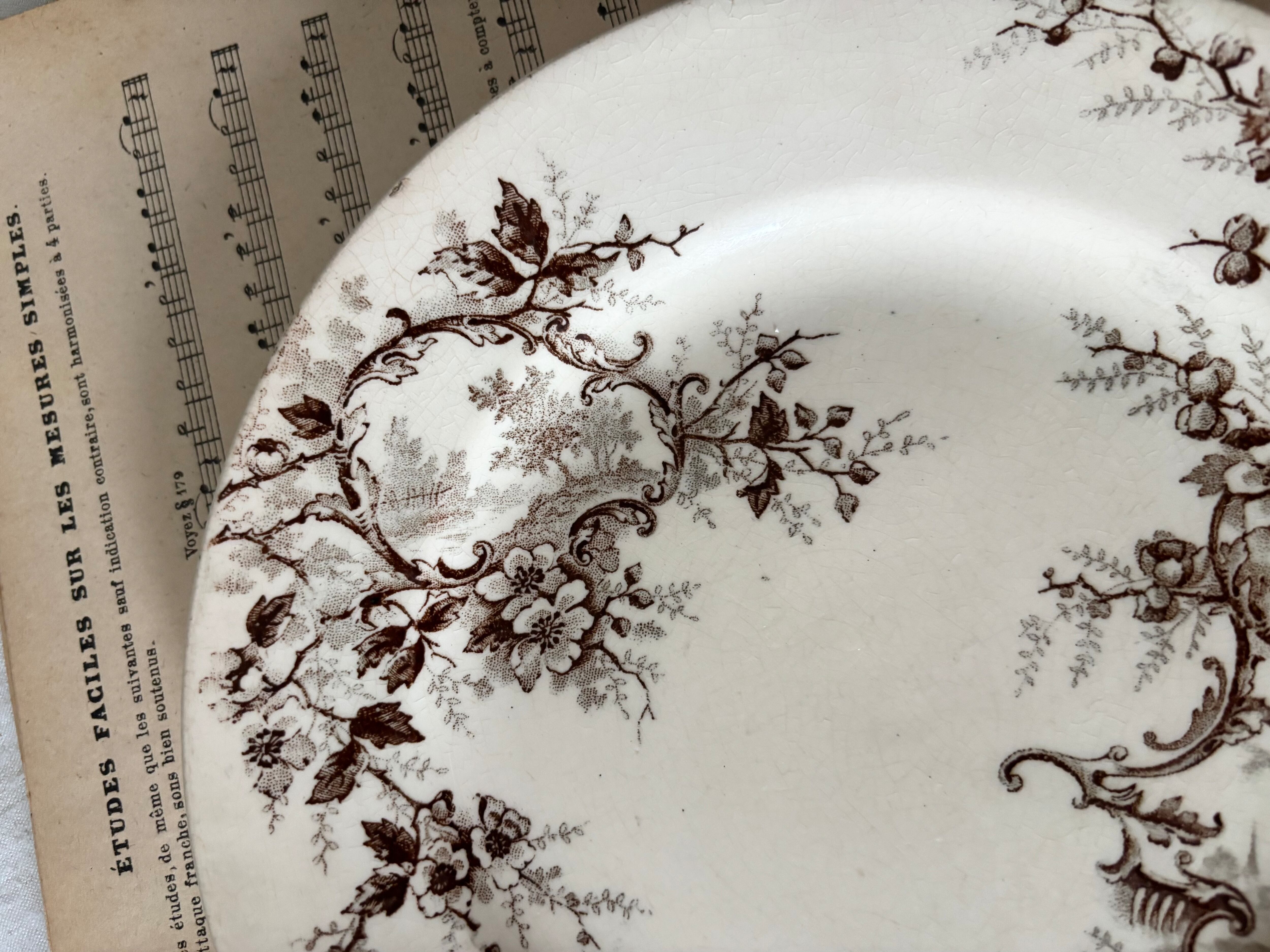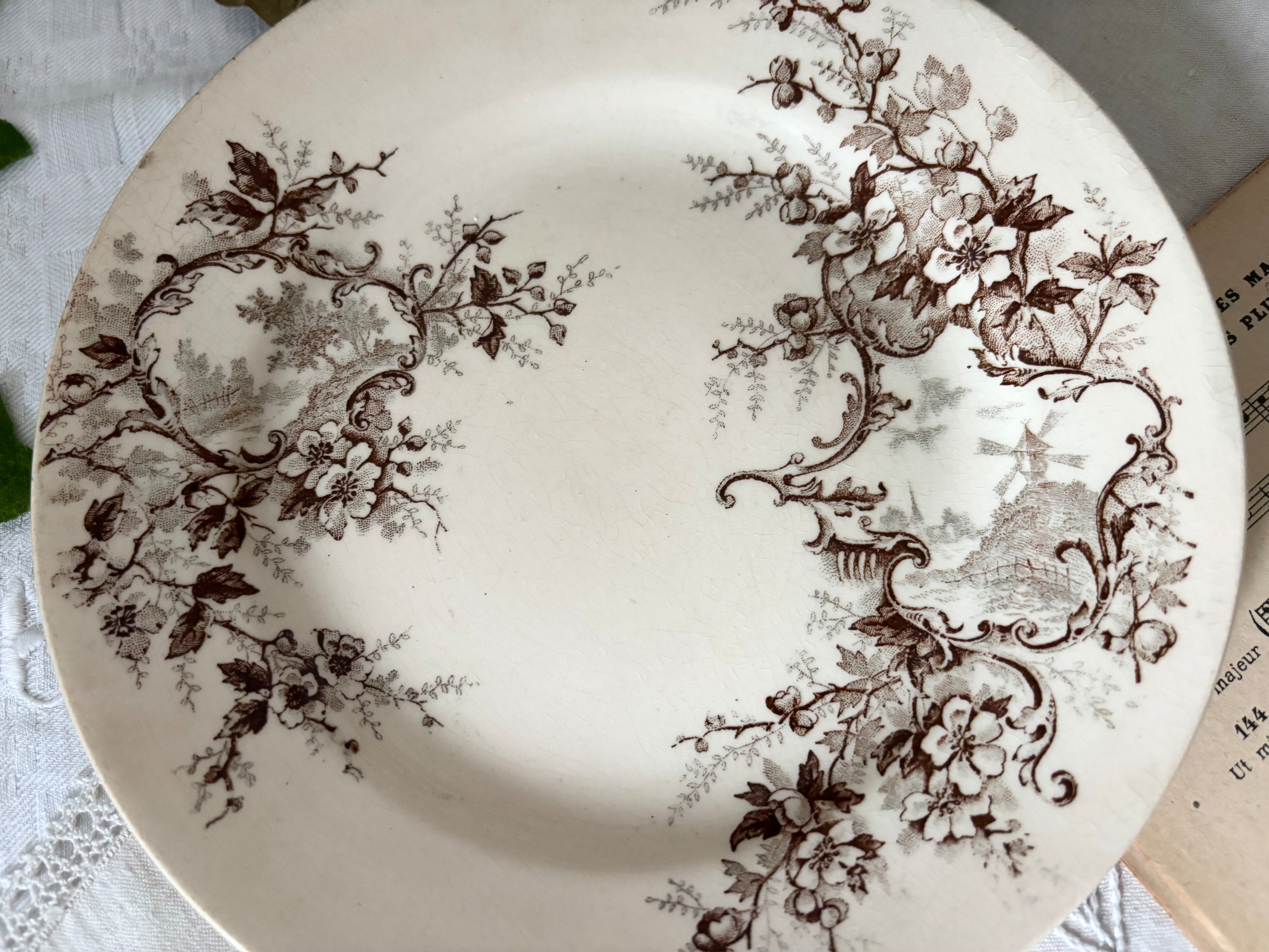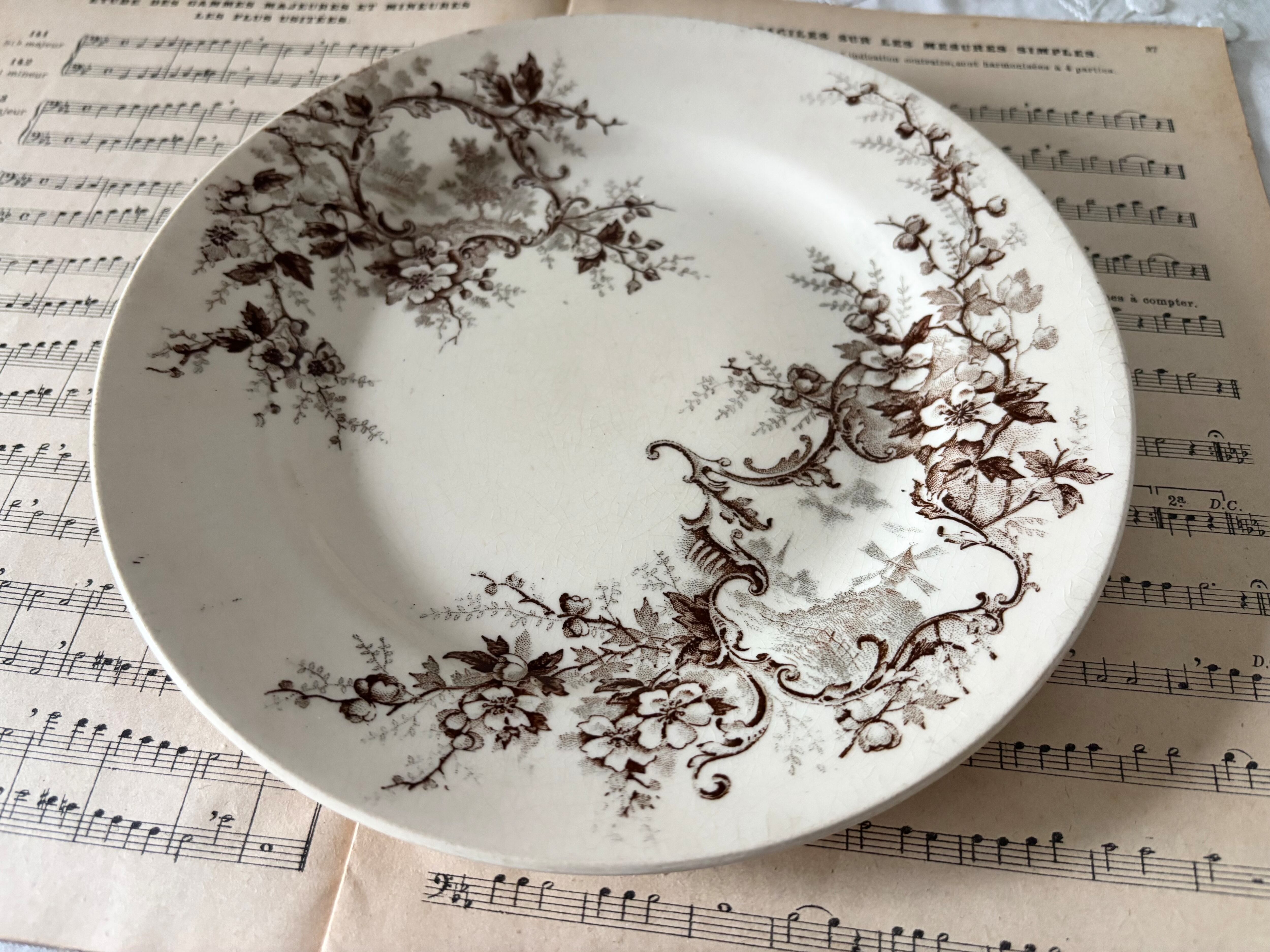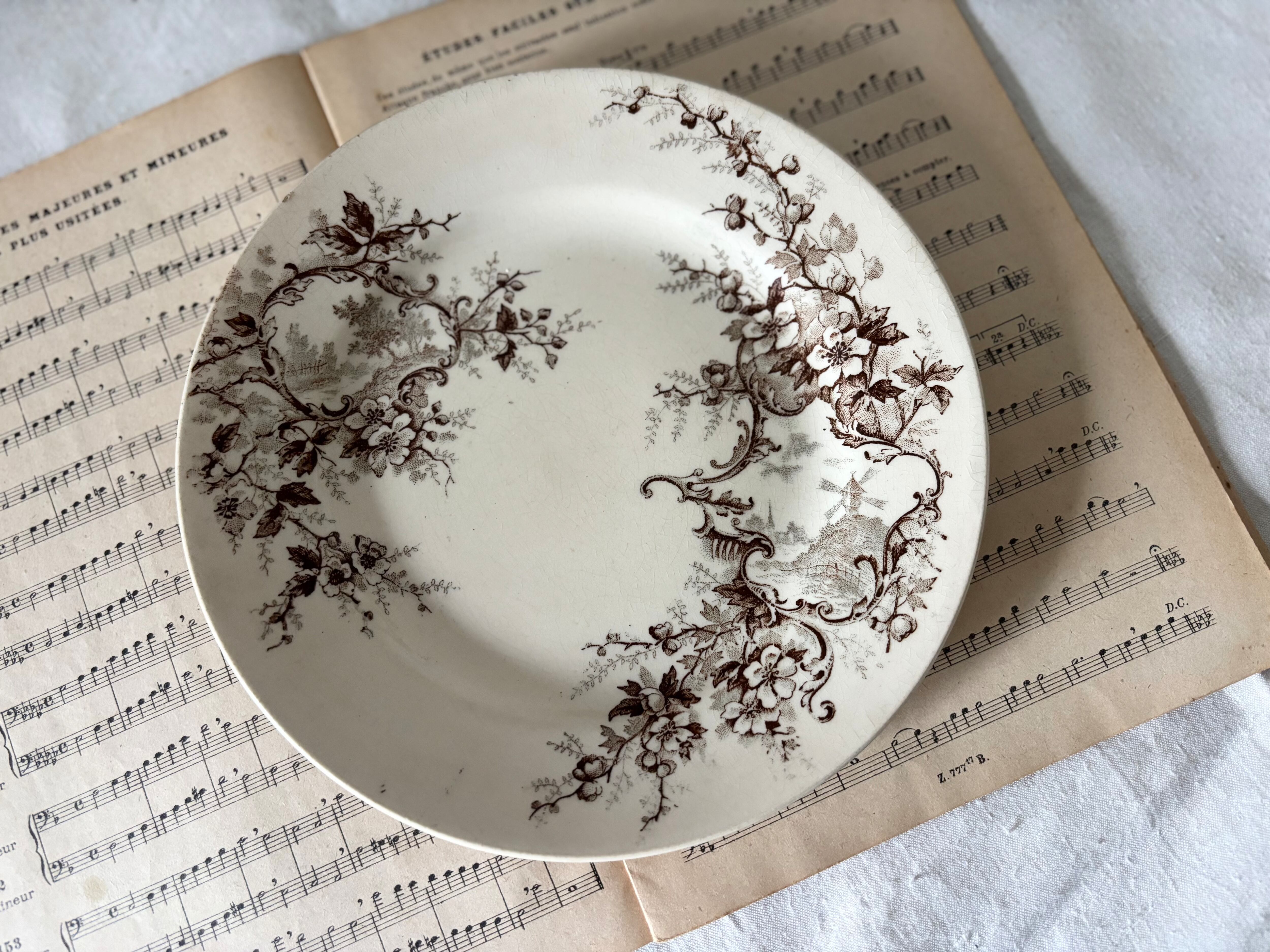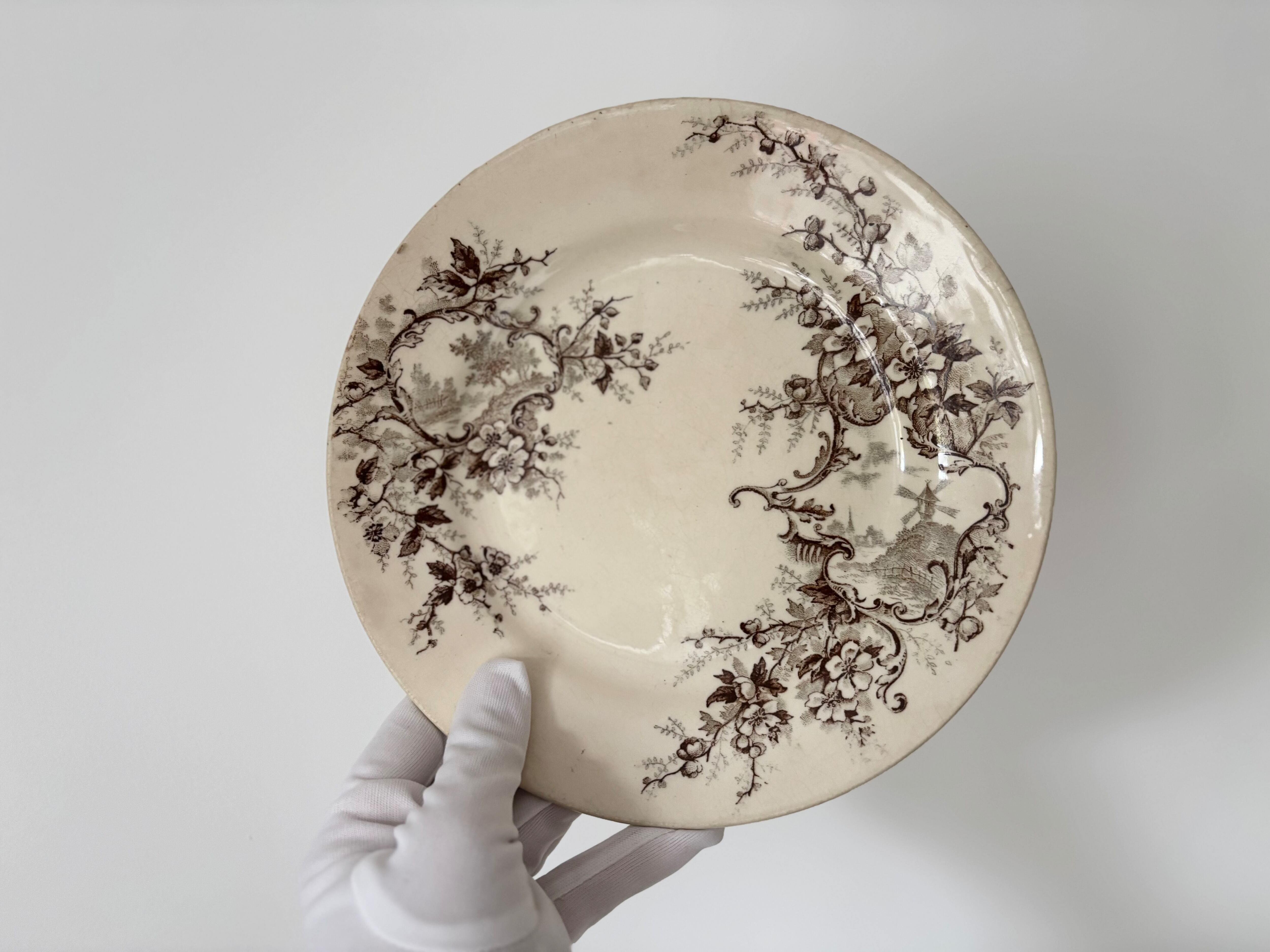 21cm デザートプレート(風車) / H Boulenger &Cie , Choisy- le-roi / Terre de fer / Pompadour / France / Antique / vintage / ショワジールロワ / ブラウン/ フランス/ アンティーク