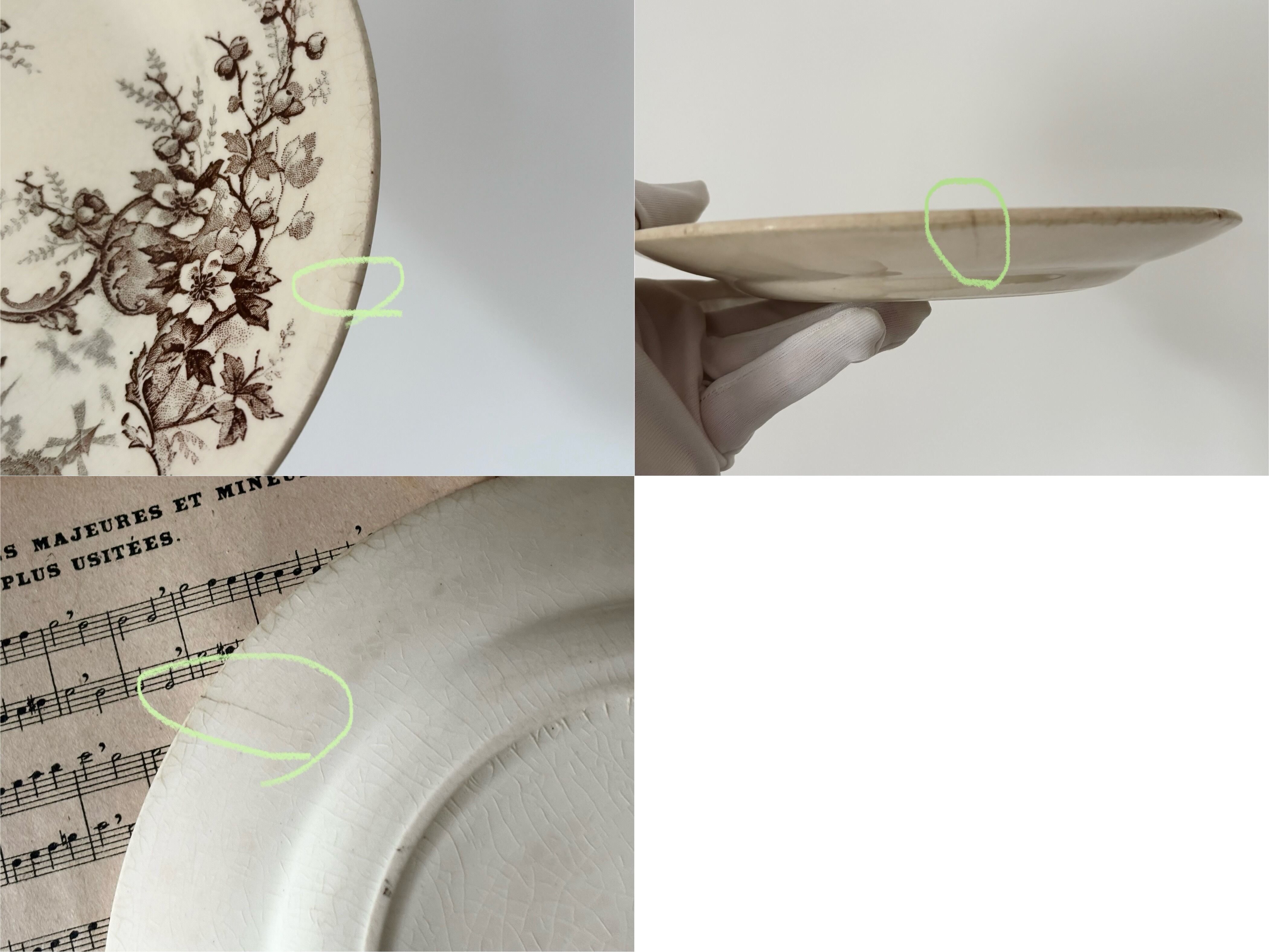 表面の見込み部分に小さな変色を伴う擦れ跡があり、リムの周囲にもごく淡い変色が見られます。