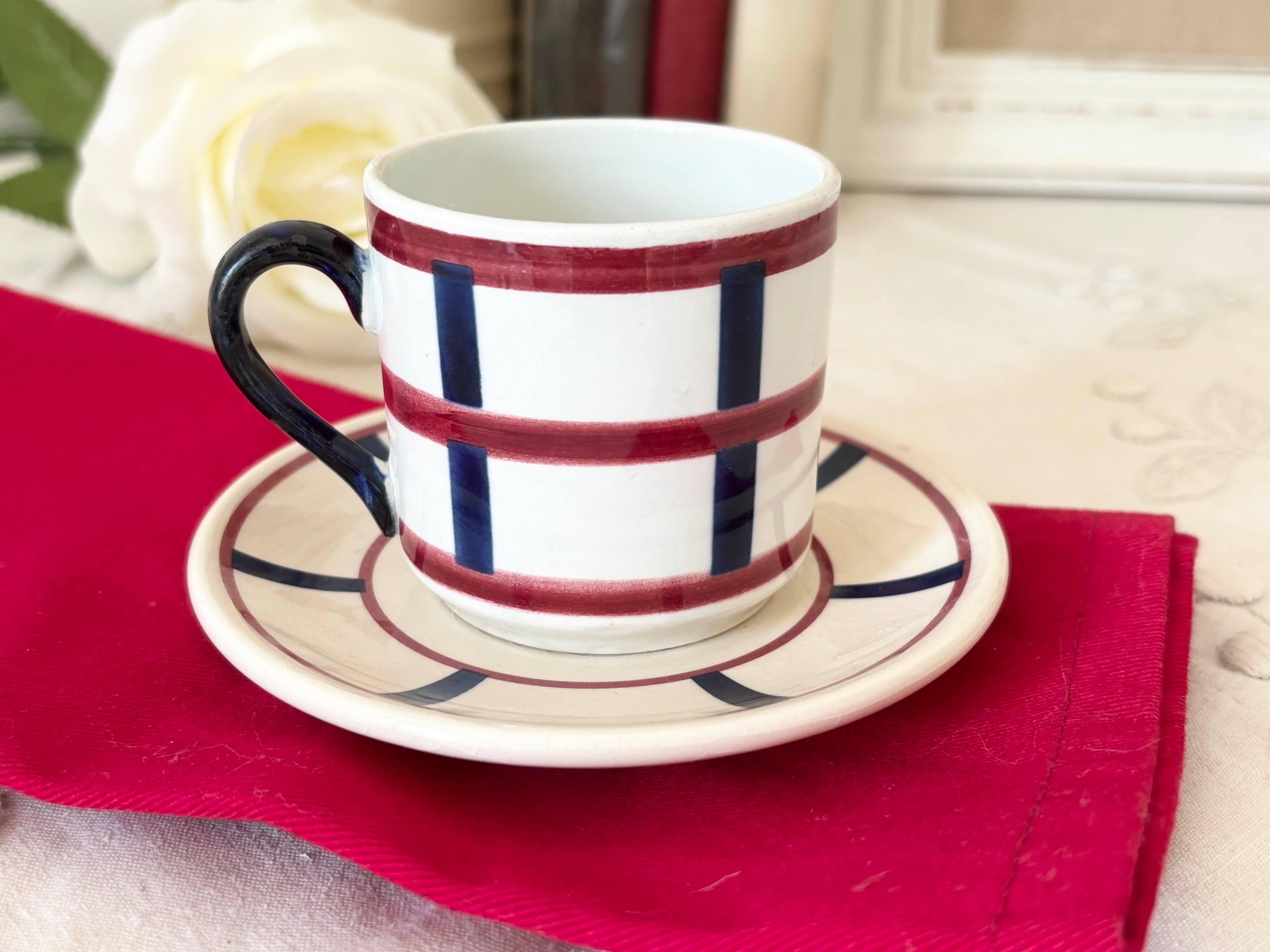 AB 2客セット: Basque(バスク) / Béarn (HBCM Creil et Montereau)エスプレッソカップ + 刻印なしバスク柄 ソーサー