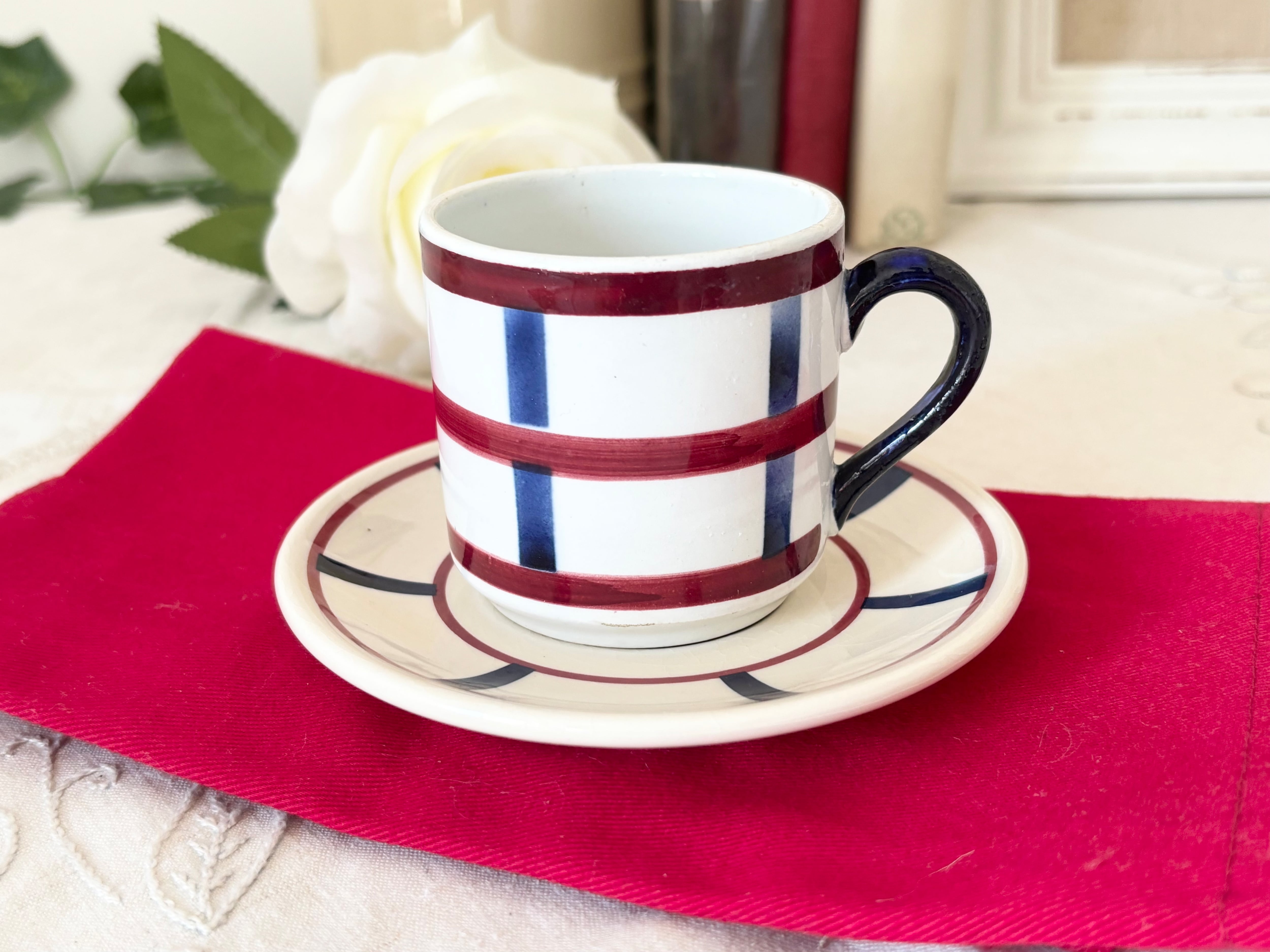Basque(バスク)柄のエスプレッソカップ&ソーサ一脚のセットになります。