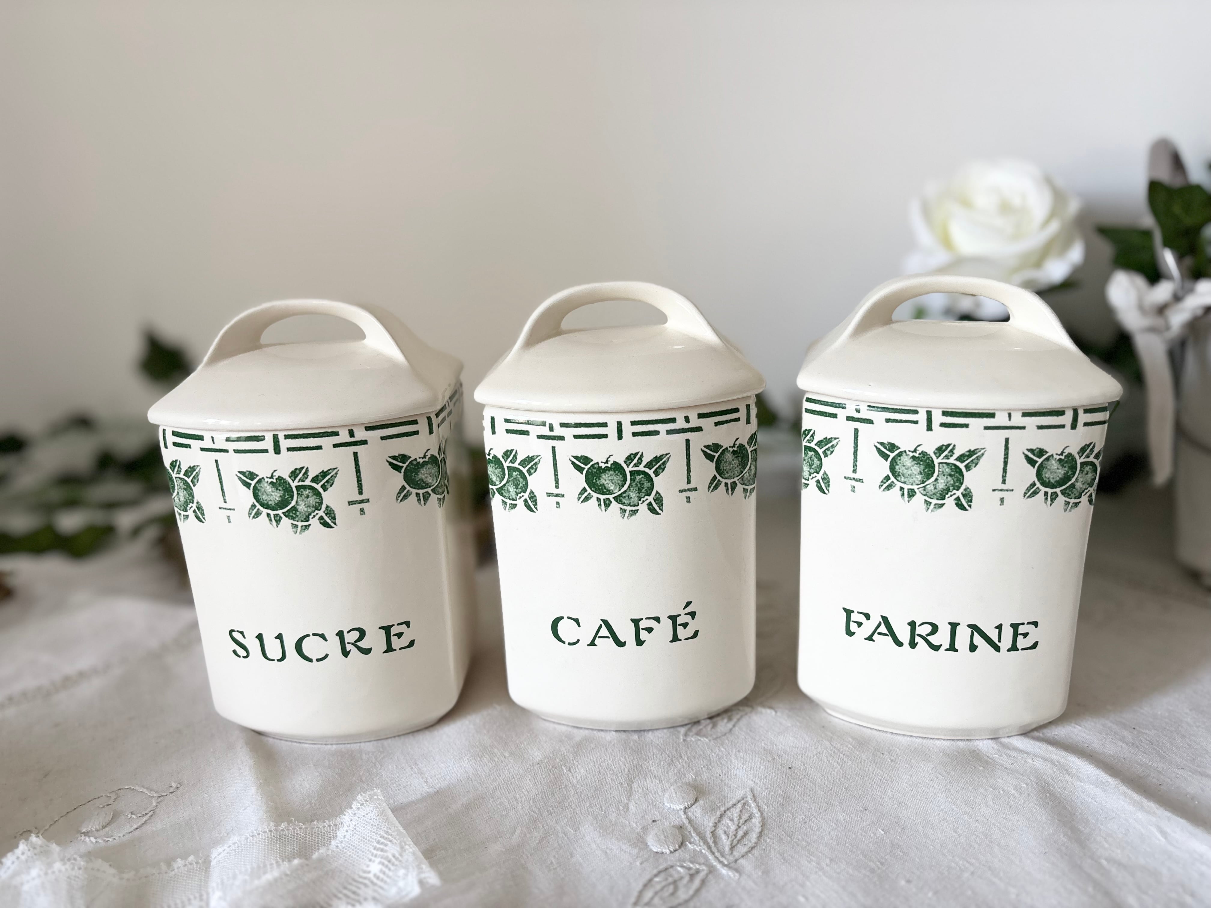 フランスのキッチンに欠かせない陶器のキャニスターセット。
