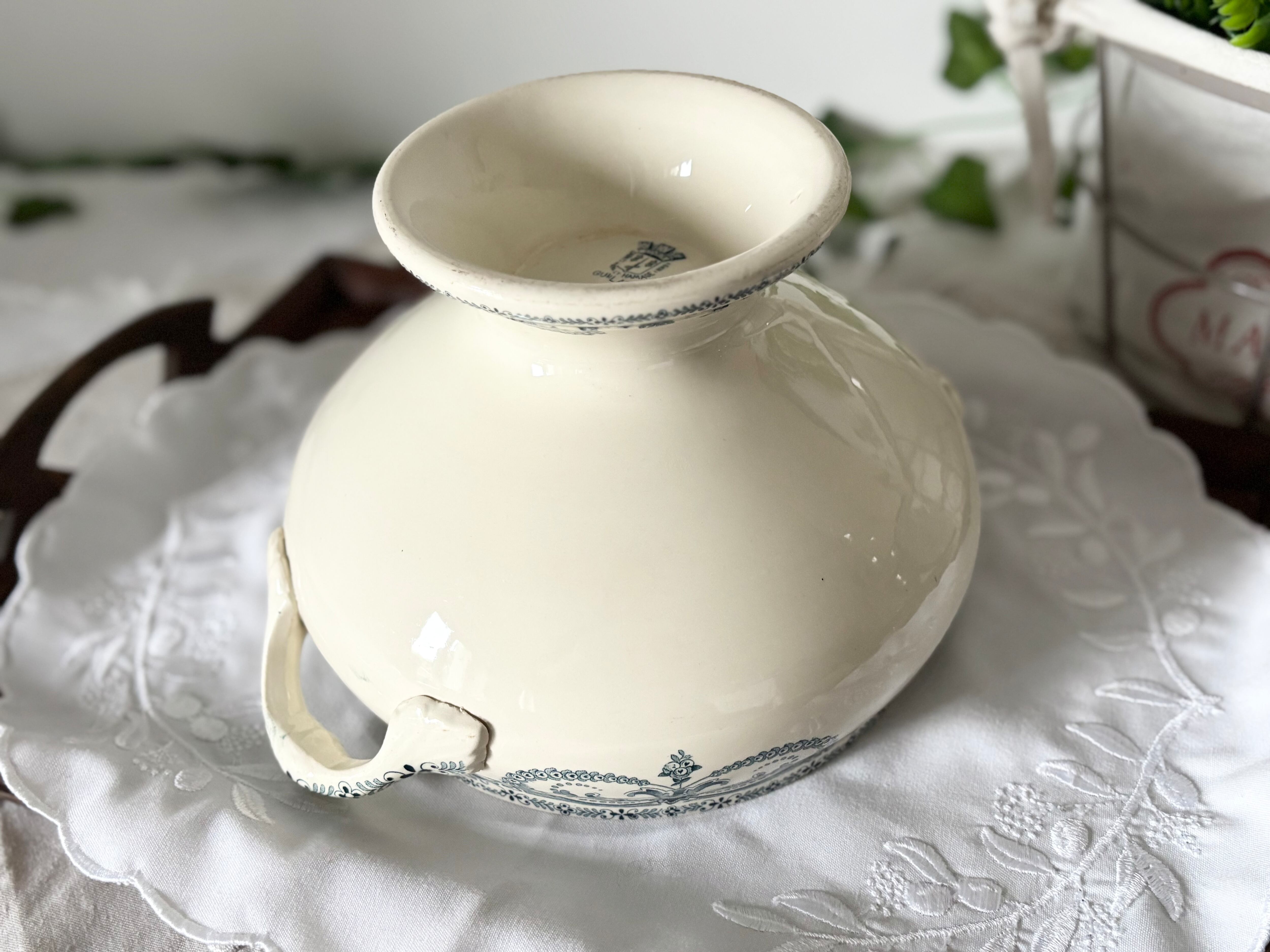 古いフランス陶器特有の貫入や軽い変色、釉下のわずかなかすれが時の経過を物語り、唯一無二の風合いを醸し出しています。