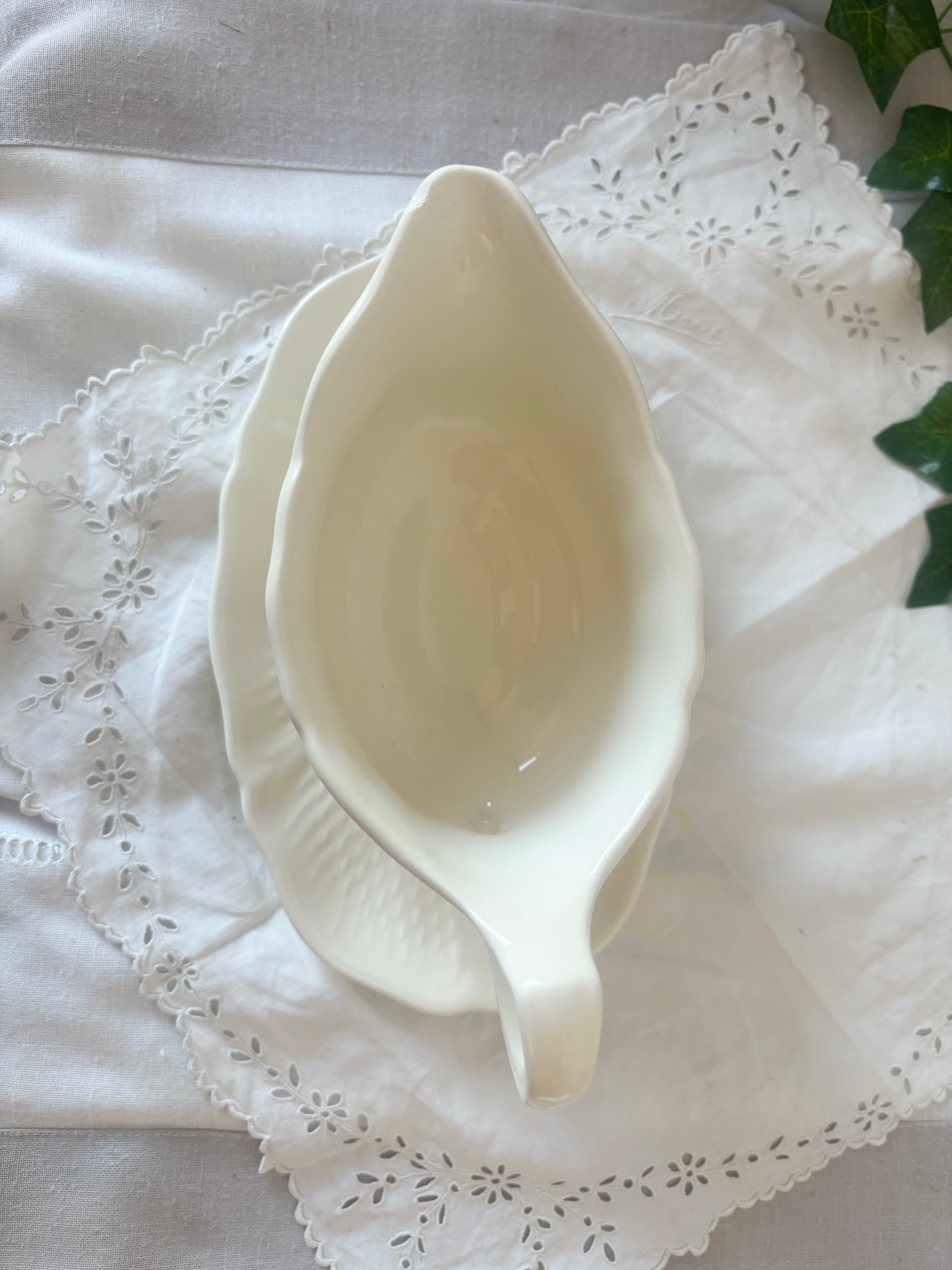 Gien / Pont aux choux / gravy boat / saucier / France / White / Ivory / ジアン / ポントシュー / ソーシエール / グレイビーボー / 花リム