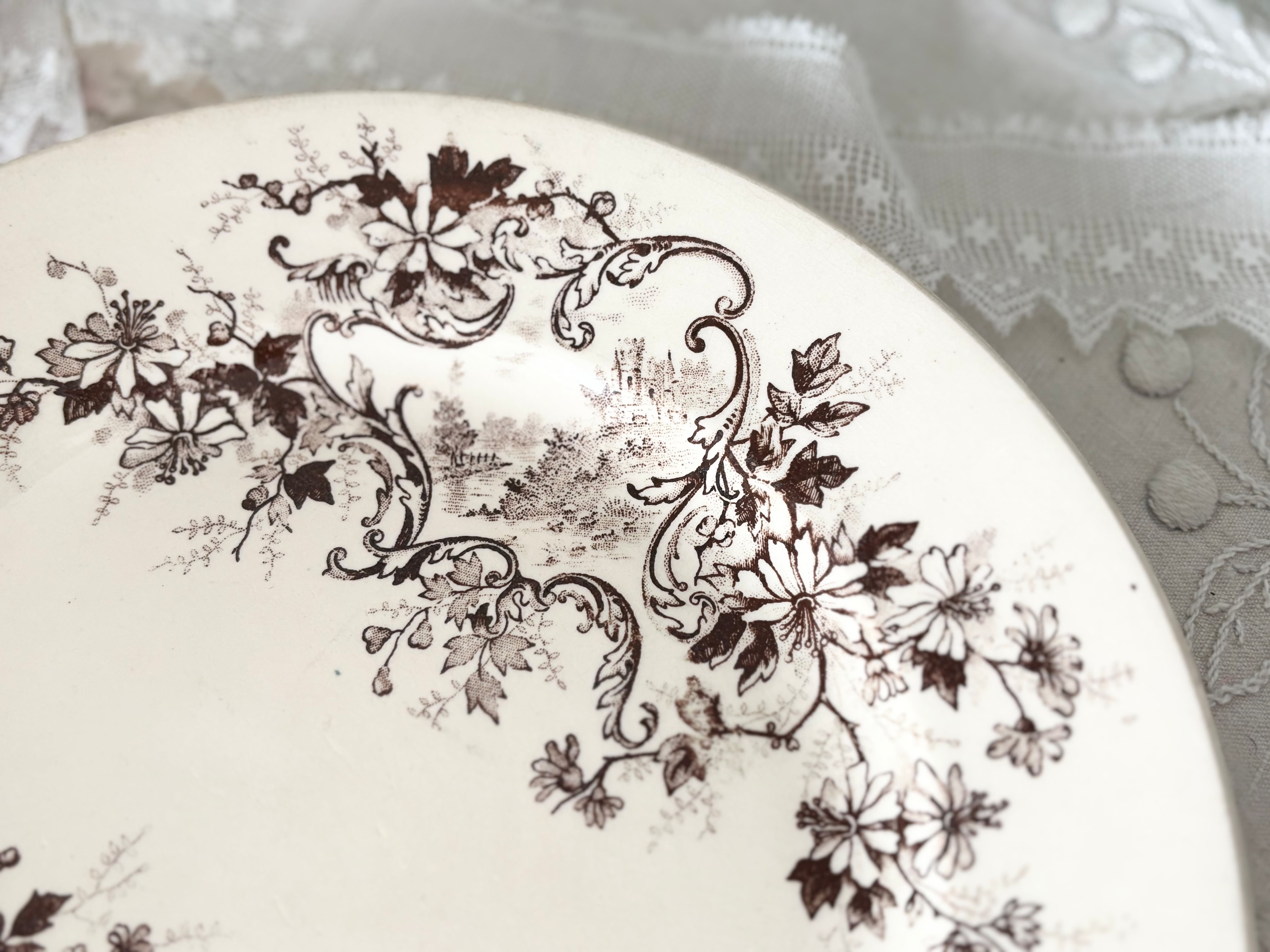 B(城): 23cm 平皿 / H Boulenger &Cie , Choisy- le-roi / Terre de fer / Pompadour / France / Antique / vintage / ショワジールロワ / ブラウン/ フランス/ アンティーク