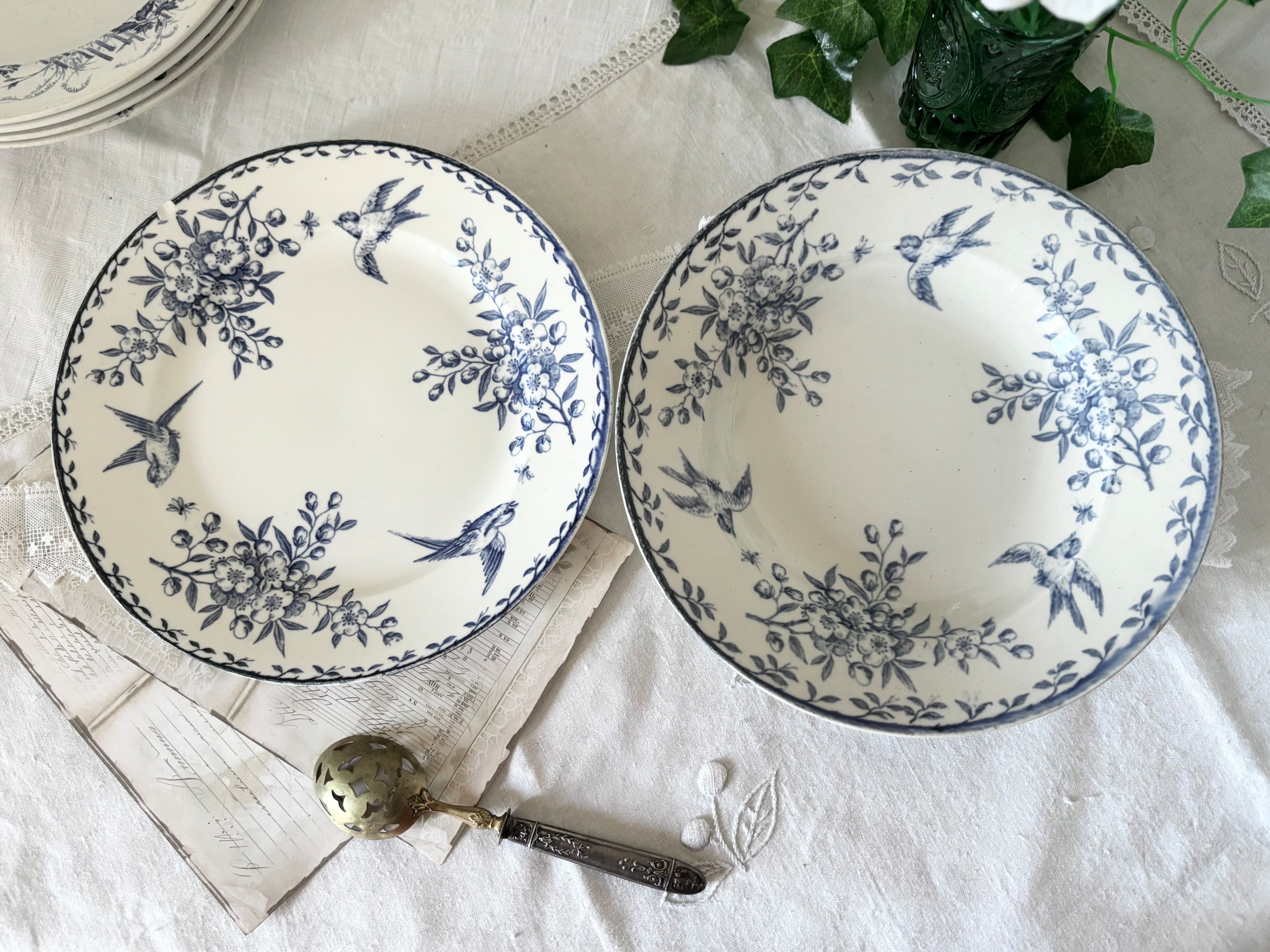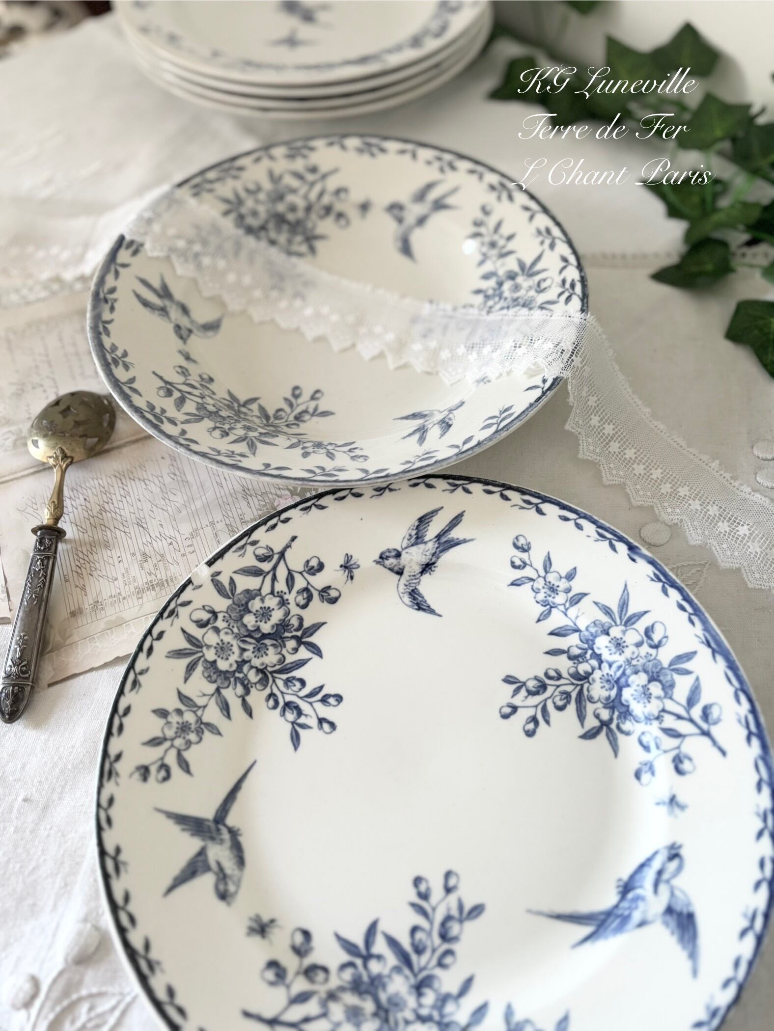 Set of 2 KG Luneville Terre de Fer / Antique French Plates for L Chant Paris / dinner plate and deep plate / bird / アンティークプレート 鳥 フランス ビンテージ