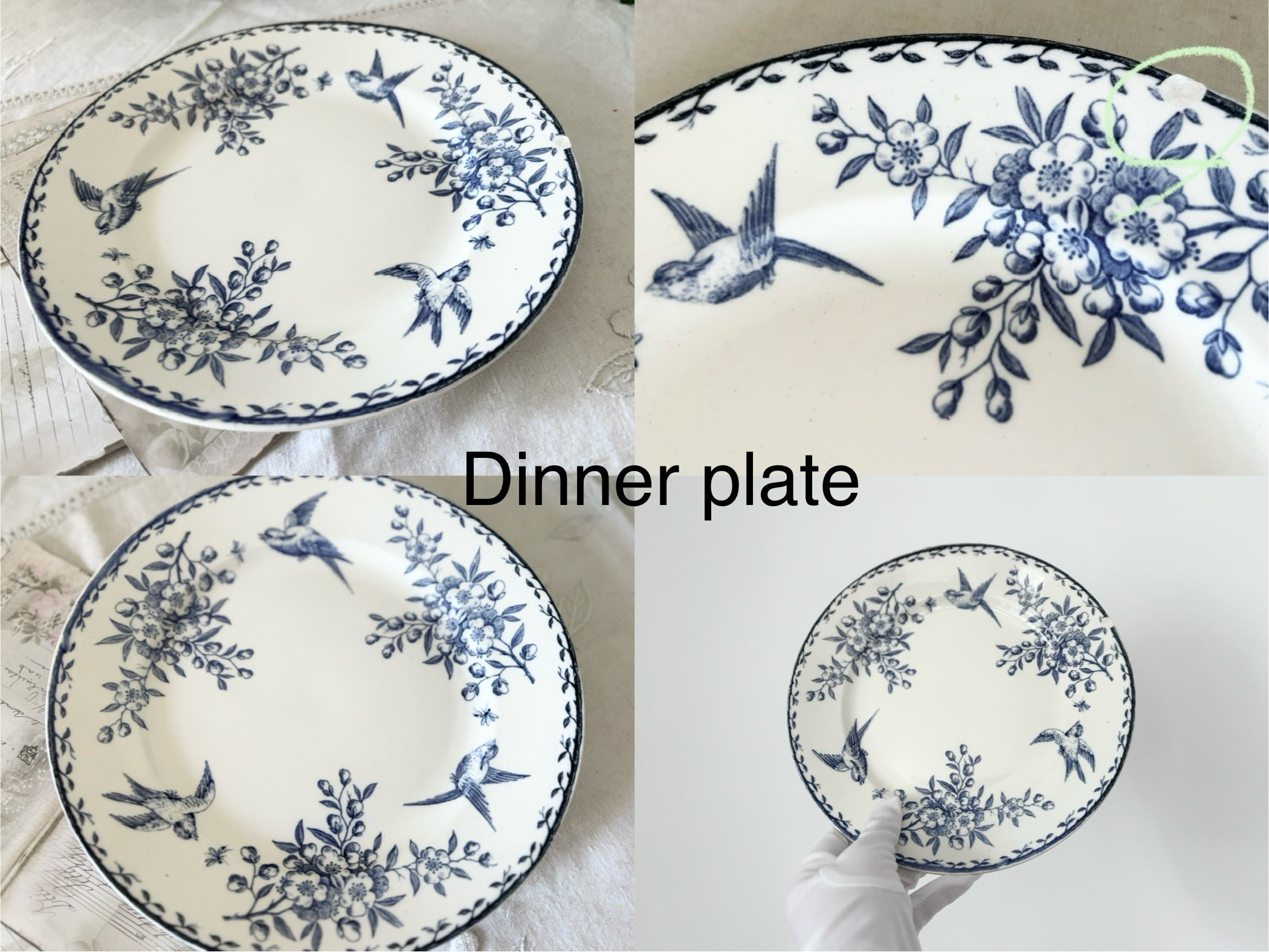 燕と花綱文様があしらわれた、当時のフランス陶器を象徴する
