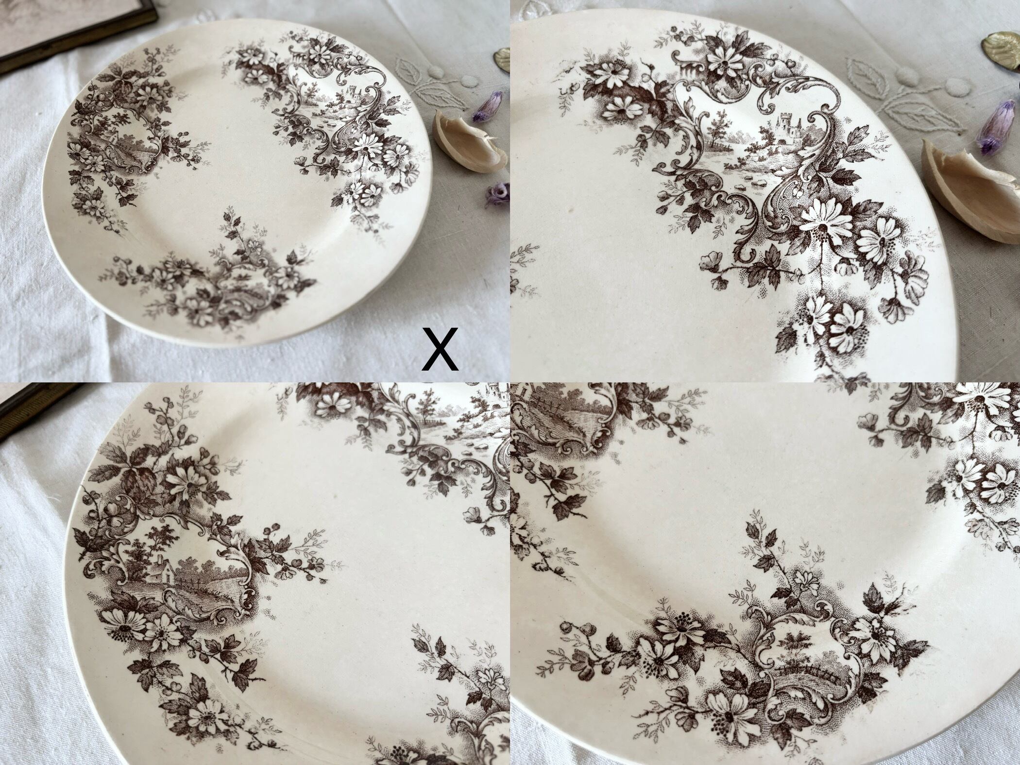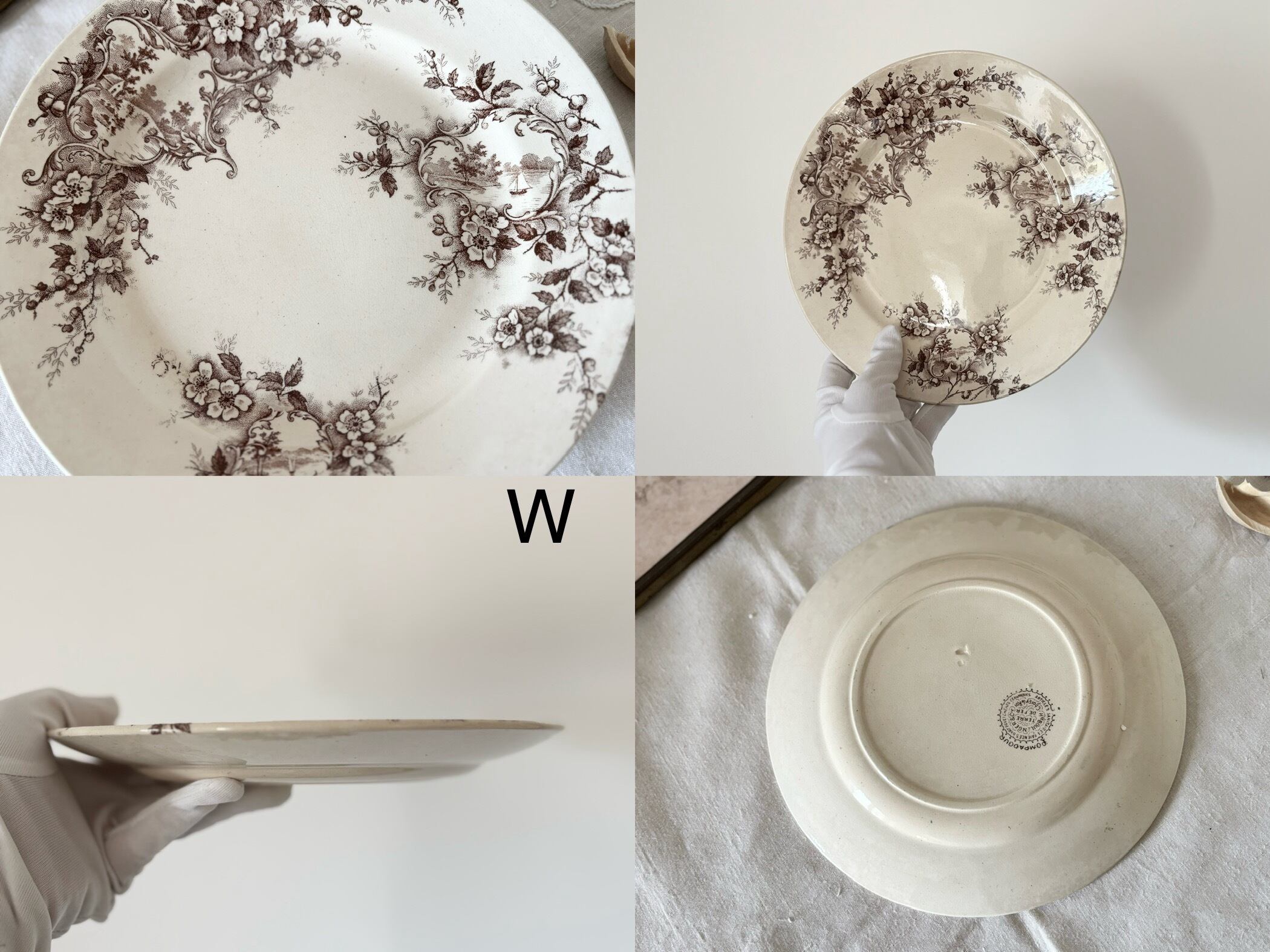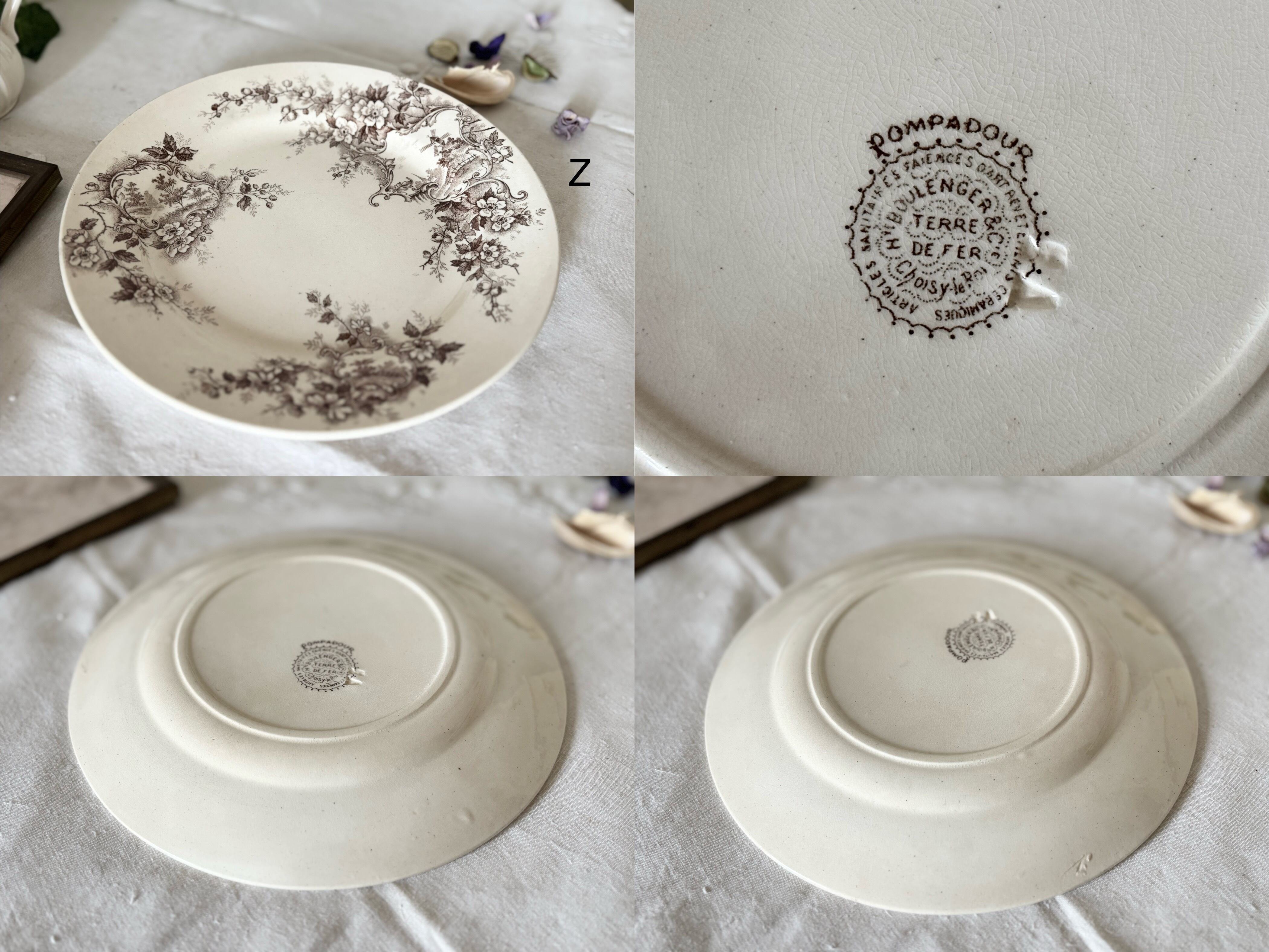 4枚セット 23cm 平皿 / H Boulenger &Cie , Choisy- le-roi / Terre de fer / Pompadour / France / Antique / vintage / ショワジールロワ / ブラウン/ フランス/ アンティーク