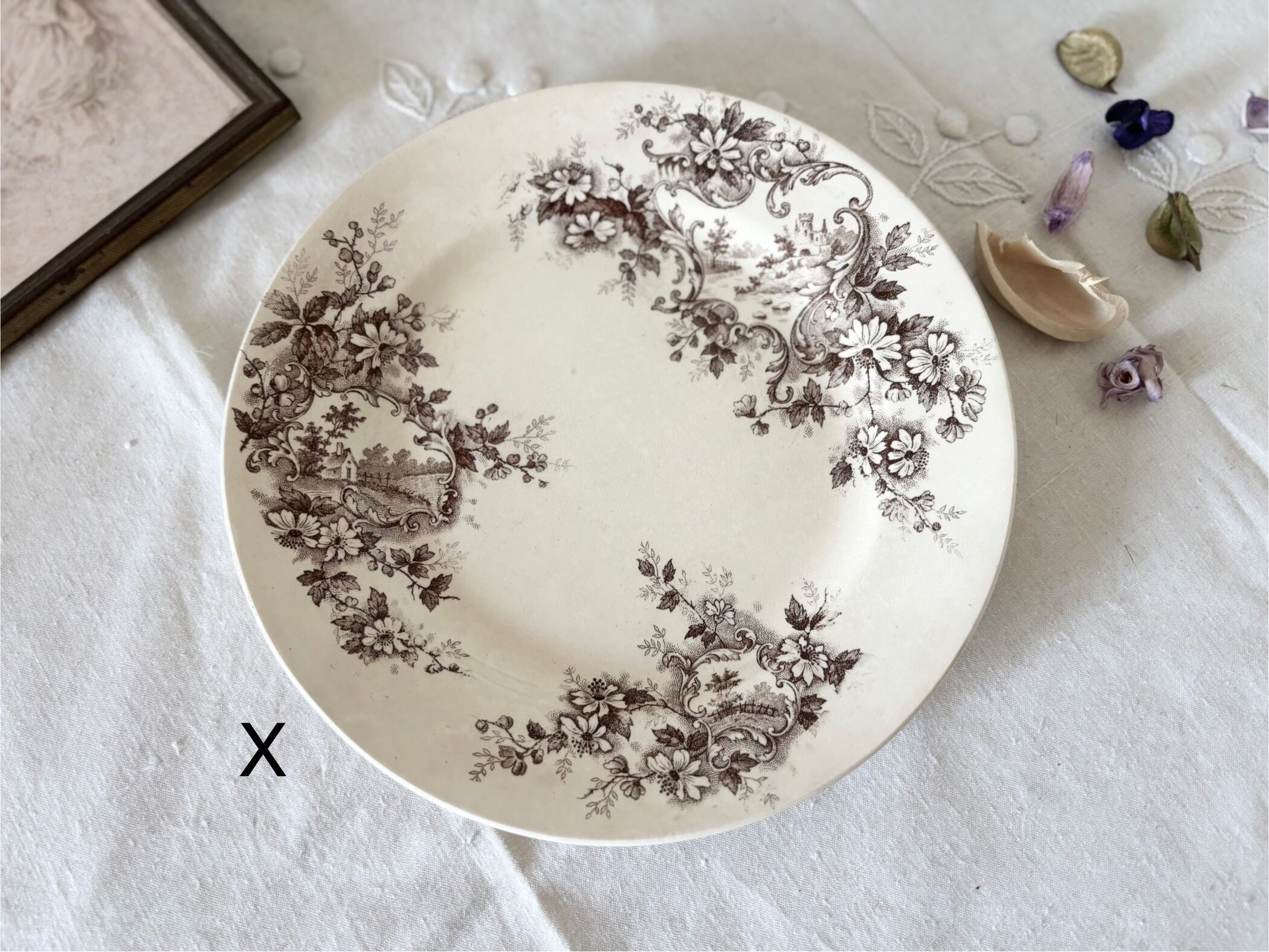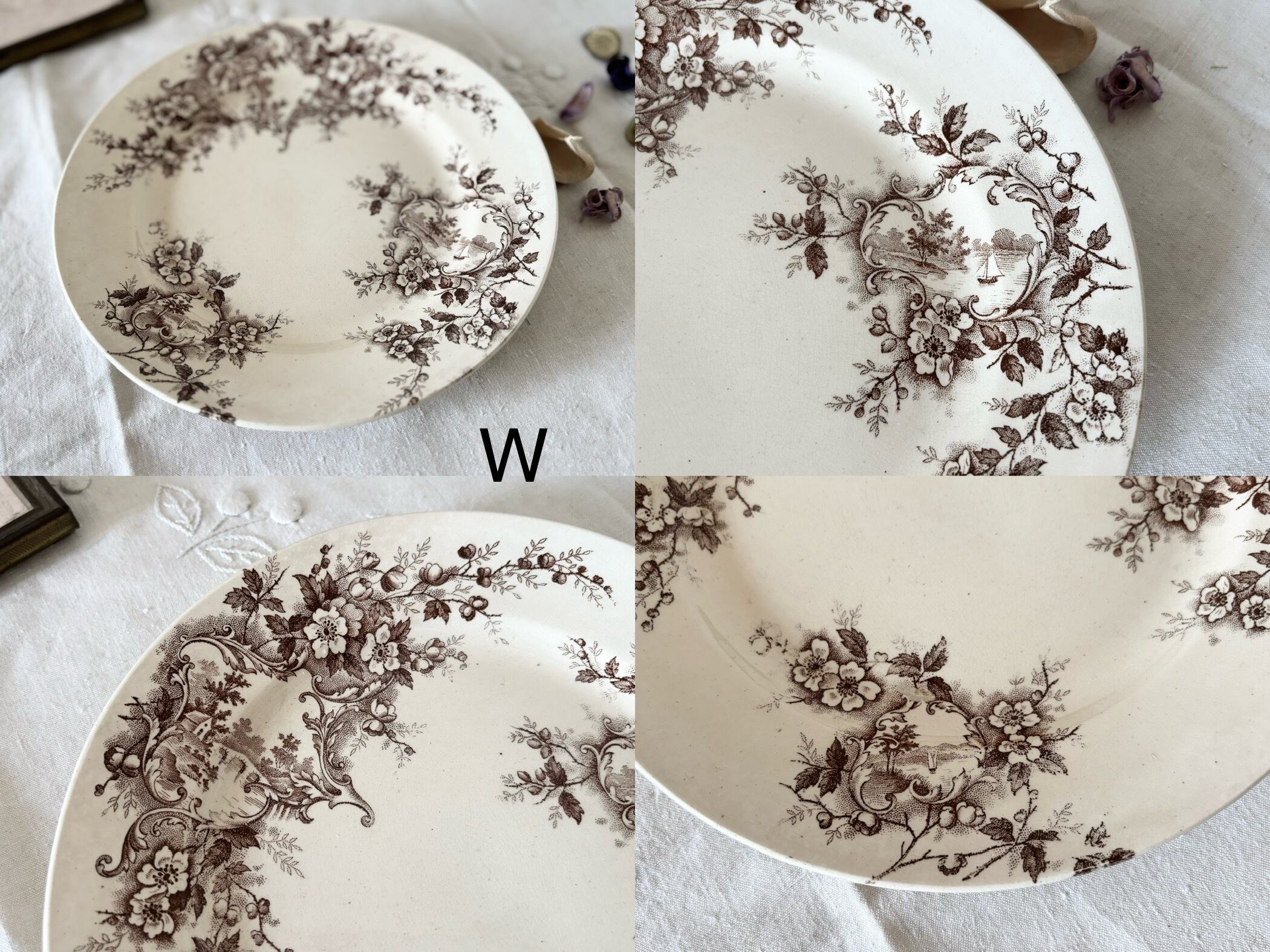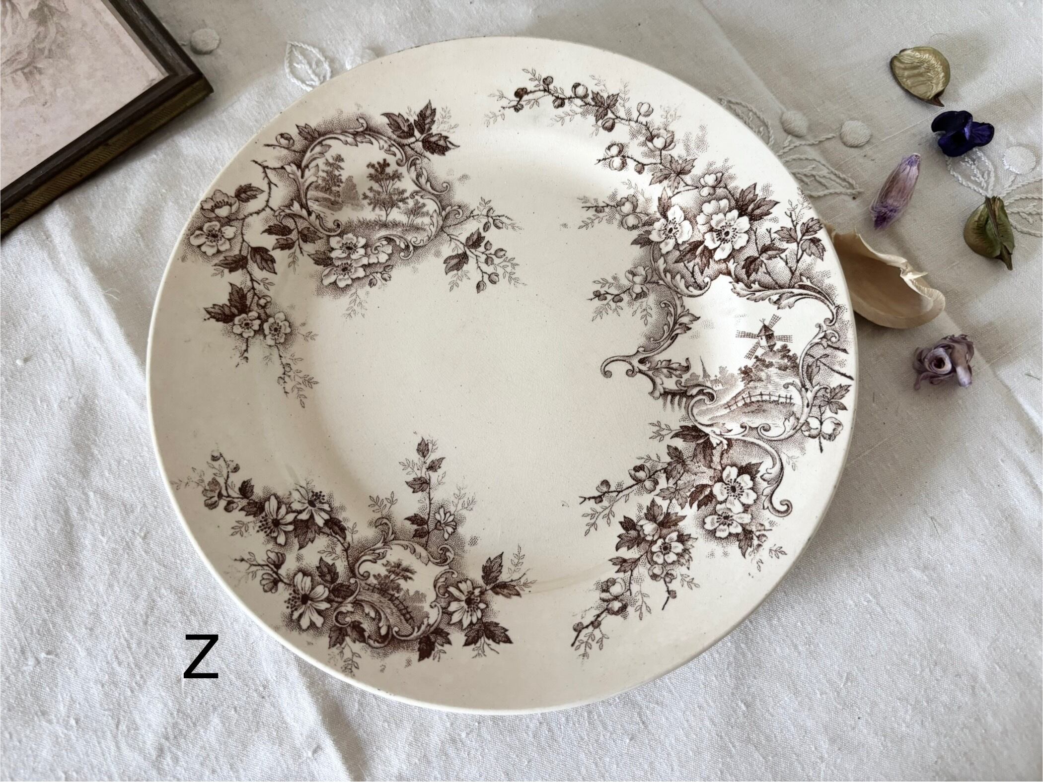 • プリント柄には多少のかすれ・途切れがありますが、モチーフ(風車・花・装飾)ははっきりと確認できる良好な状態です。